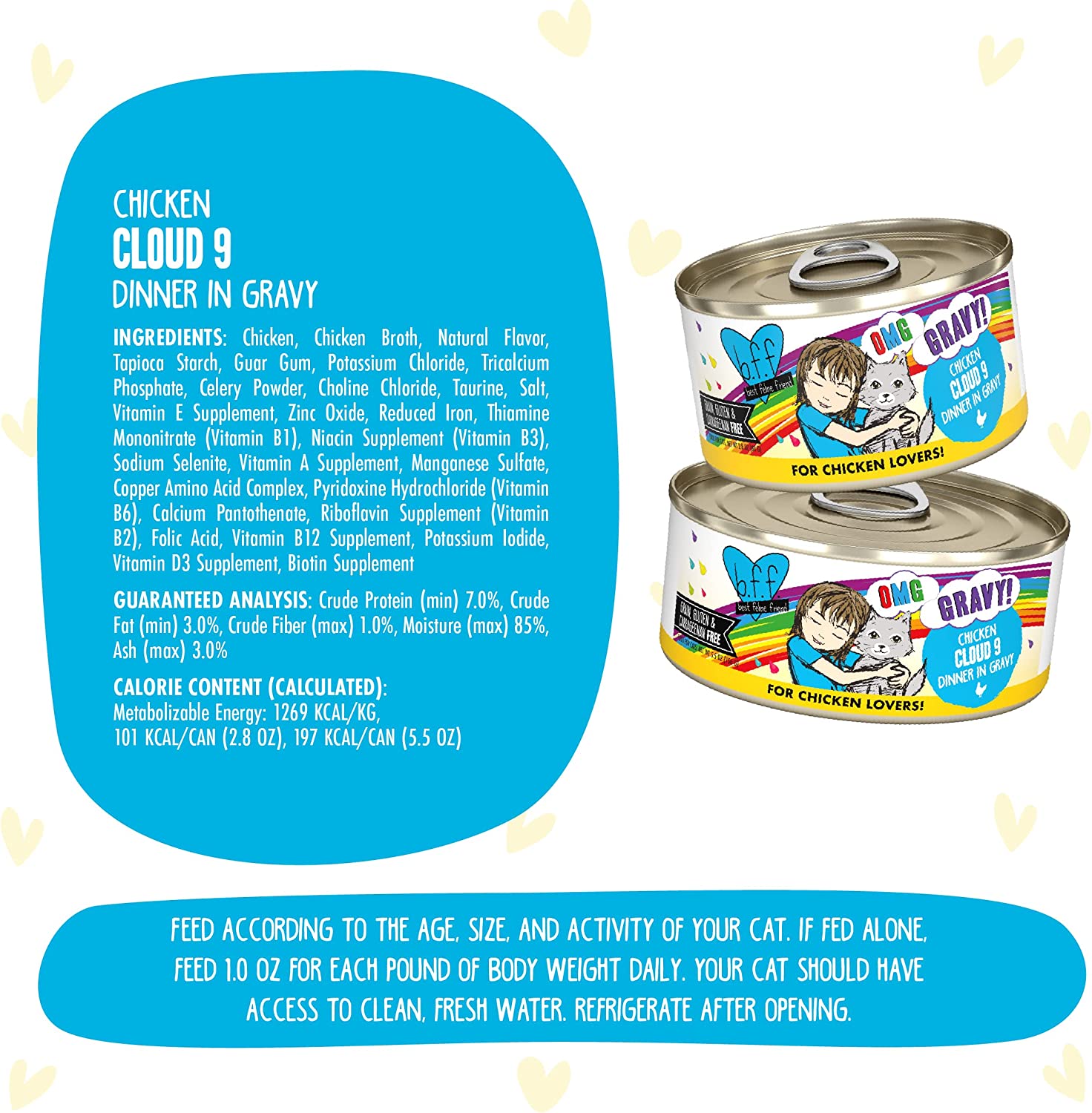 Weruva Wet Cat Food B.F.F. OMG - Best Feline Friend Oh My Gravy!. Chicken Cloud 9 with Chicken in Gravy. 2.8oz Can (Pack of 12)