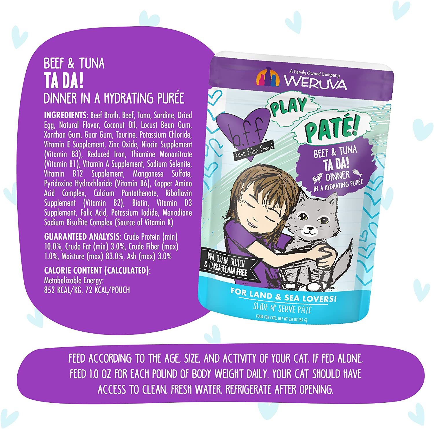 Weruva Wet Cat Food B.F.F. Play - Best Feline Friend Paté Lovers. Aw Yeah!. Beef & Tuna Ta Da! with Beef & Tuna. 3oz Pouch (Pack of 12)