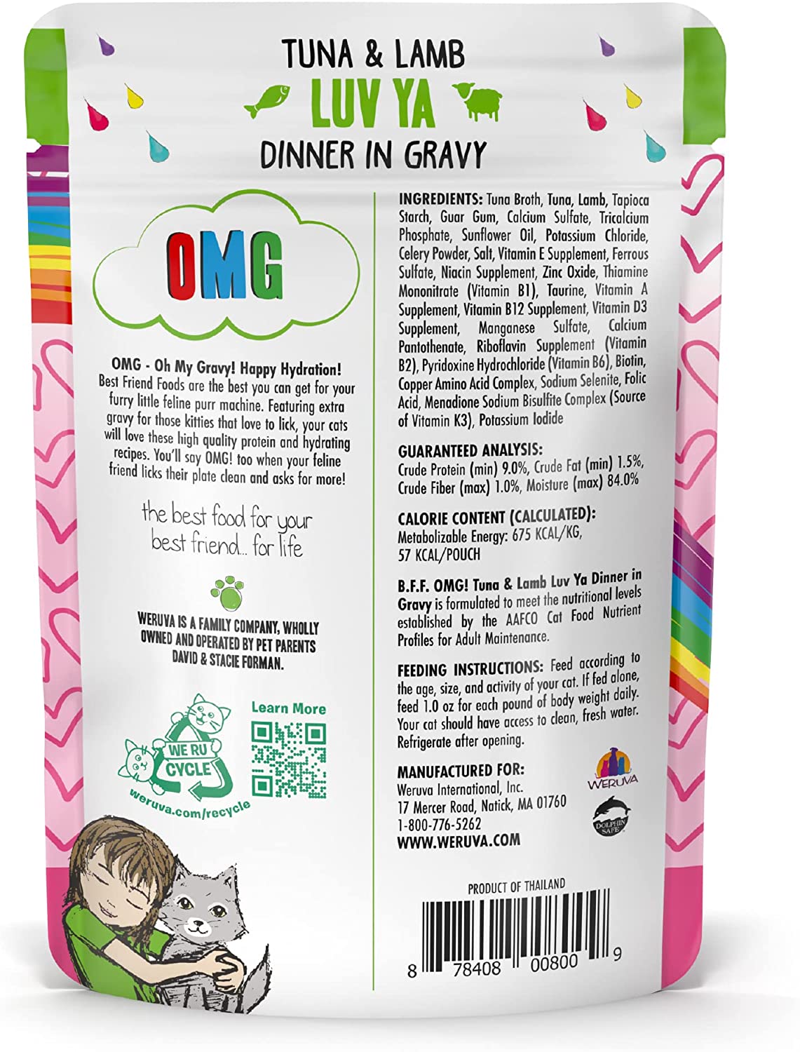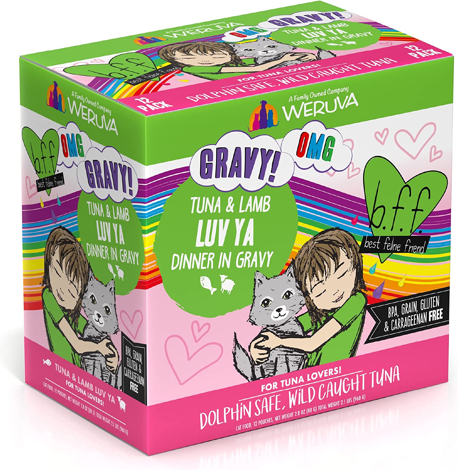 Weruva B.F.F. OMG - Best Feline Friend Oh My Gravy!. Tuna & Lamb Luv Ya with Tuna & Lamb in Gravy Cat Food. 3oz Pouch (Pack of 12)