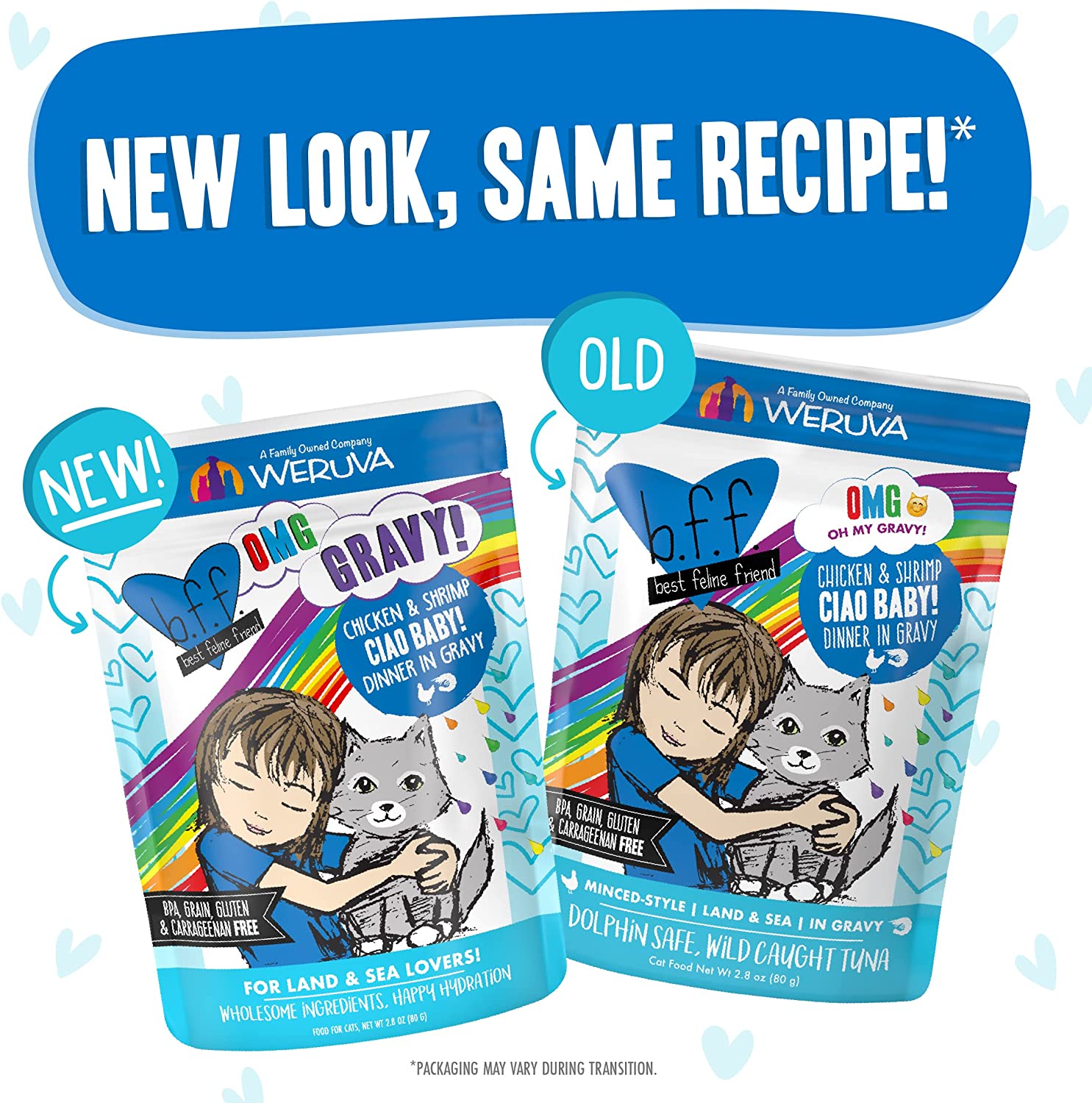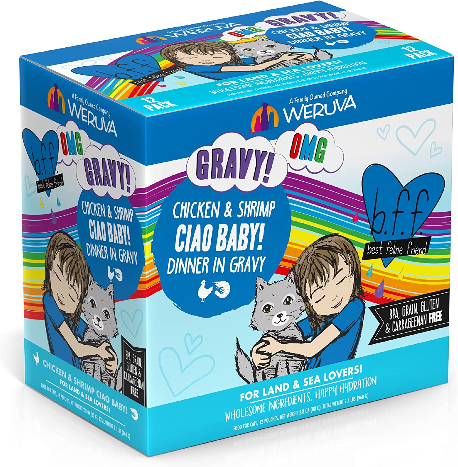 Weruva B.F.F. OMG - Best Feline Friend Oh My Gravy!. Ciao Baby! with Chicken & Shrimp in Gravy Cat Food. 2.8oz Pouch (Pack of 12)