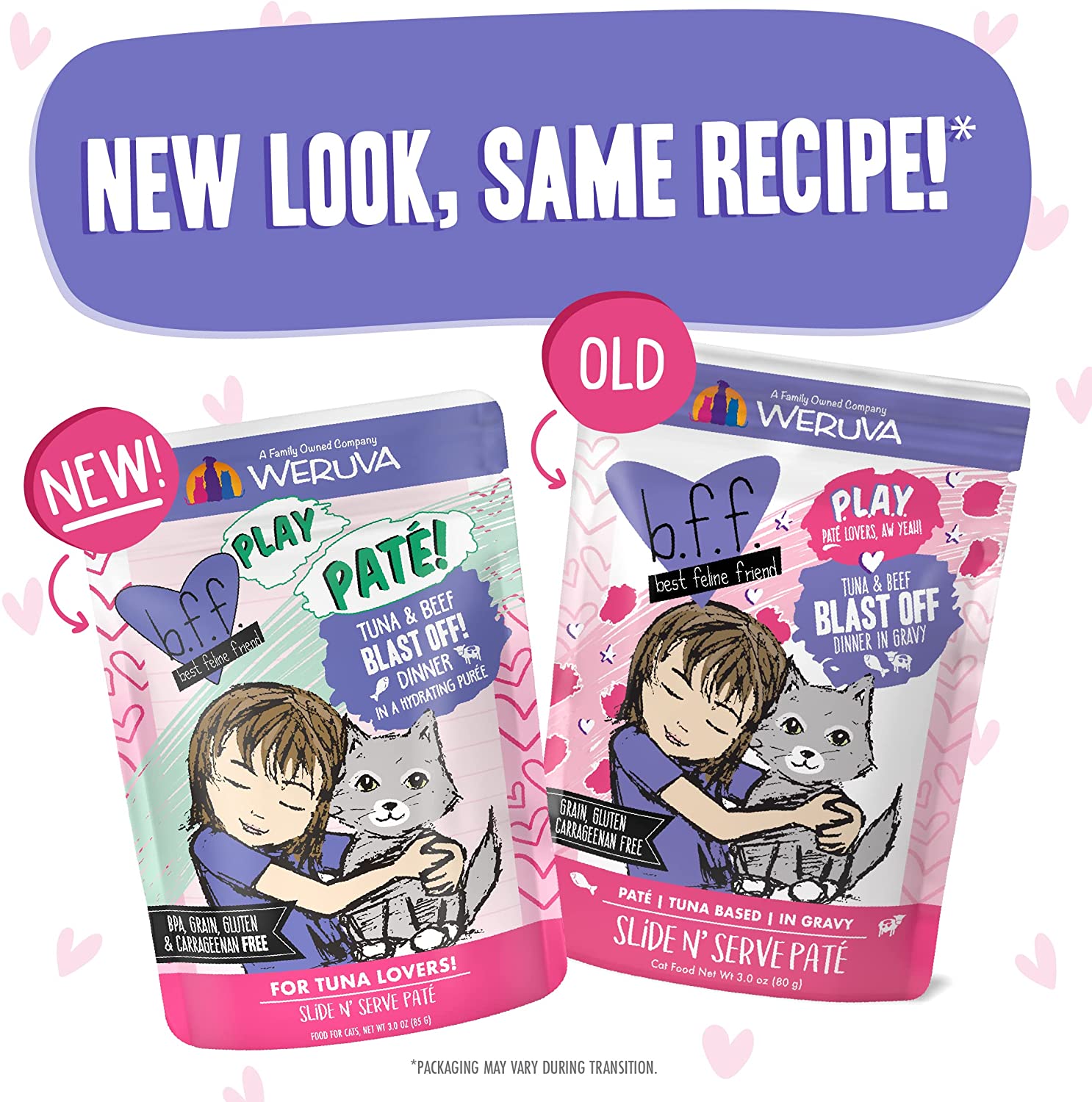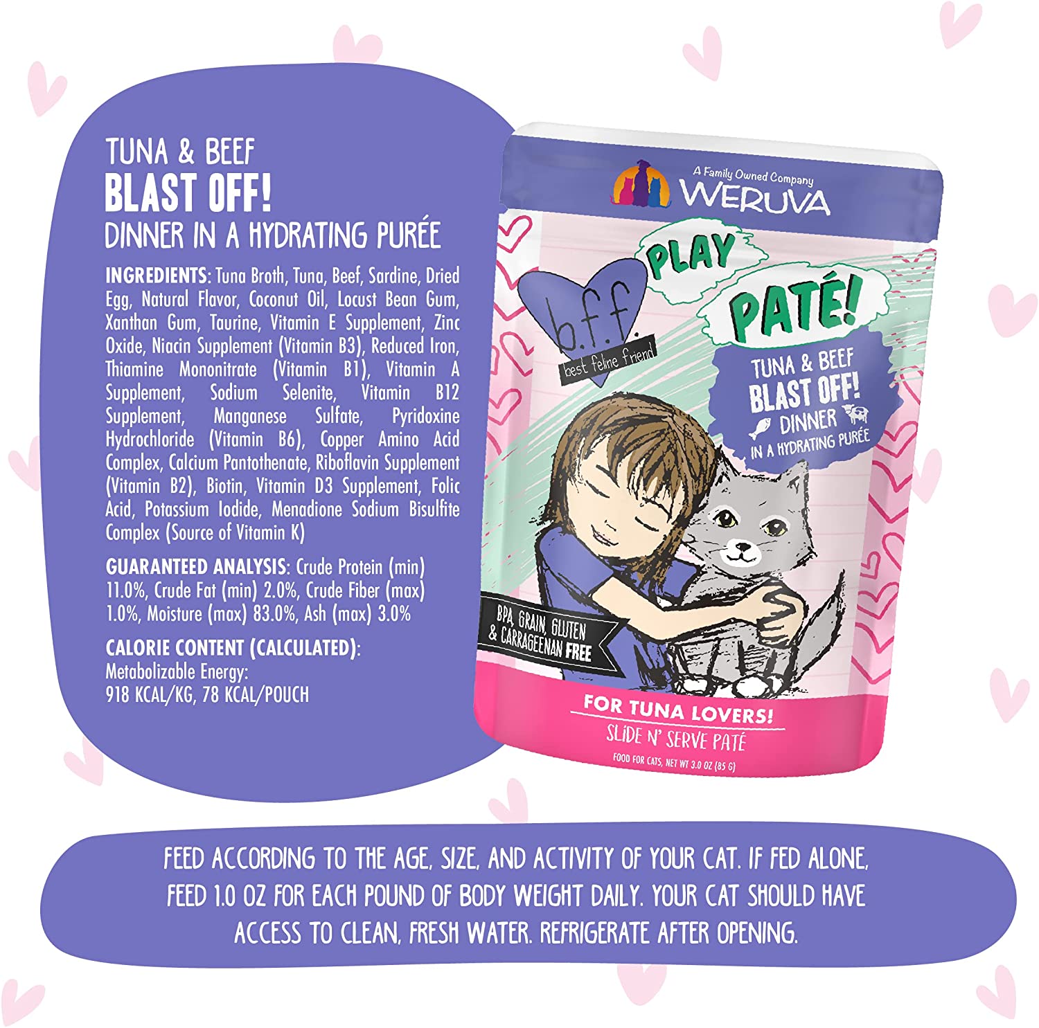 Weruva Wet Cat Food B.F.F. PLAY - Best Feline Friend Paté Lovers. Aw Yeah!. Tuna & Beef Blast Off! with Tuna & Beef. 3oz Pouch (Pack of 12)