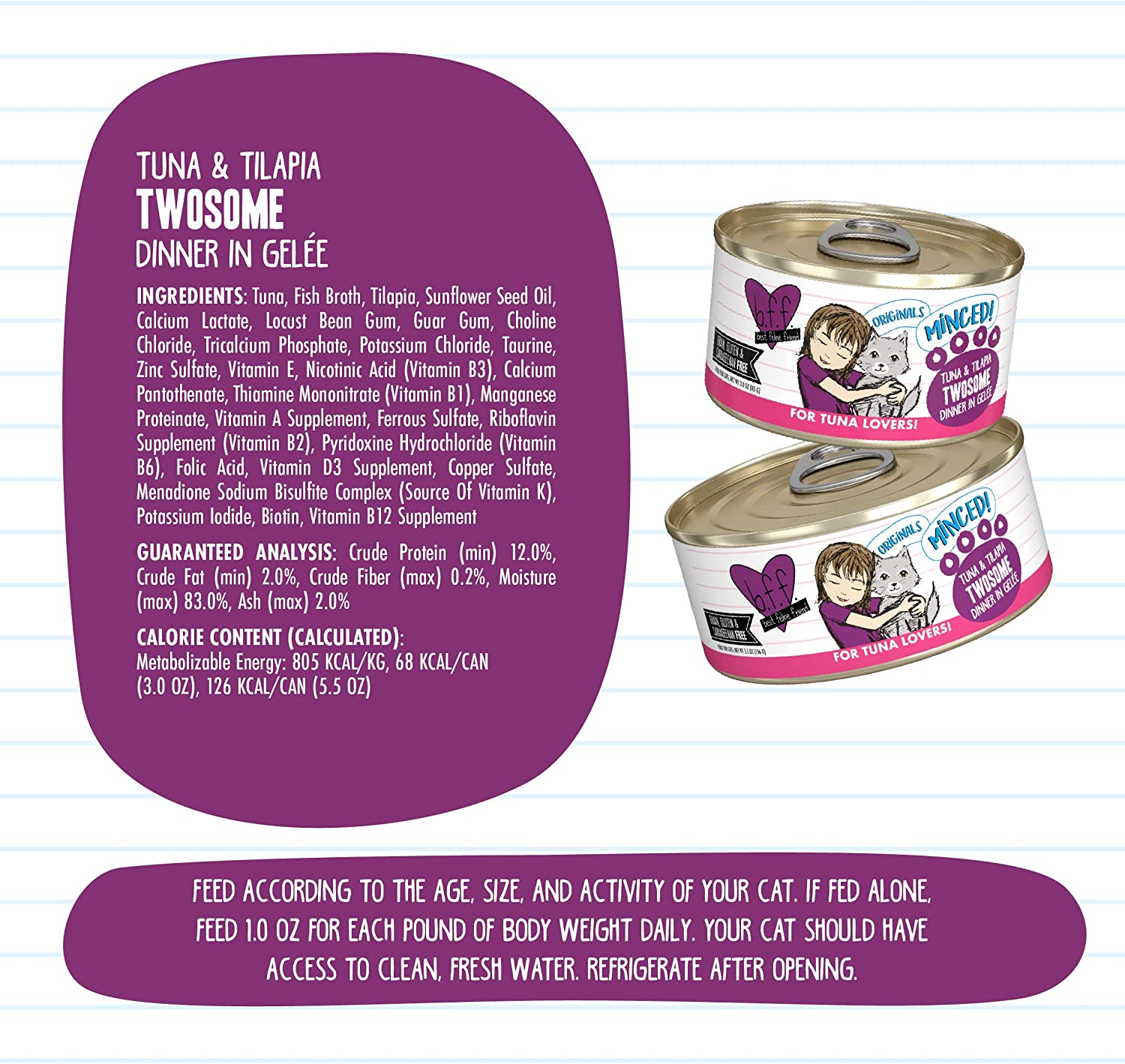 Weruva Best Feline Friend (B.F.F.) Tuna & Tilapia Twosome with Tuna & Tilapia in Gelée Cat Food. 5.5oz Can (Pack of 24). Purple