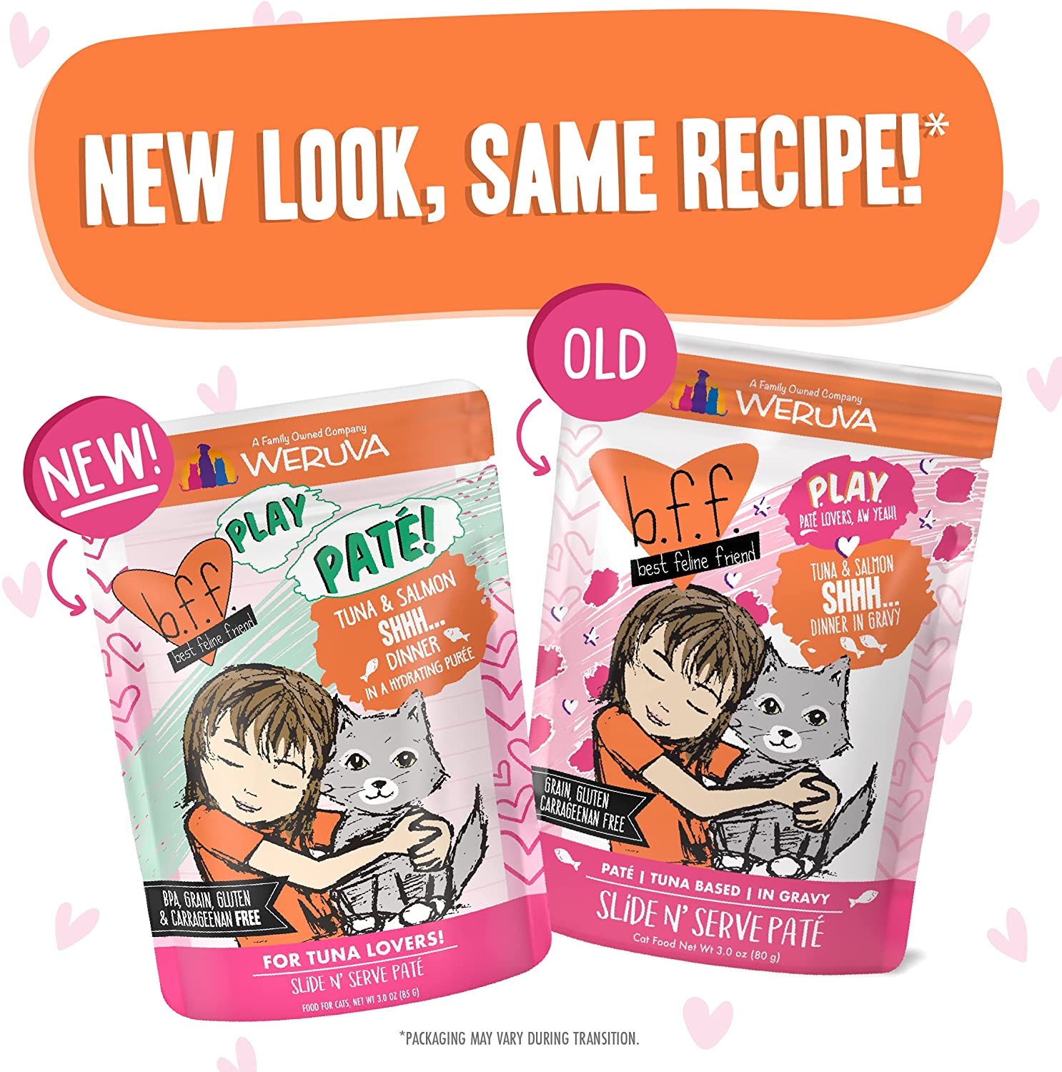 Weruva Wet Cat Food B.F.F. PLAY - Best Feline Friend Paté Lovers. Aw Yeah!. Tuna & Salmon Shhh… with Tuna & Salmon. 3oz Pouch (Pack of 12)