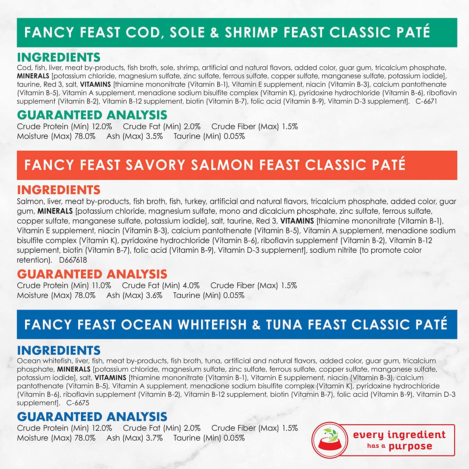 Purina Fancy Feast Grain Free Pate Wet Cat Food Variety Pack. Seafood Classic Pate Collection - (2 Packs of 12) 3 oz. Cans