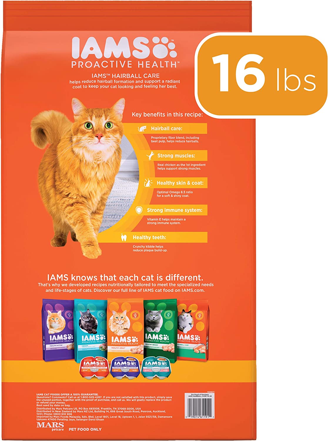 Iams Proactive Health Adult Dry Cat Food. Hairball Care Formula 16LB