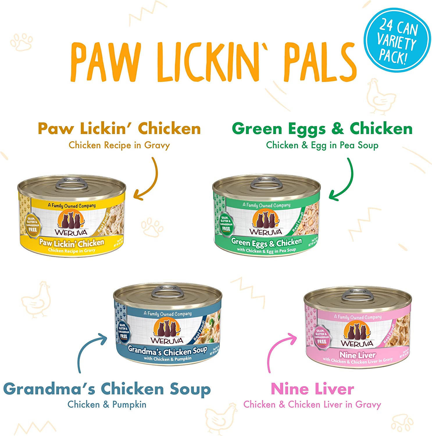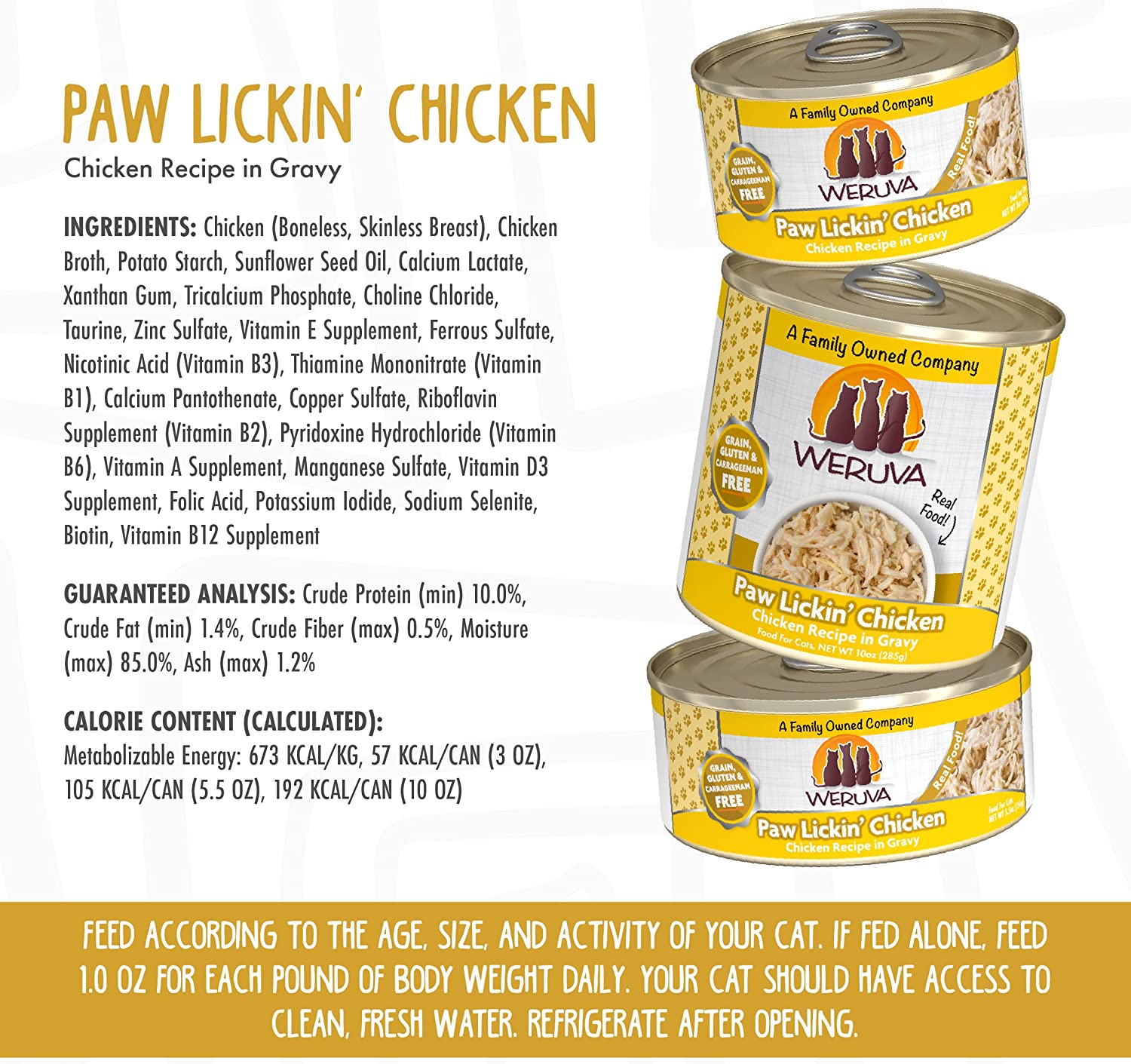 Weruva Grain-Free Natural Canned Wet Cat Food. Paw Lickin' Chicken. Classic Recipes 5.5oz Can (Pack of 24)