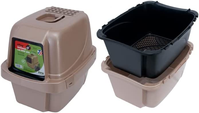 Van Ness Pets Odor Control Large Enclosed Sifting Cat Pan with Odor Door. Hooded. Beige. CP66