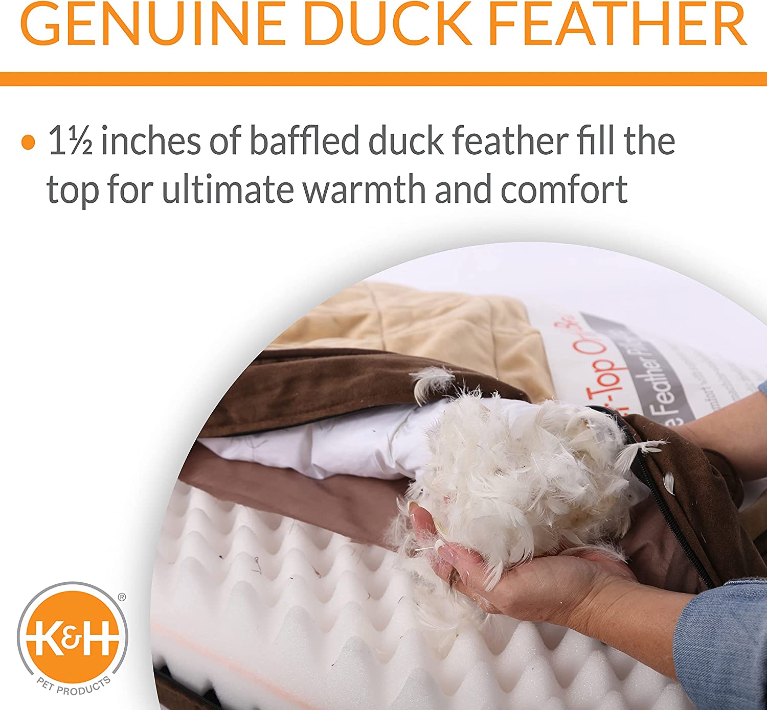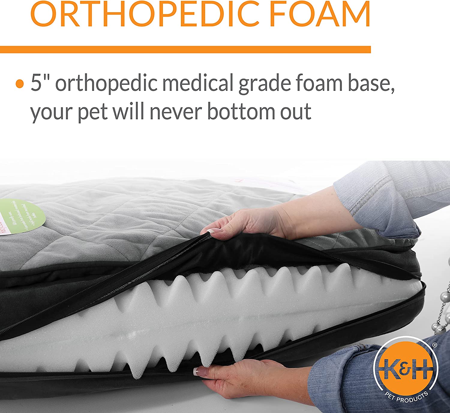 K&H Pet Products Feather-Top Orthopedic Pillow Dog Bed. Charcoal. Large (40″ x 50″)