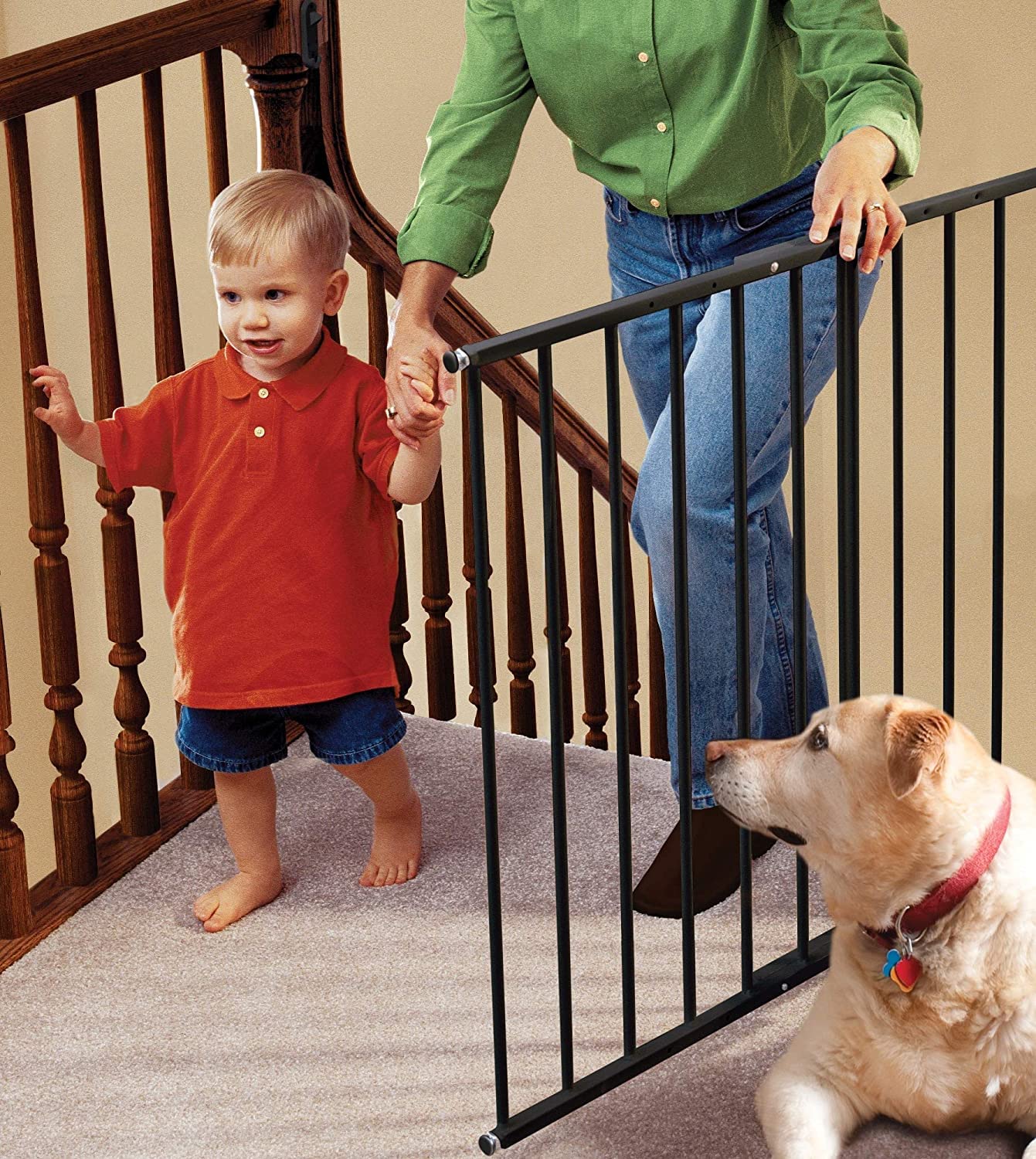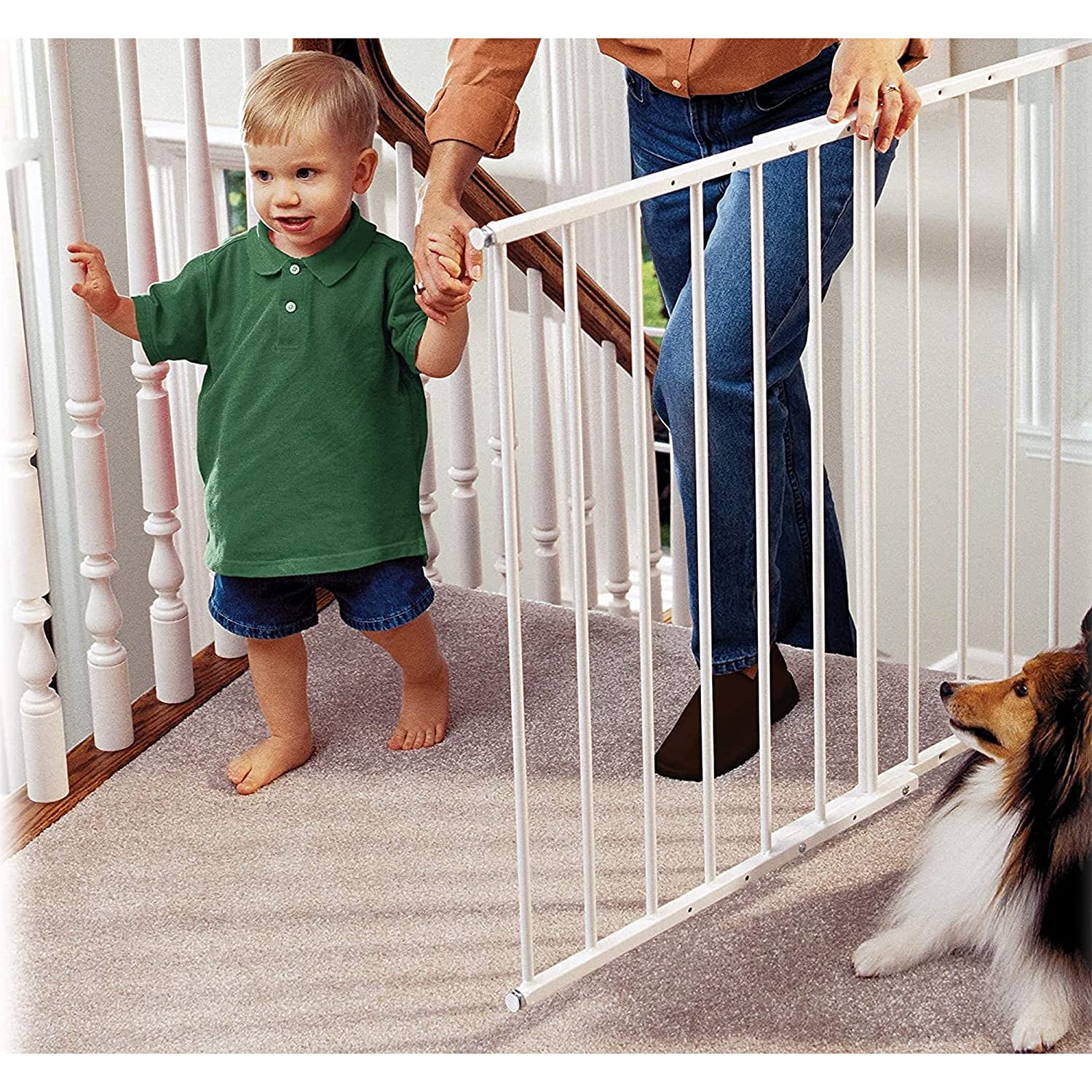 KidCo G2000 Safeway Top of Stairs Quick Release Baby Gate for Blocking Stairs or Hallways and Dividing Rooms. 42.5 x 30.5 Inches. Steel. White