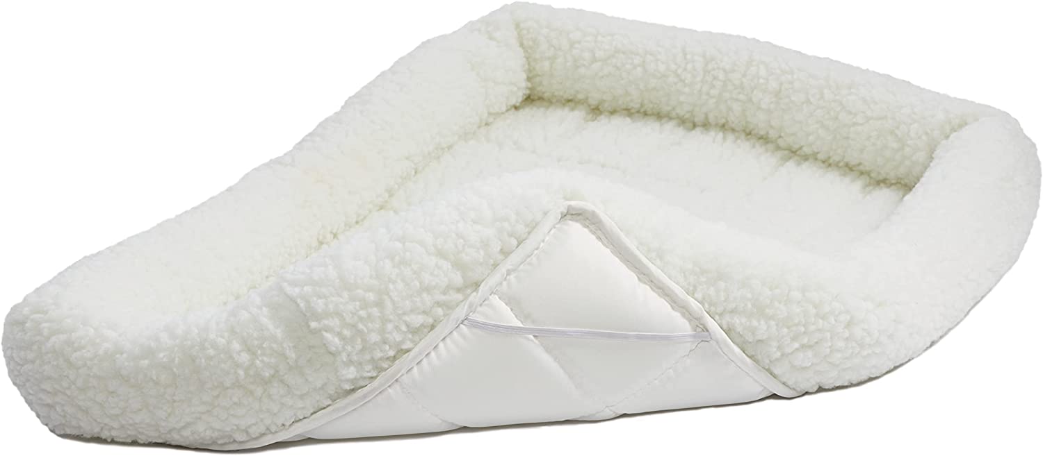 MidWest Quiet Time Fleece Dog Crate Mat. White Fleece. 48″L x 30″W x 3.6″Th
