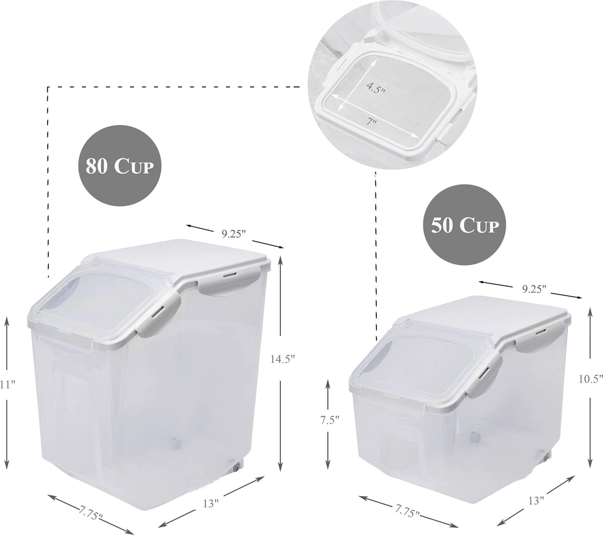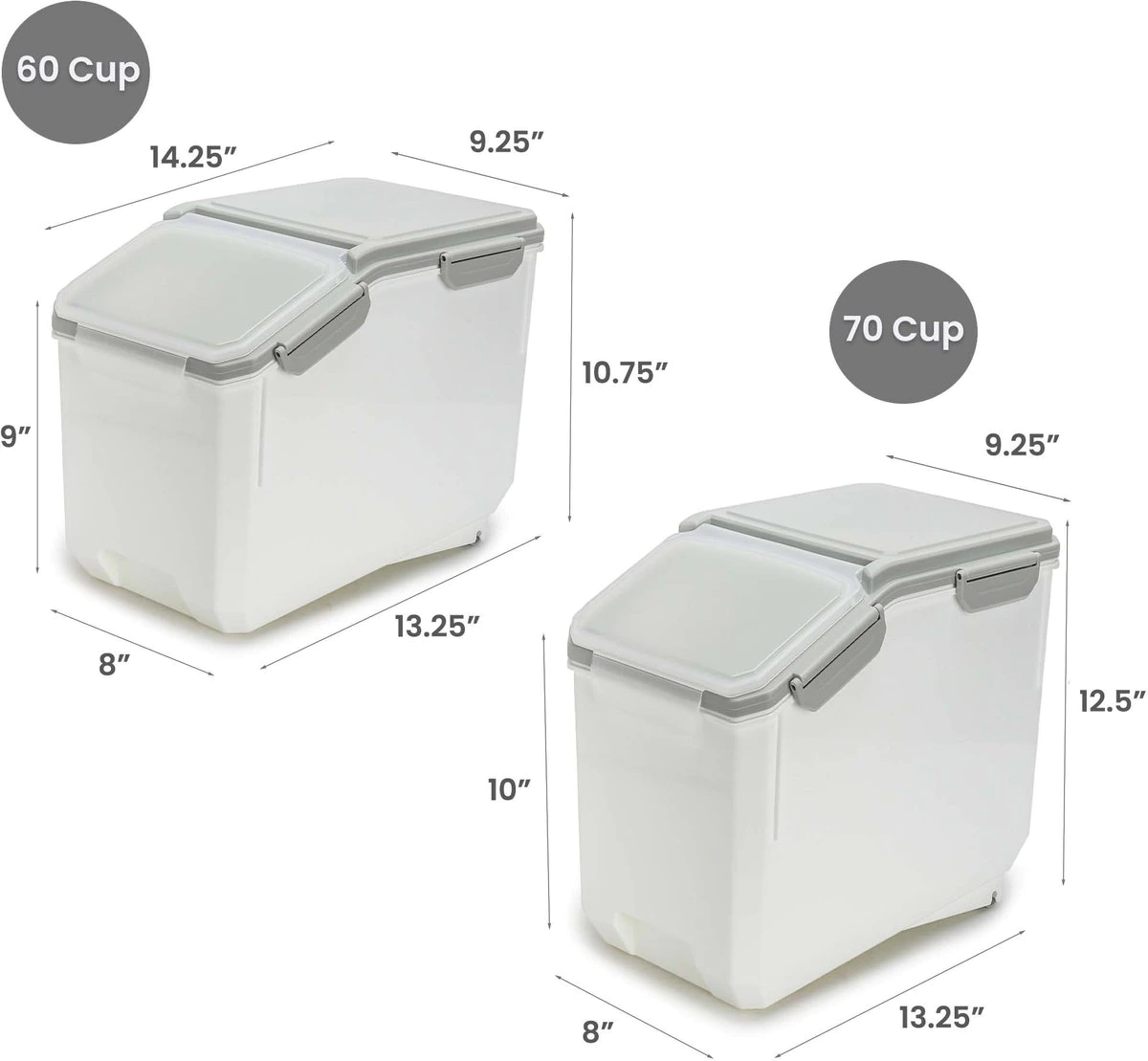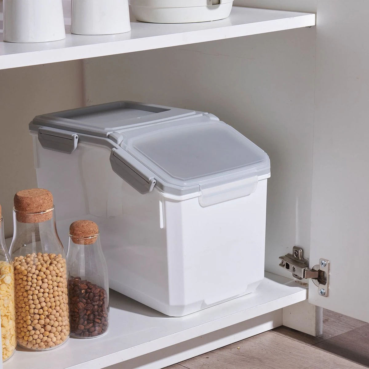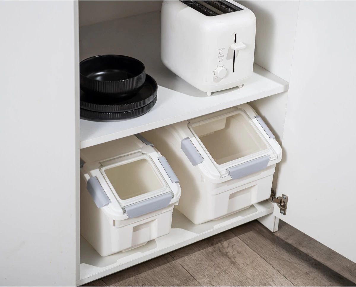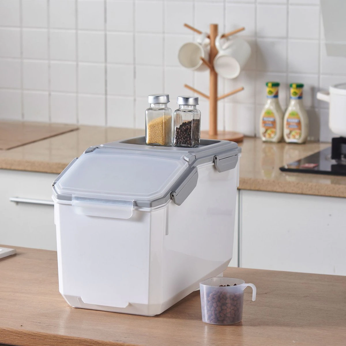 HANAMYA Pet Food Storage Container with Measuring Cup 33lbs. White & Gray