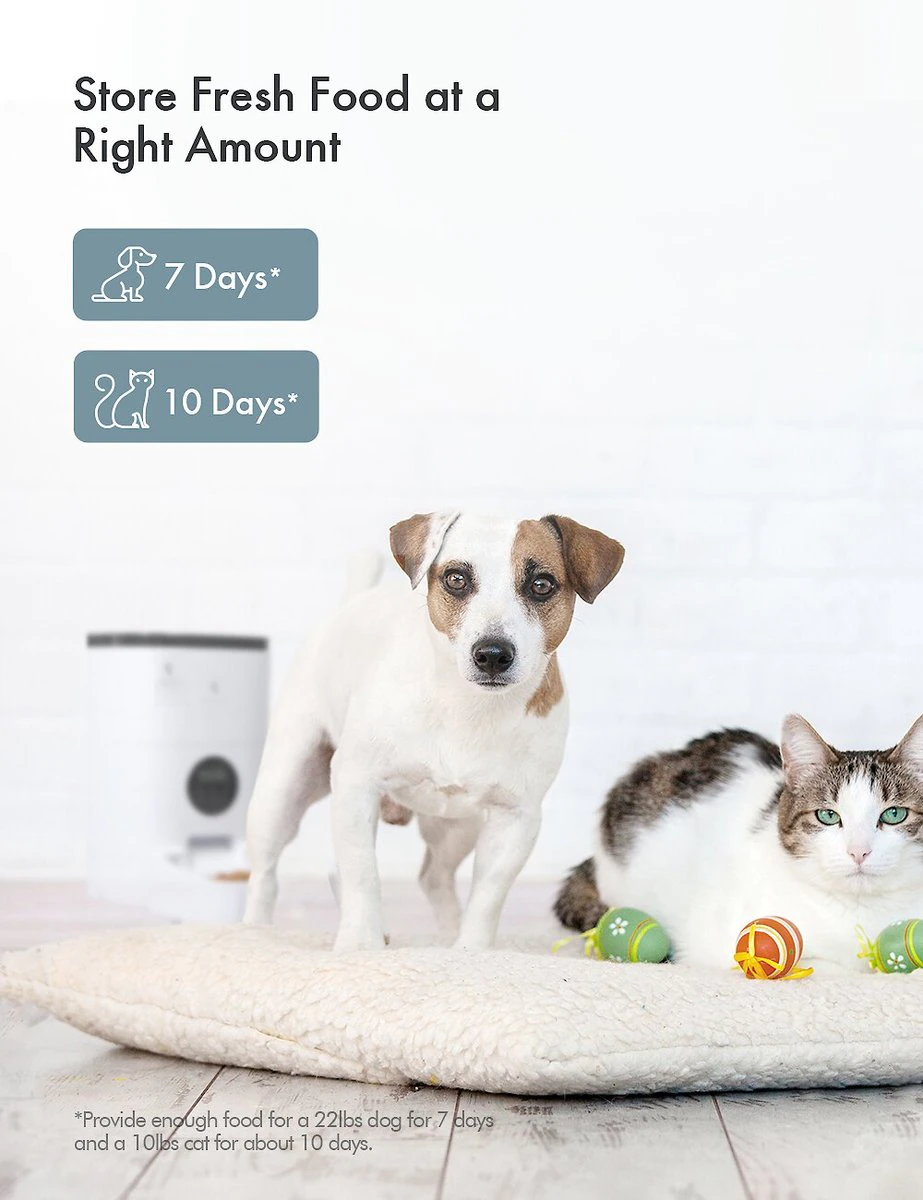 HANAMYA BPA Free Pet Food Storage Container & Measuring Cup 10lbs. White & Grey