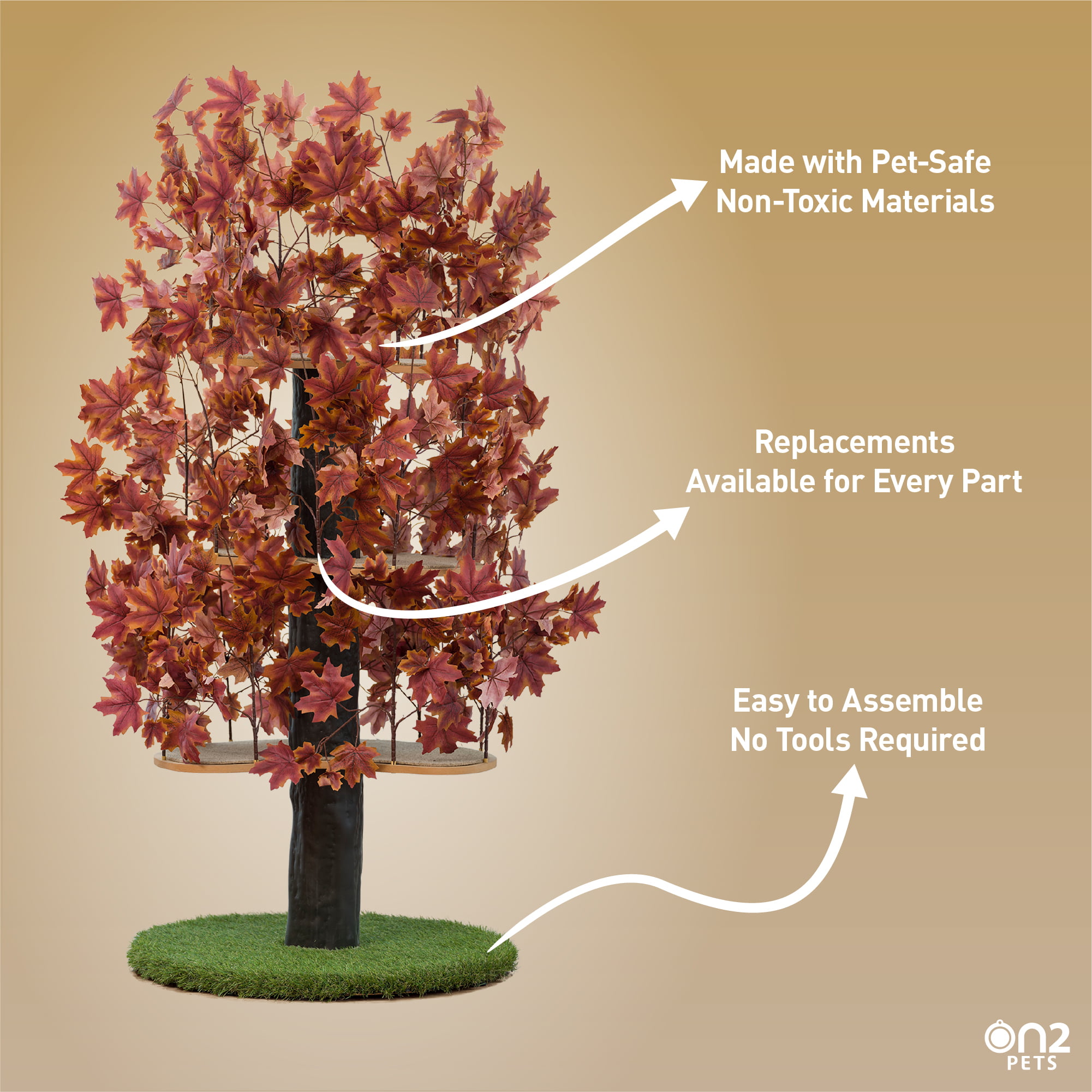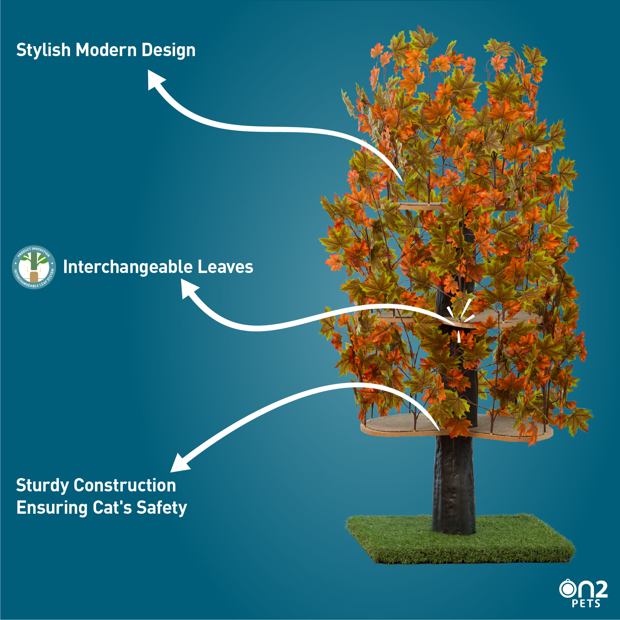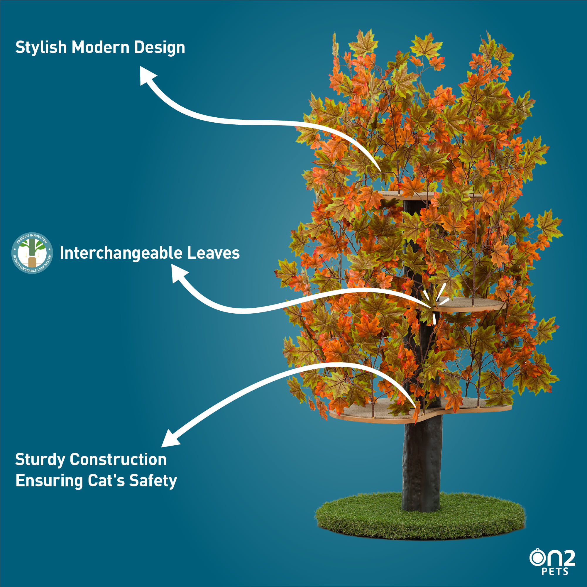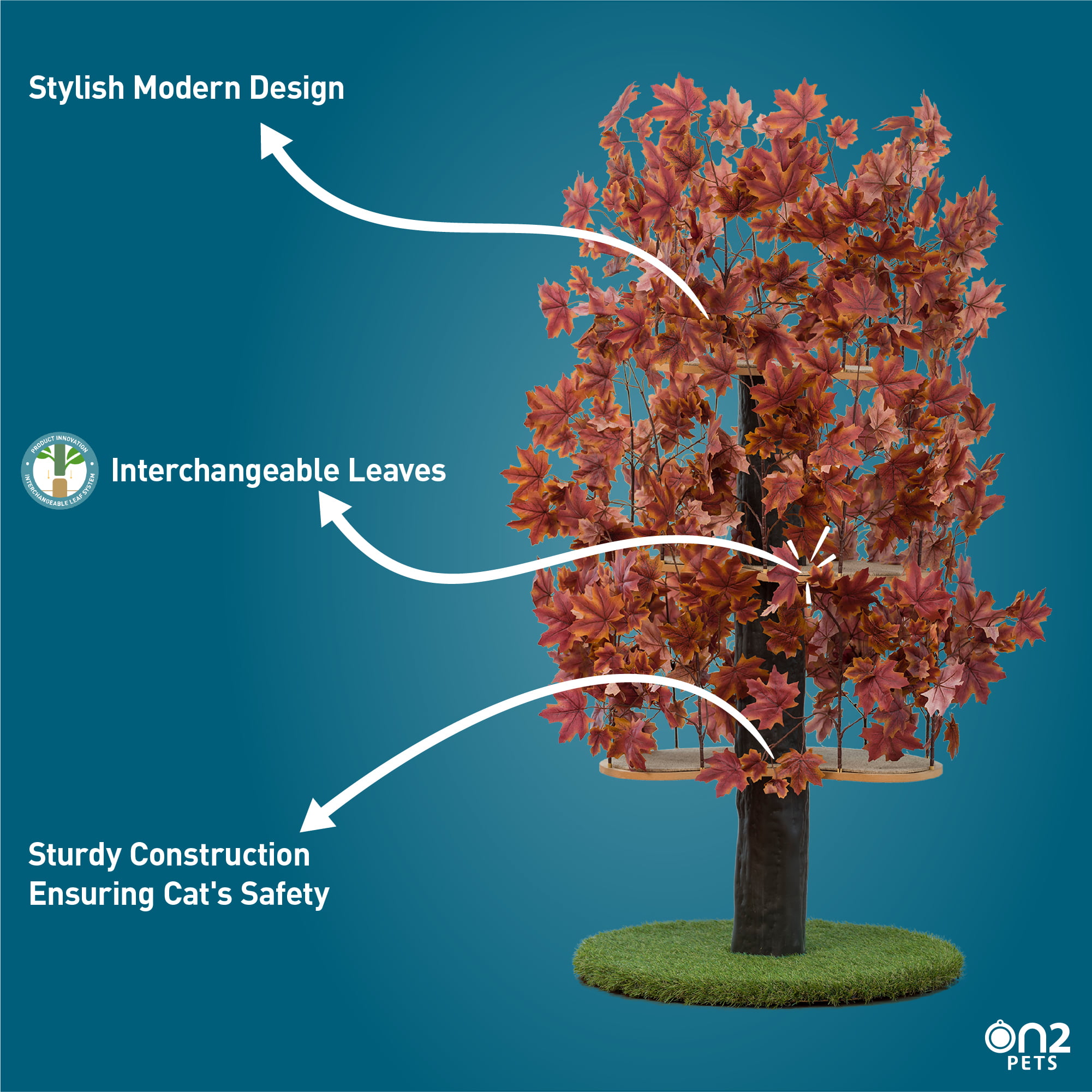 On2Pets Cat Tree with Leaves. Cat House & Cat Activity Tree. Multi-Level Cat Condo for Indoor Cats. Round Base. Mixed Maple