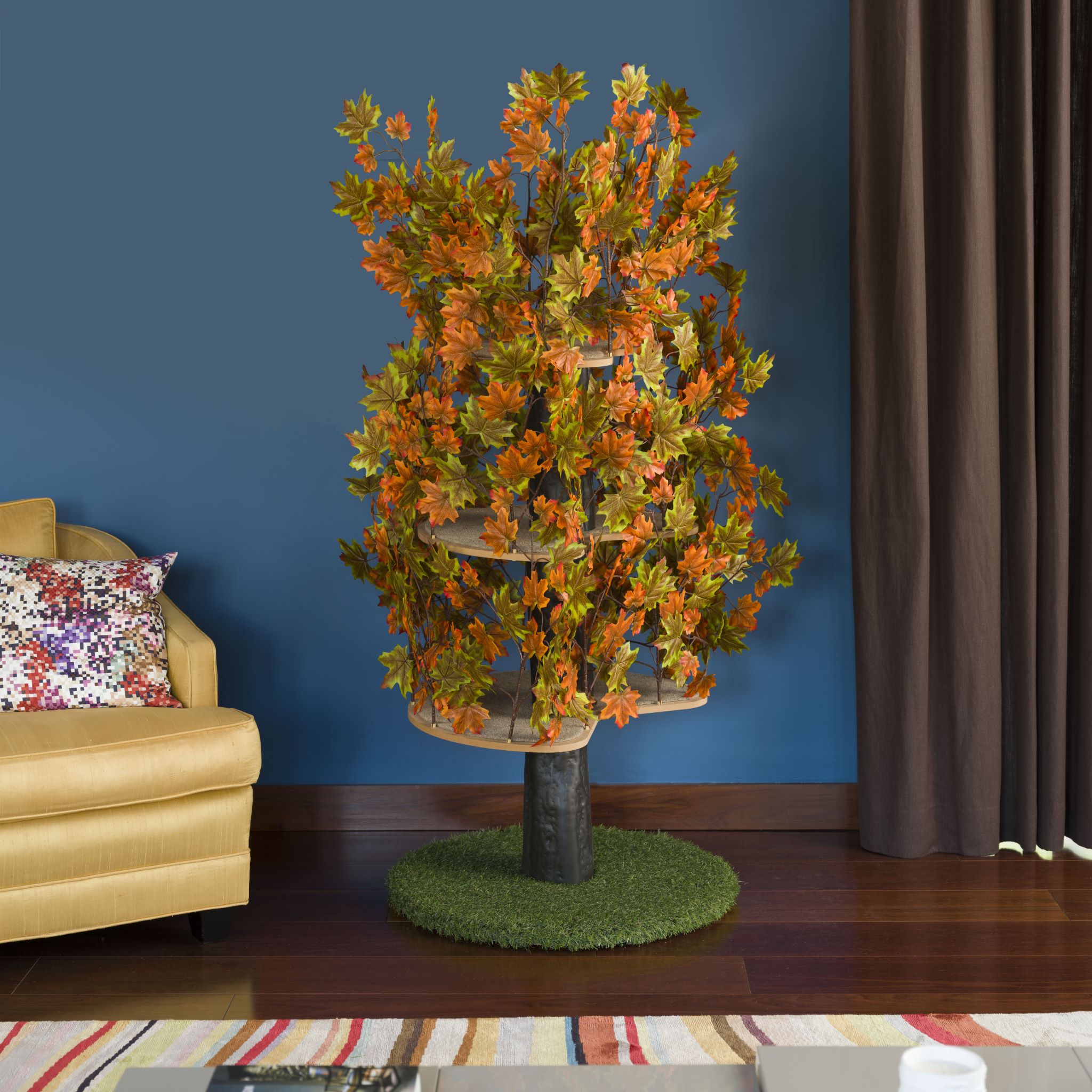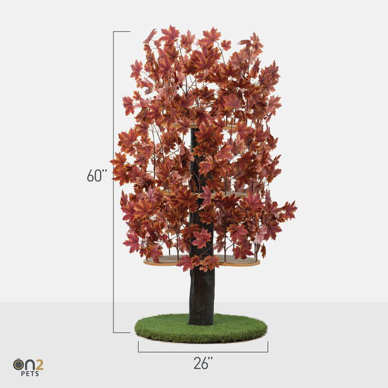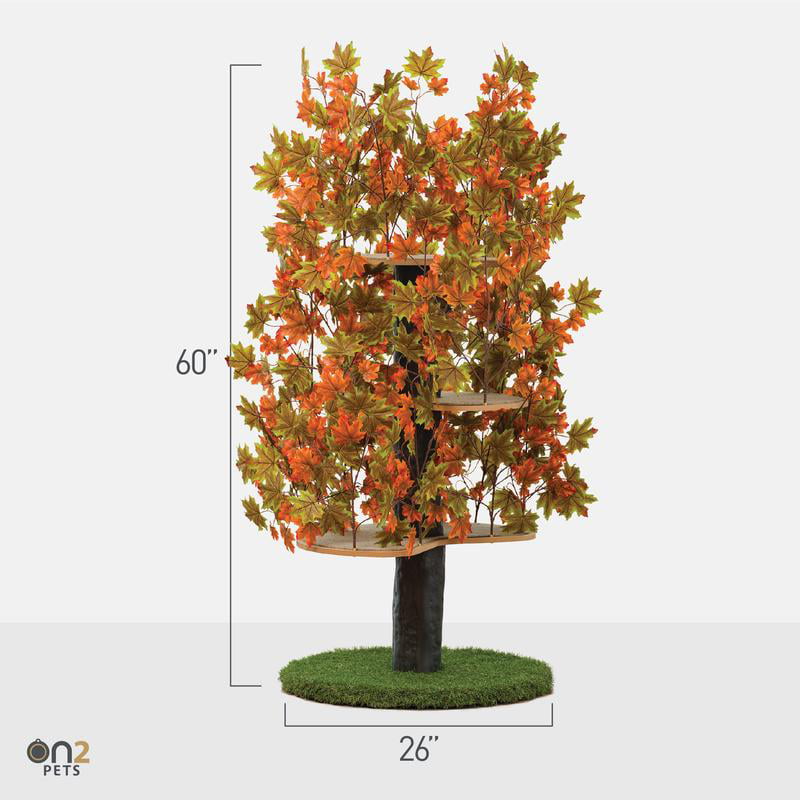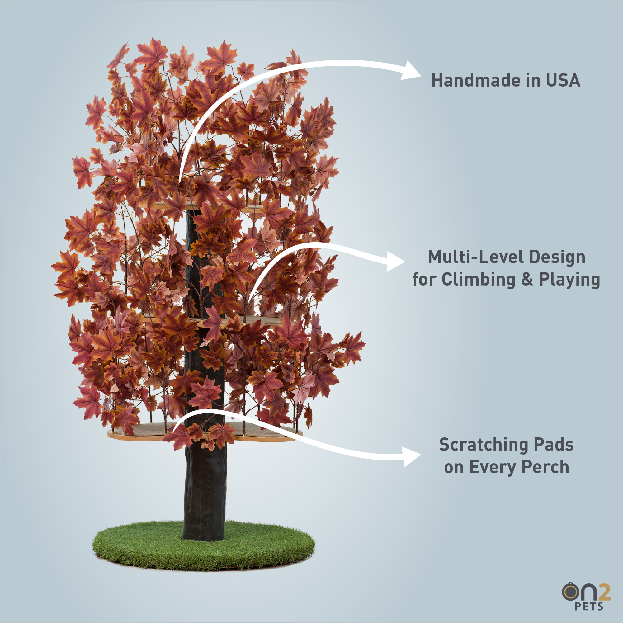 On2Pets Cat Tree with Leaves. Cat House & Cat Activity Tree. Multi-Level Cat Condo for Indoor Cats. Round Base. Mixed Maple