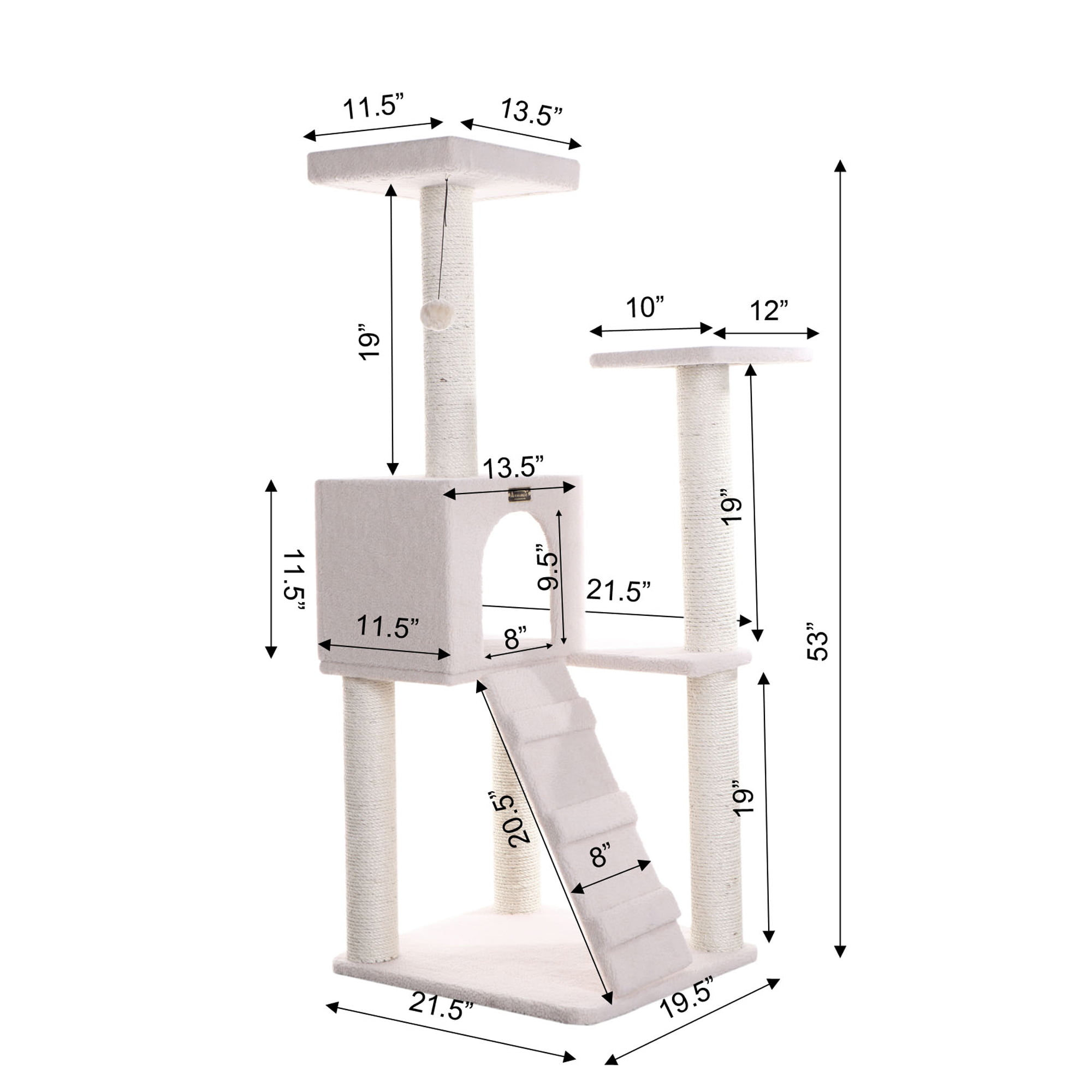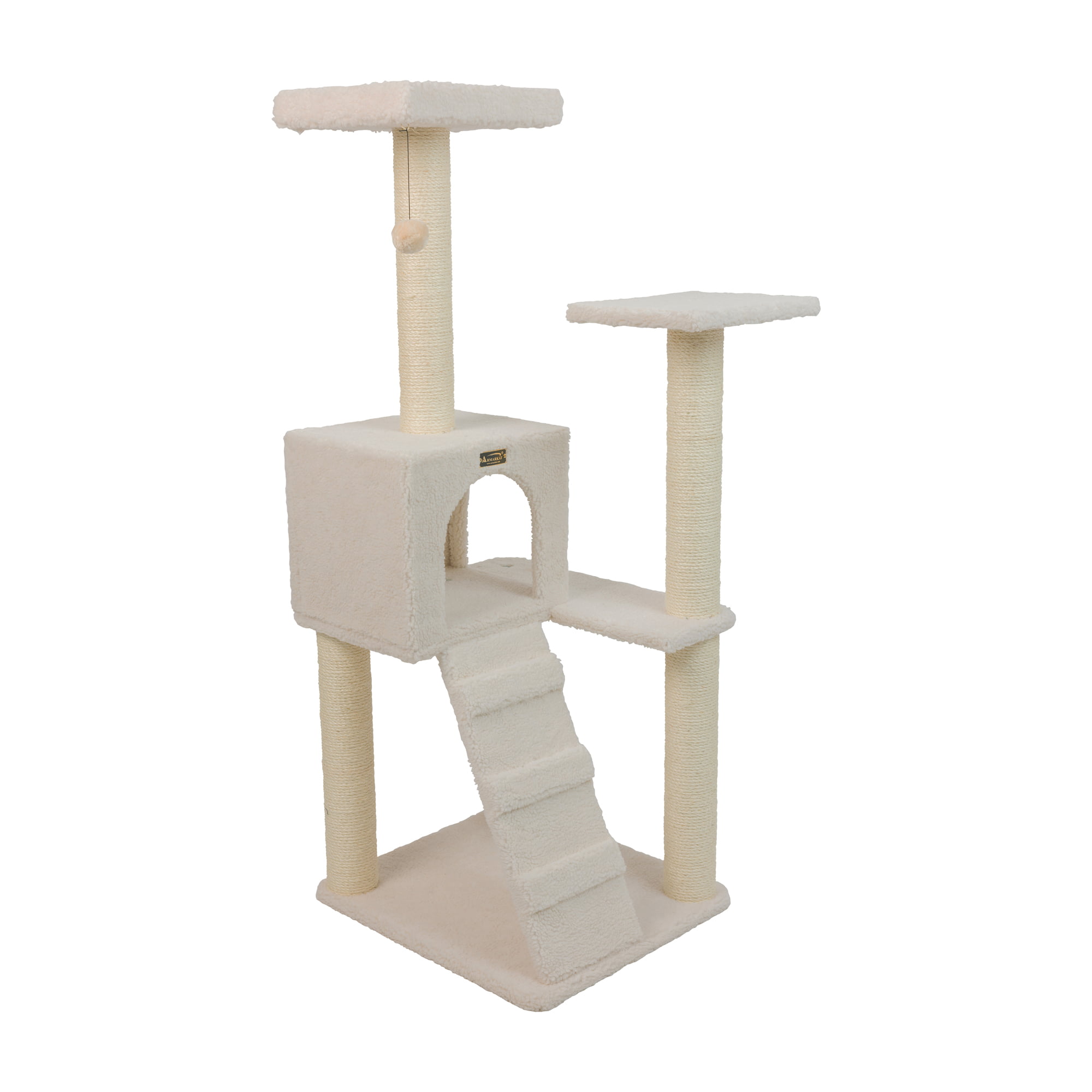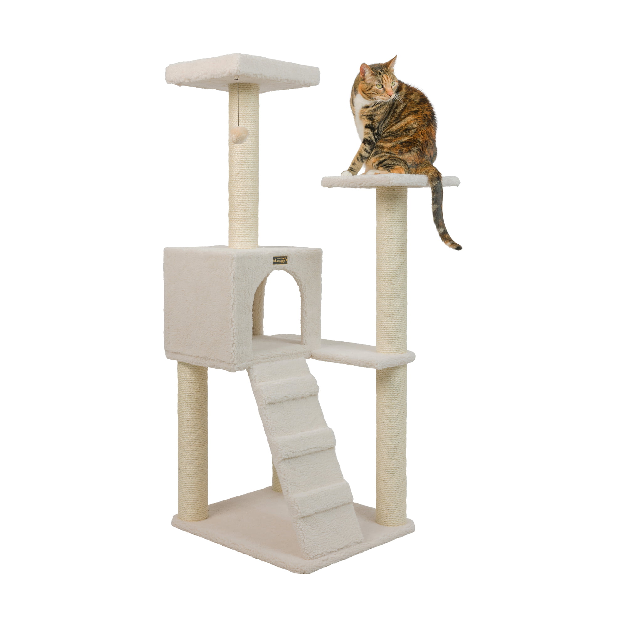 Armarkat 53-in real wood Cat Tree & Condo Scratching Post Tower. White