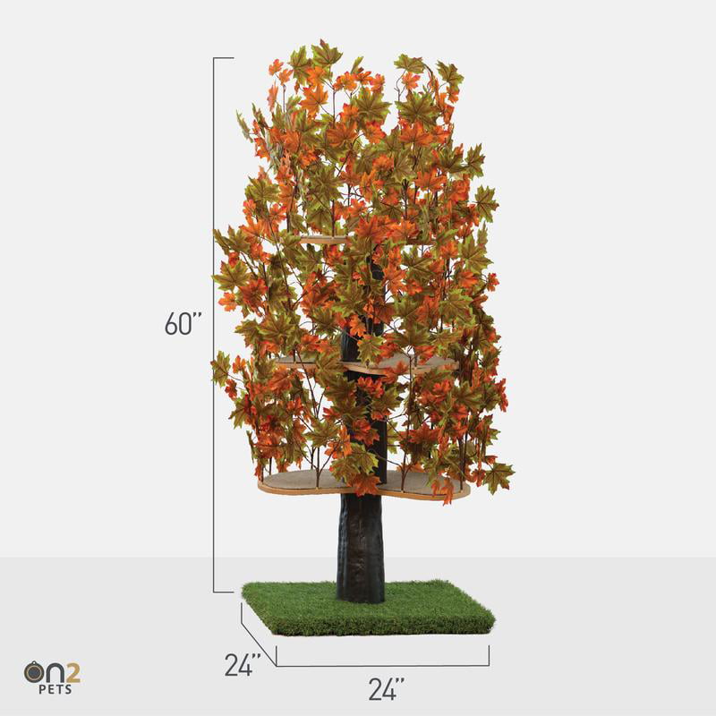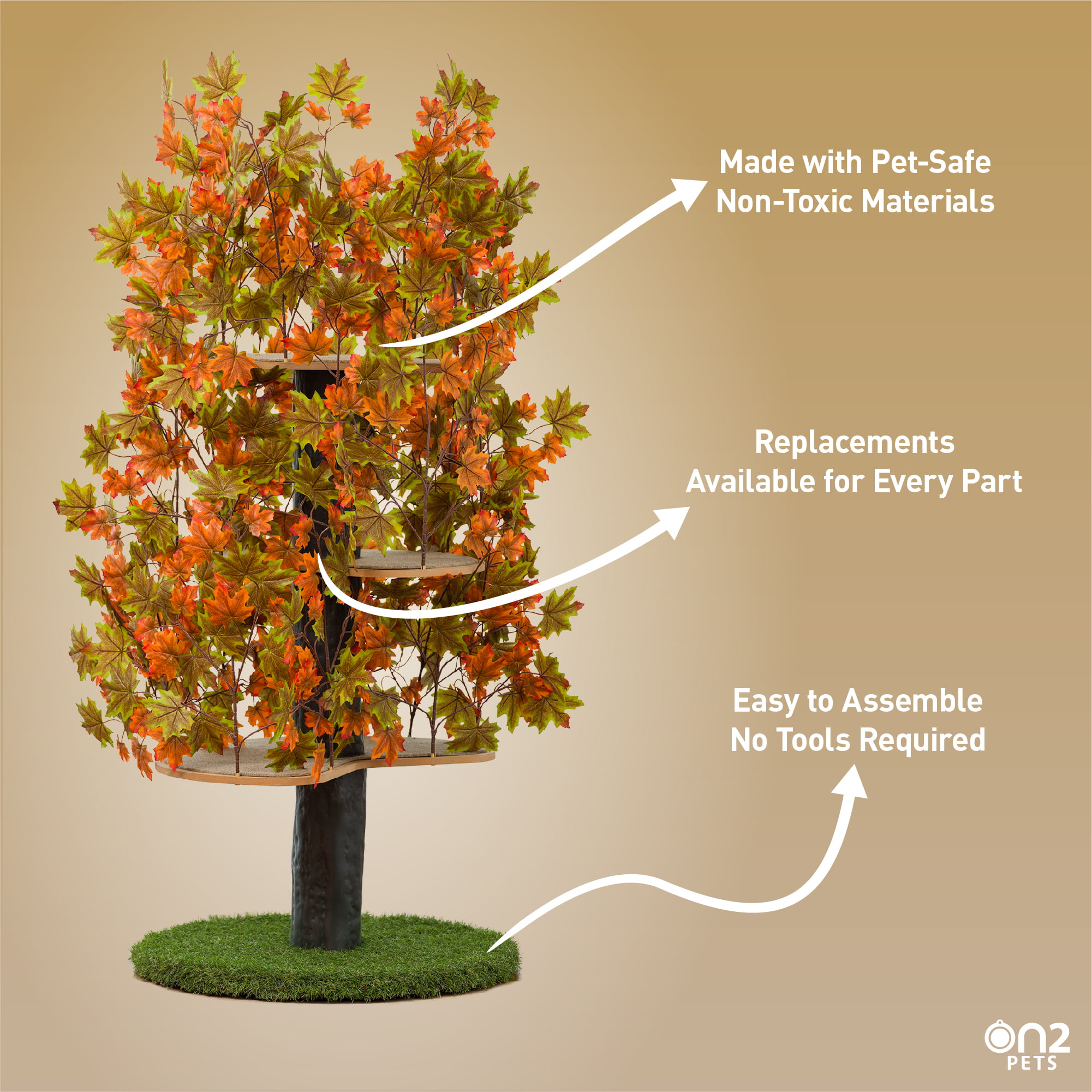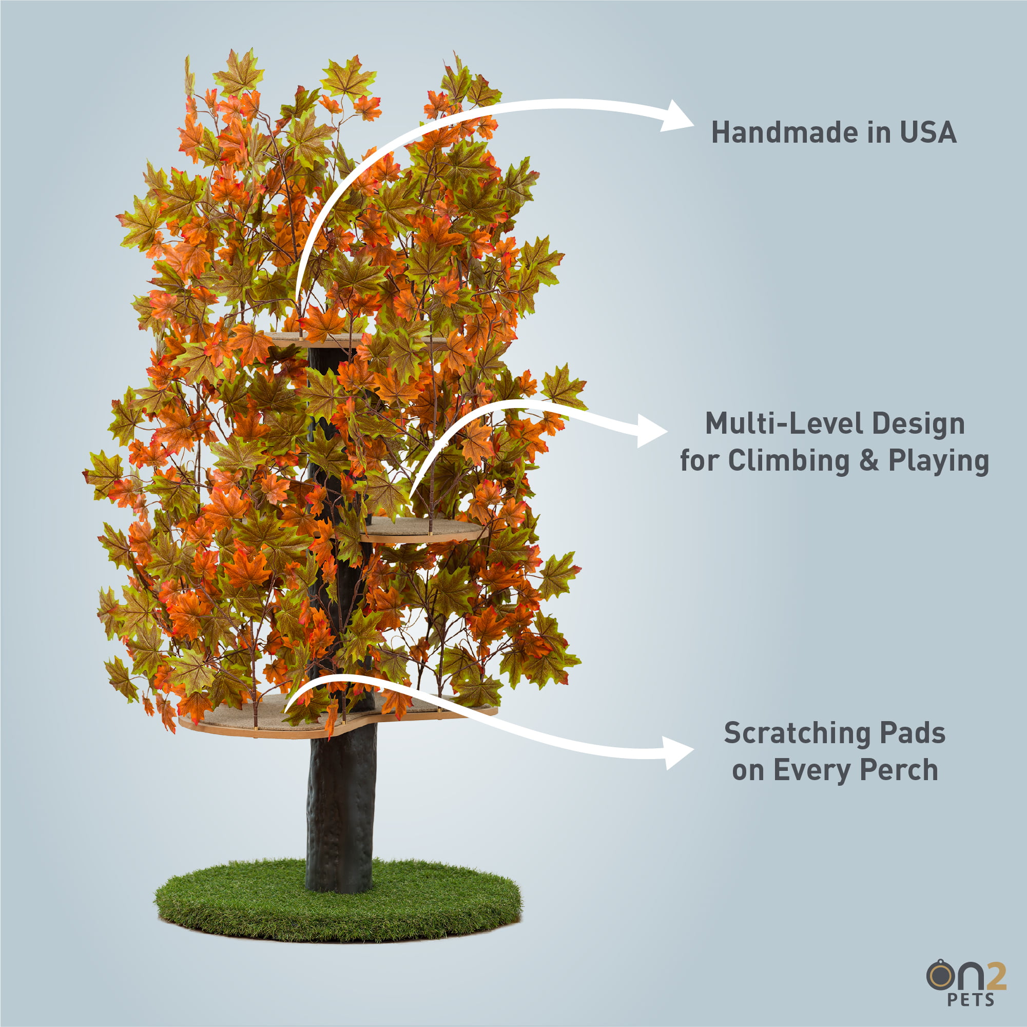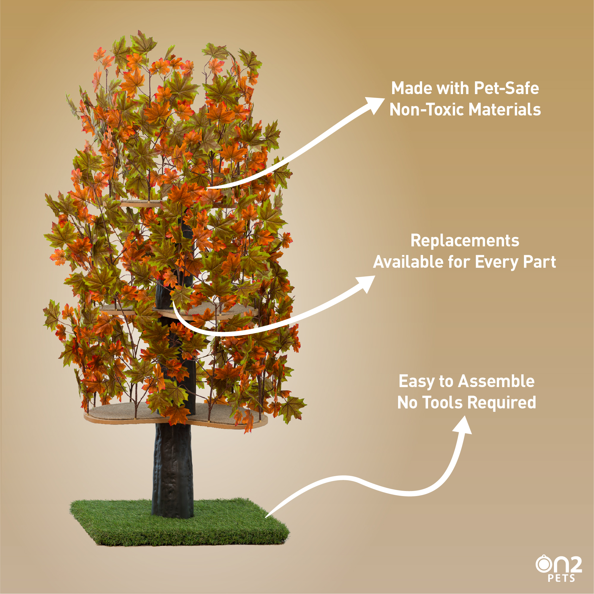 On2Pets Cat Tree with Leaves. Cat House & Cat Activity Tree. Multi-Level Cat Condo for Indoor Cats. Square Base. Mixed Maple