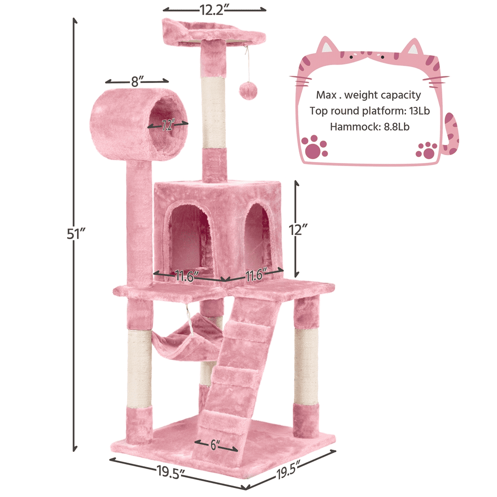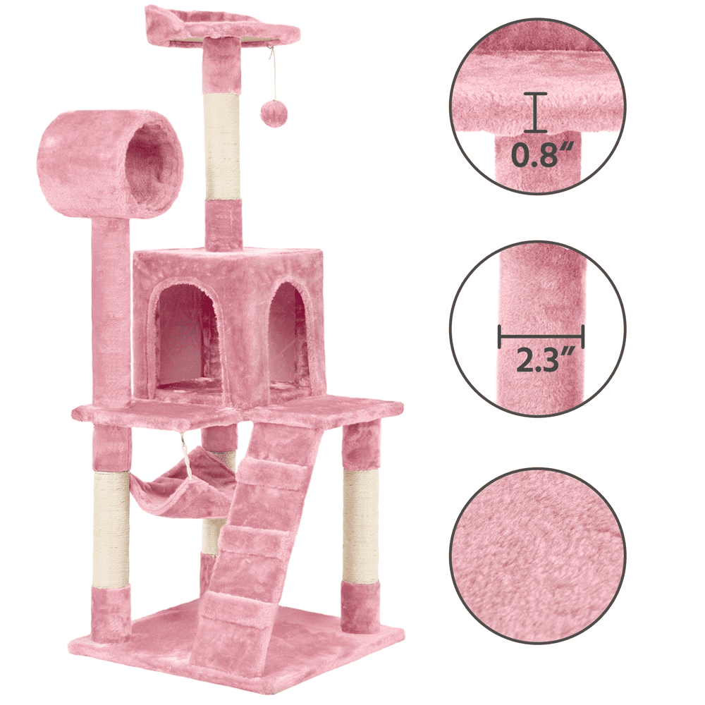 On2Pets Cat Tree with Leaves. Cat House & Cat Activity Tree. Multi-Level Cat Condo for Indoor Cats. Round Base. Deep Plum