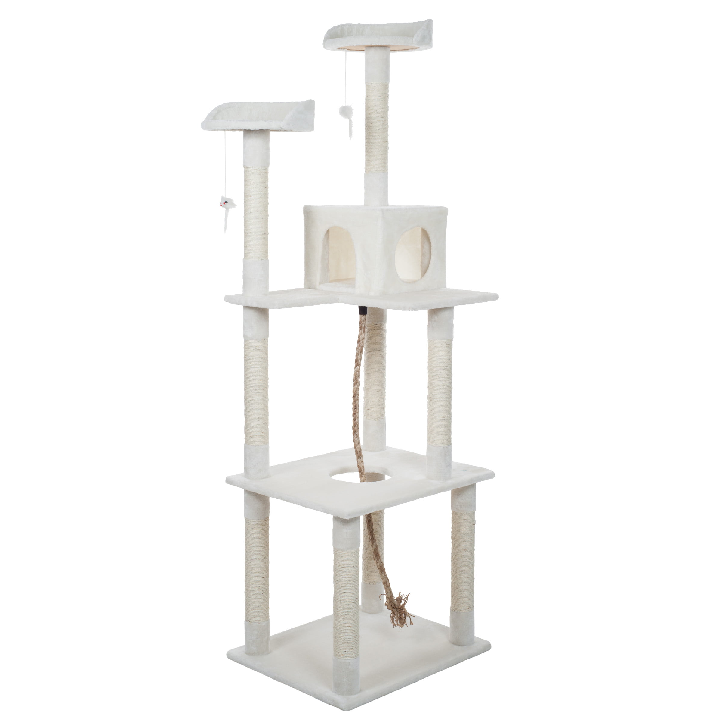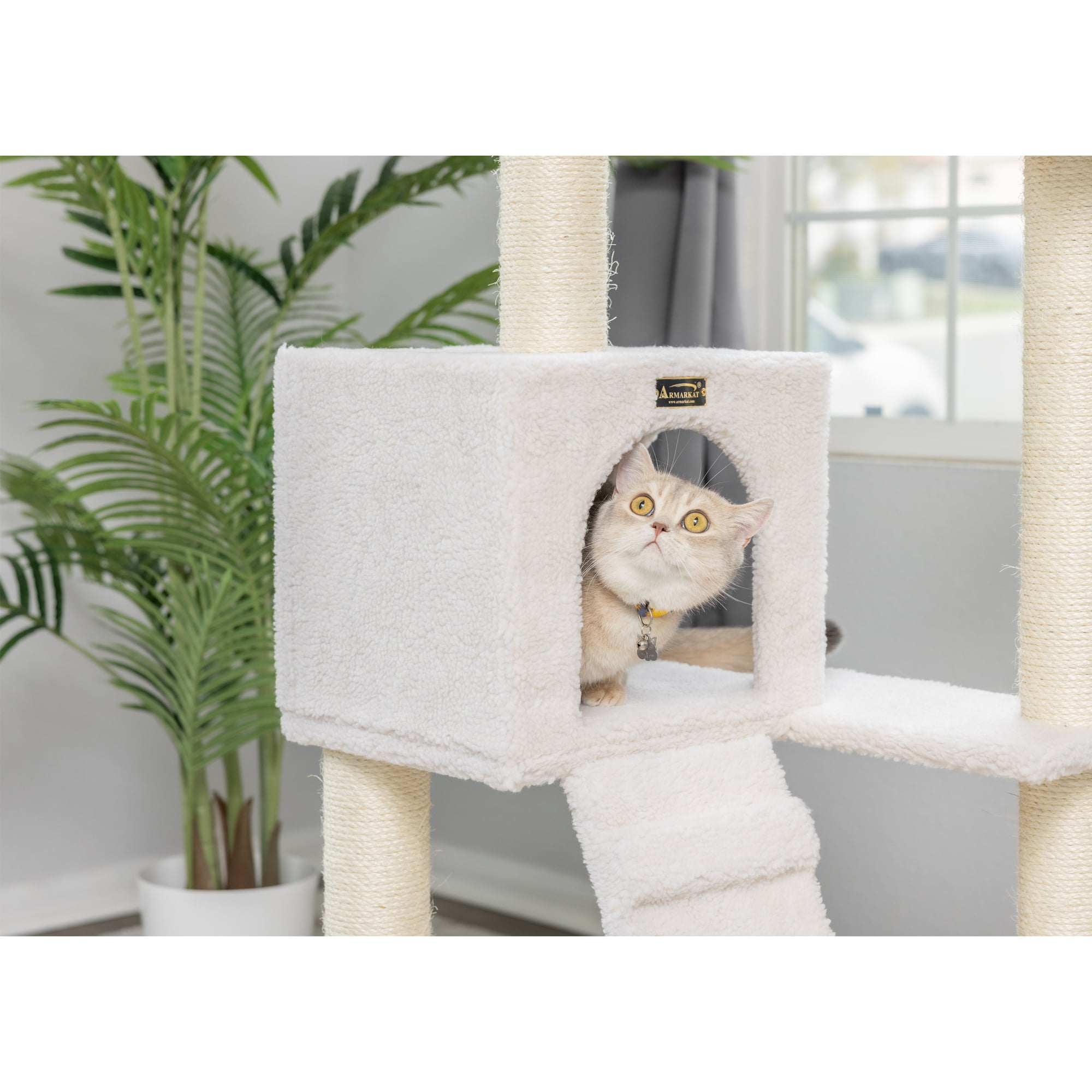 6-Foot Cat Tower - Napping Perches. Cat Condo. 9 Sisal Rope Scratching Posts. Hanging Toys and Rope – Cat Tree for Indoor Cats by PETMAKER (Ivory)