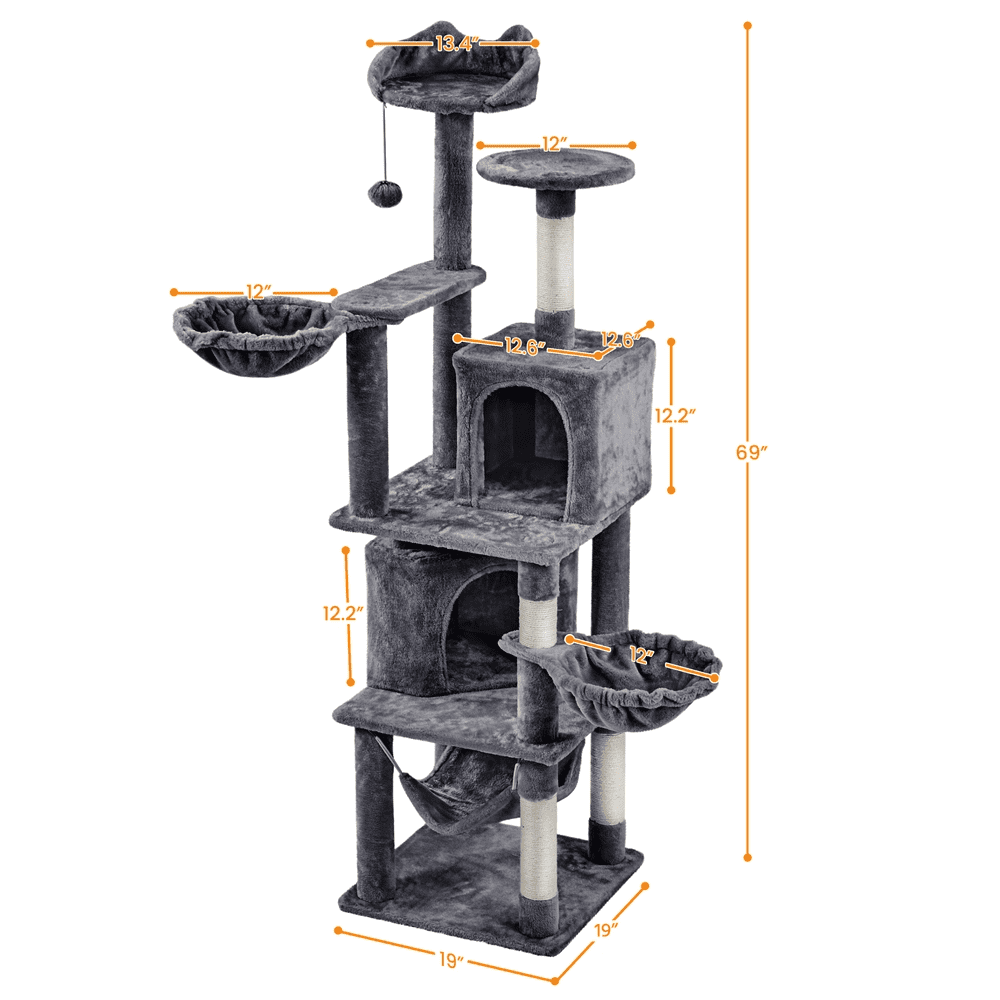 Easyfashion 69-inch Multilevel Cat Tree for Cats Kittens. Dark Gray