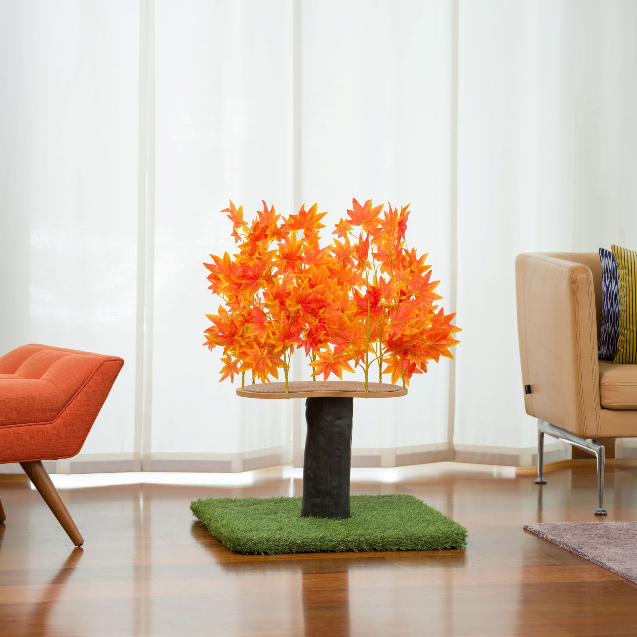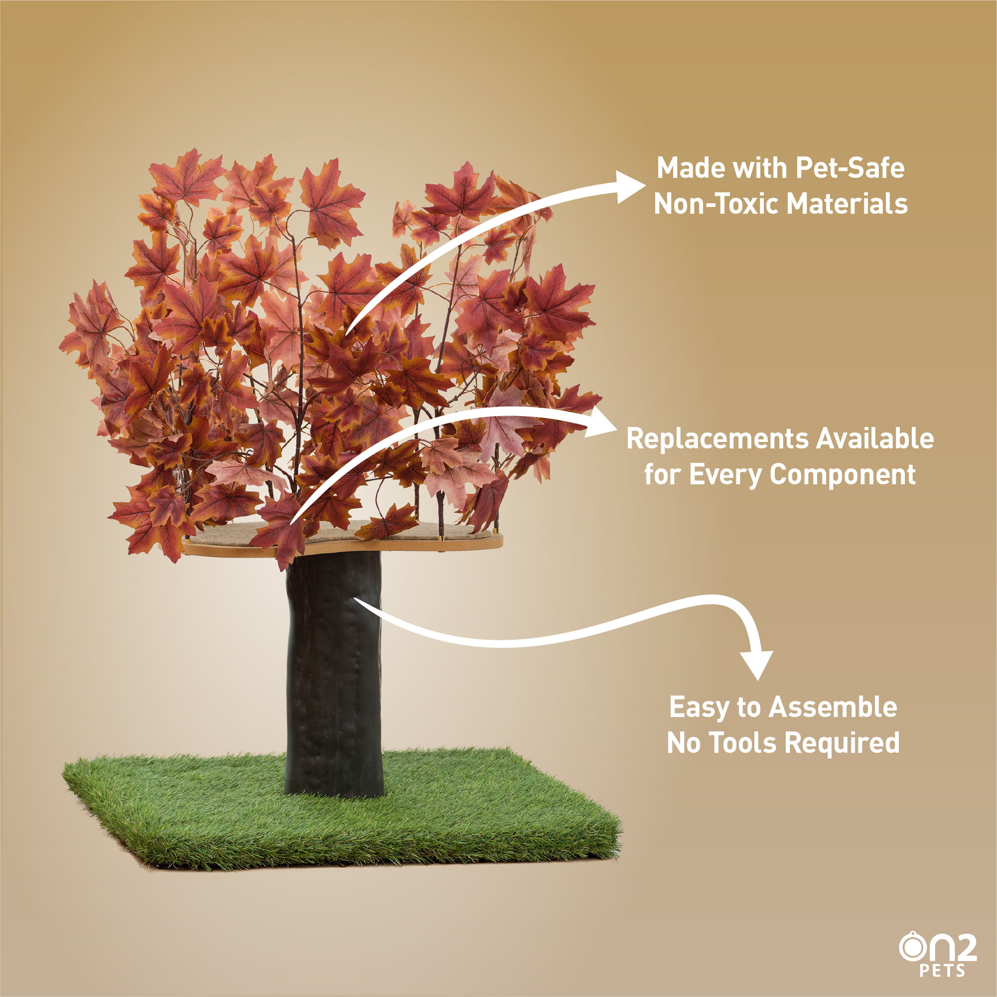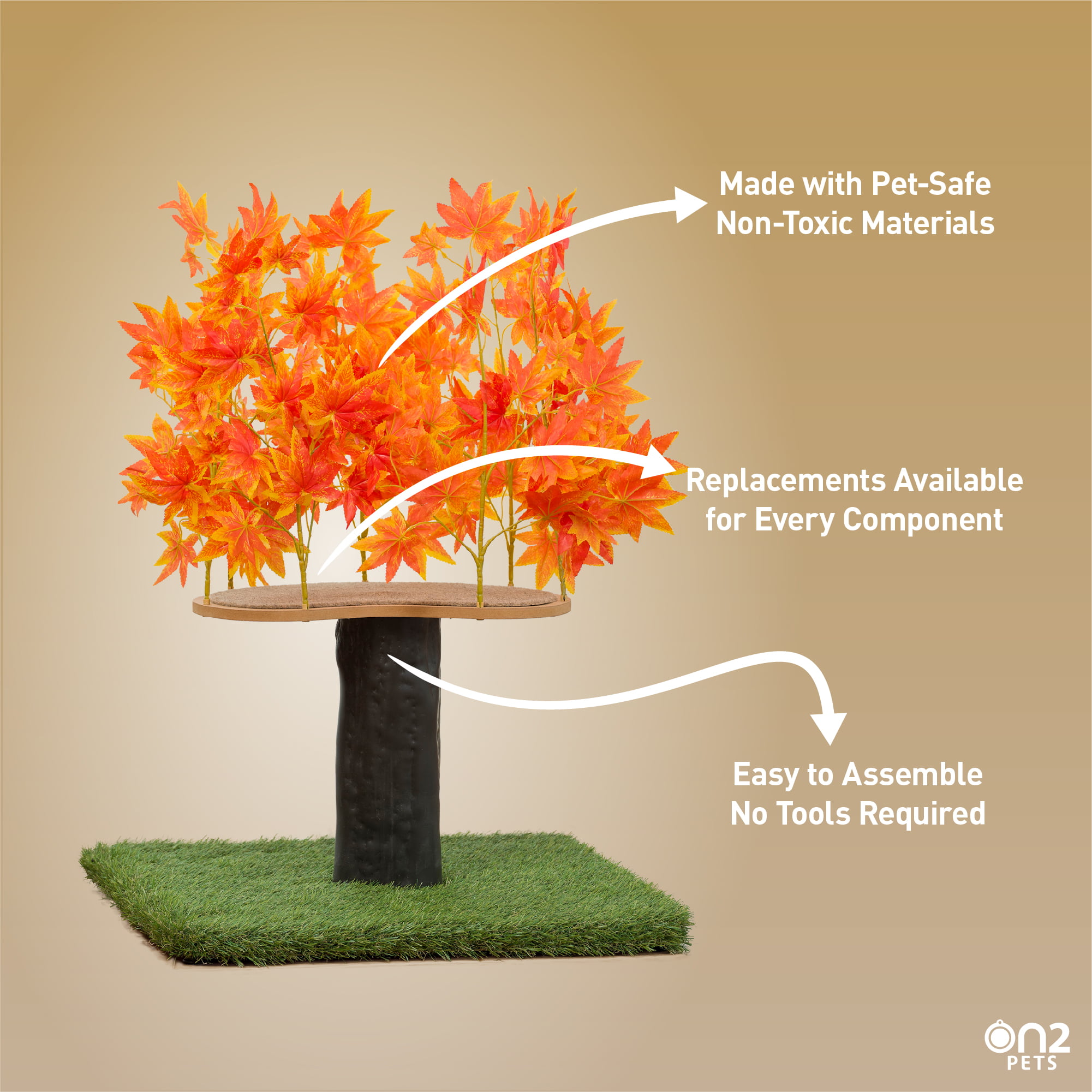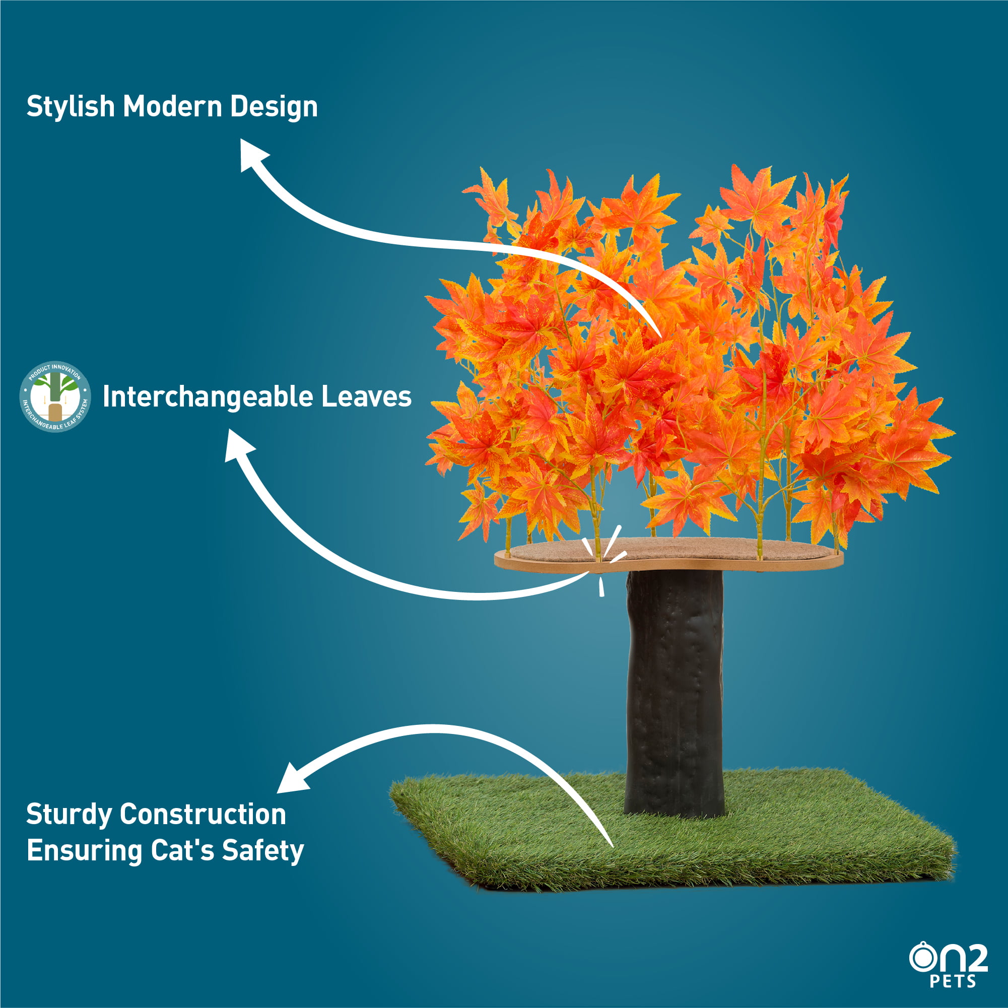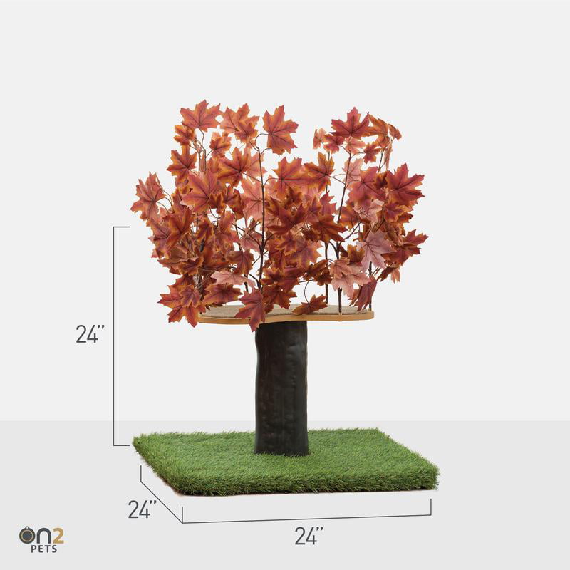 On2Pets 2ft Interchangeable Leaves Cat Activity Tree. Indoor Cat Tower. Comfy Cat Condo with Scratching Pads. Orange Blaze