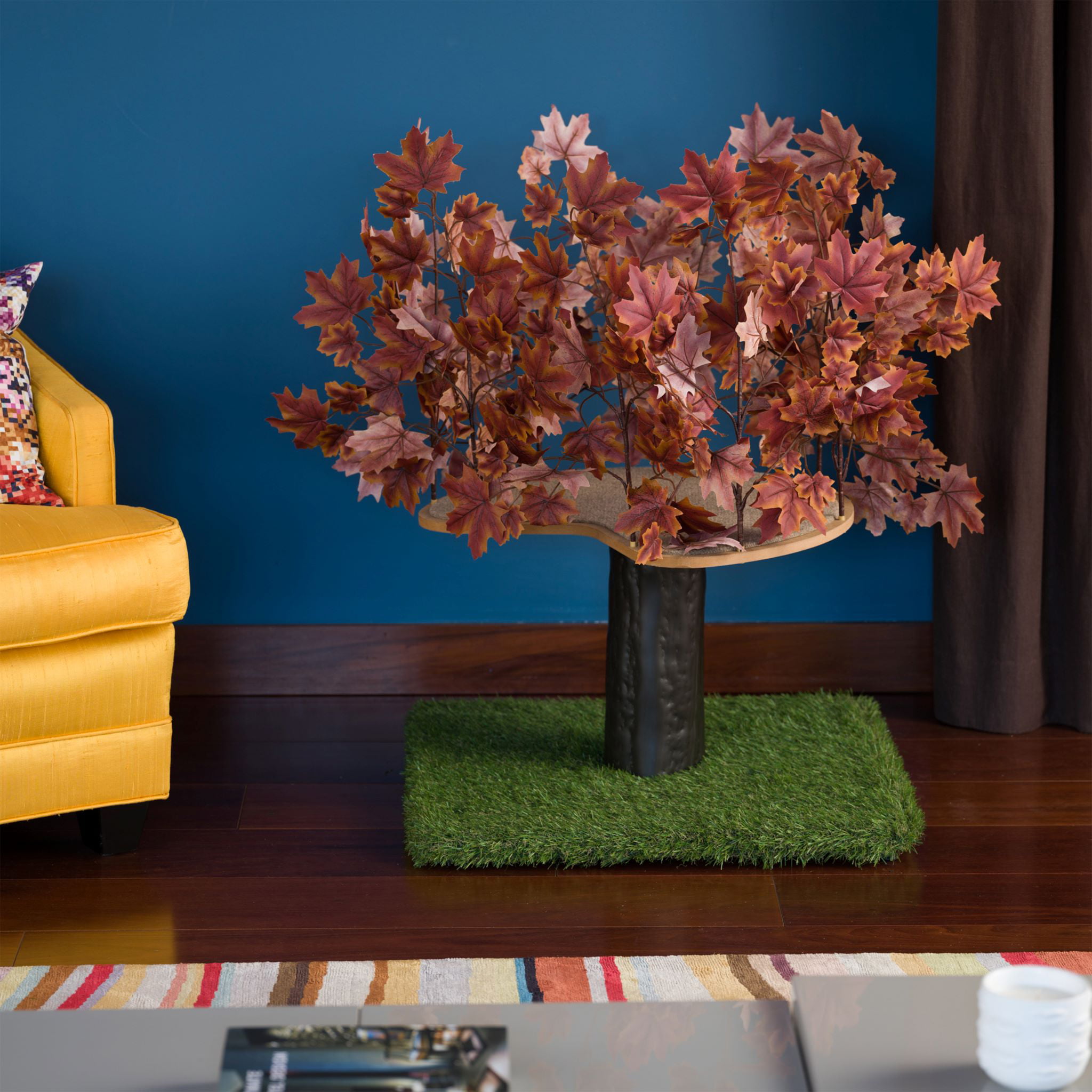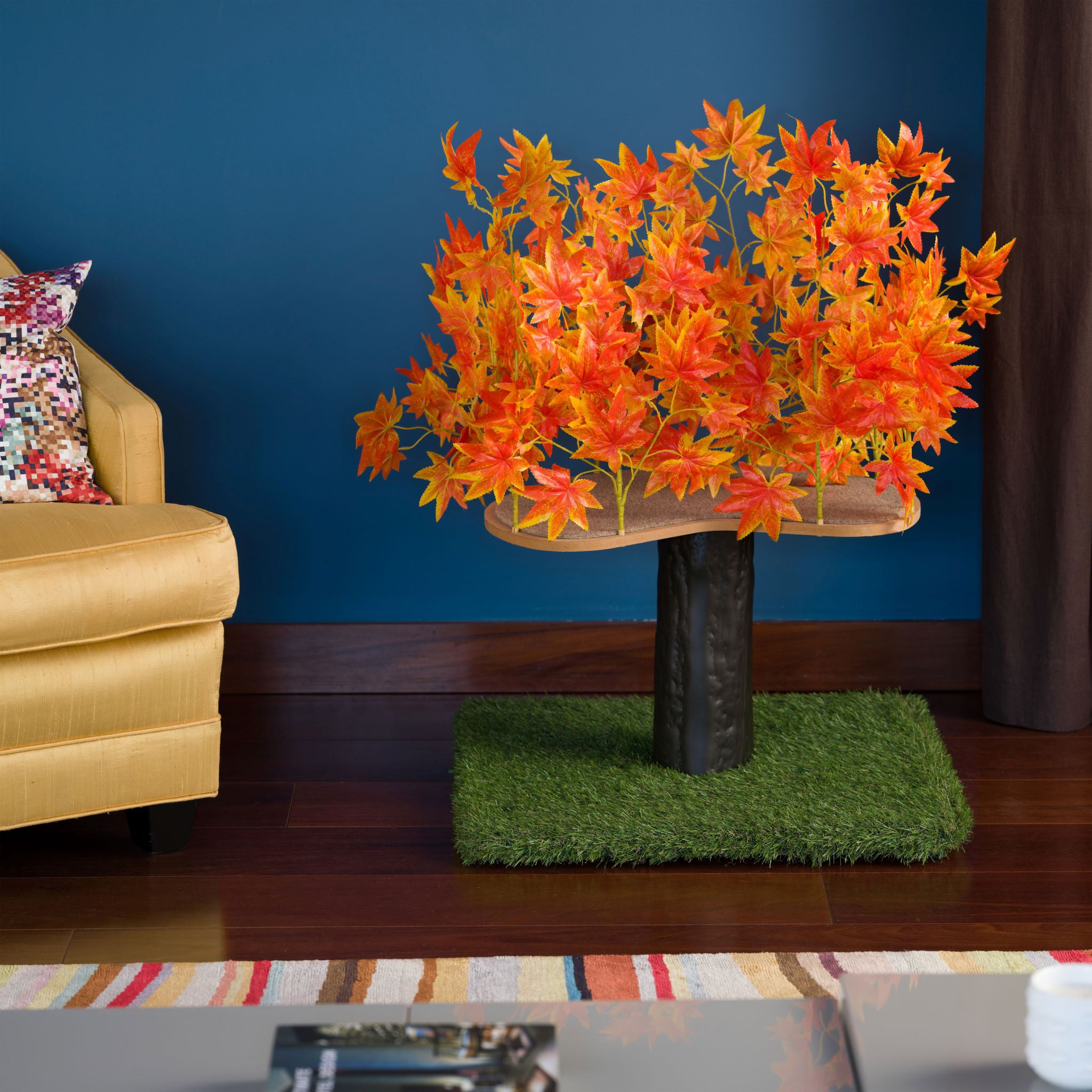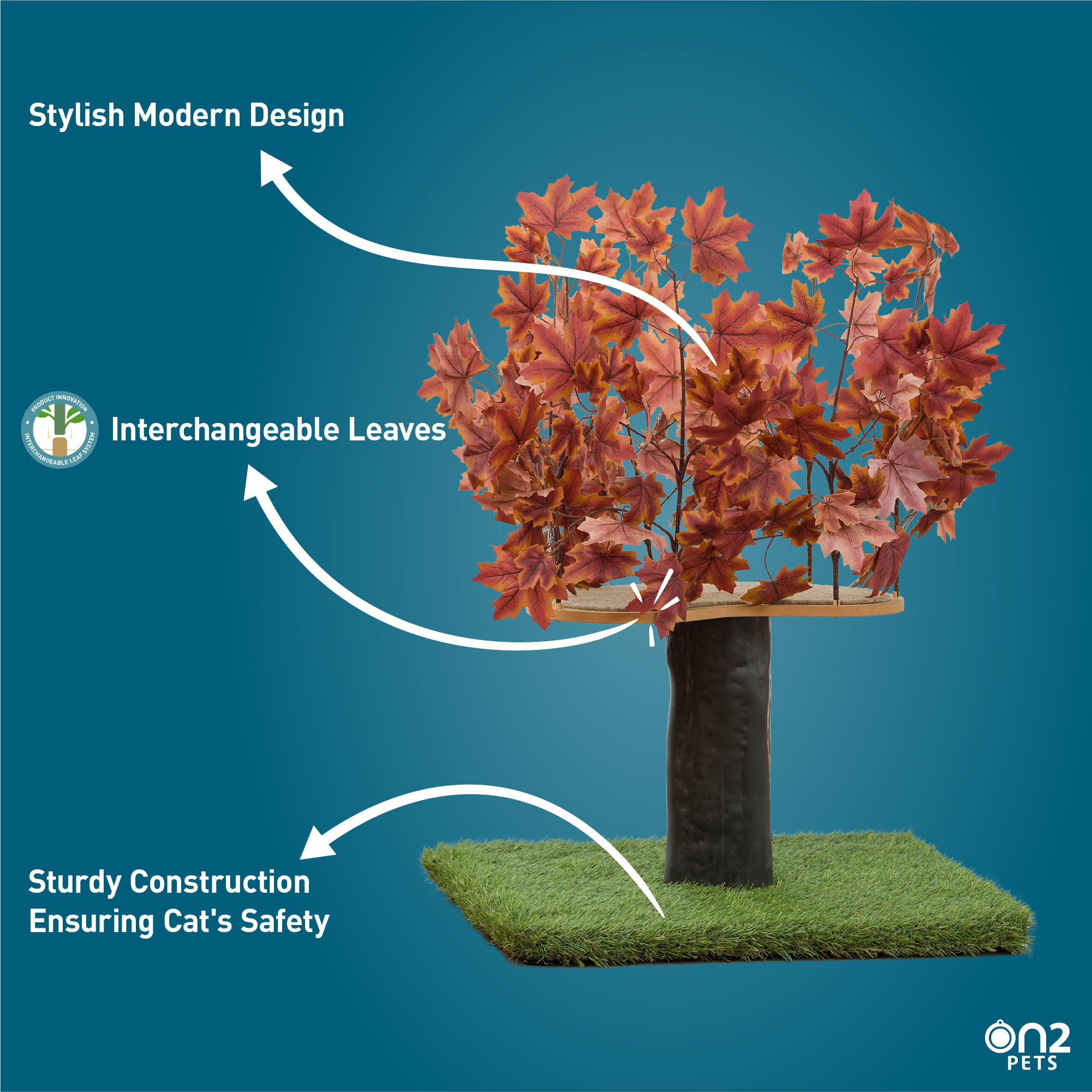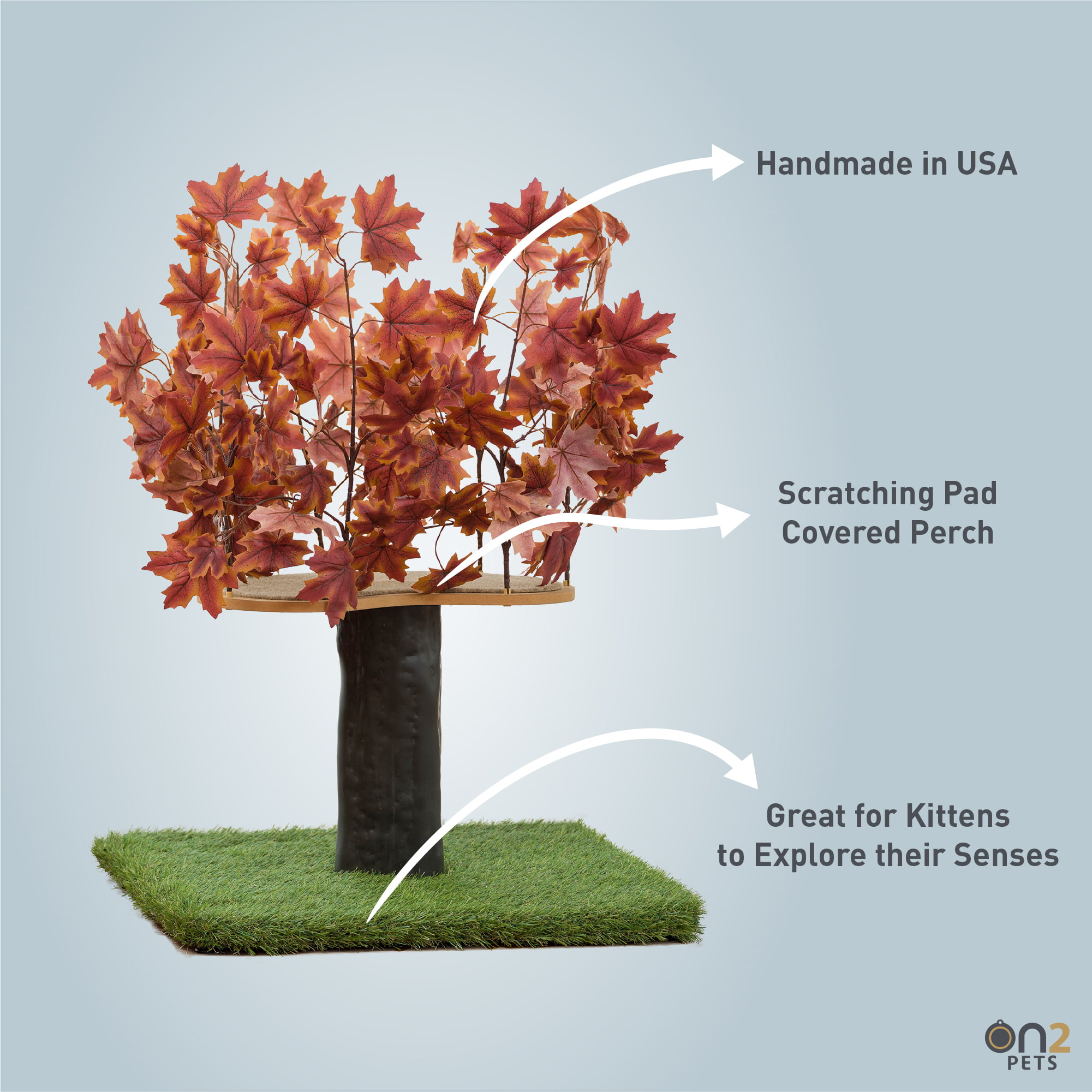 On2Pets 2ft Interchangeable Leaves Cat Activity Tree. Indoor Cat Tower. Comfy Cat Condo with Scratching Pads. Orange Blaze