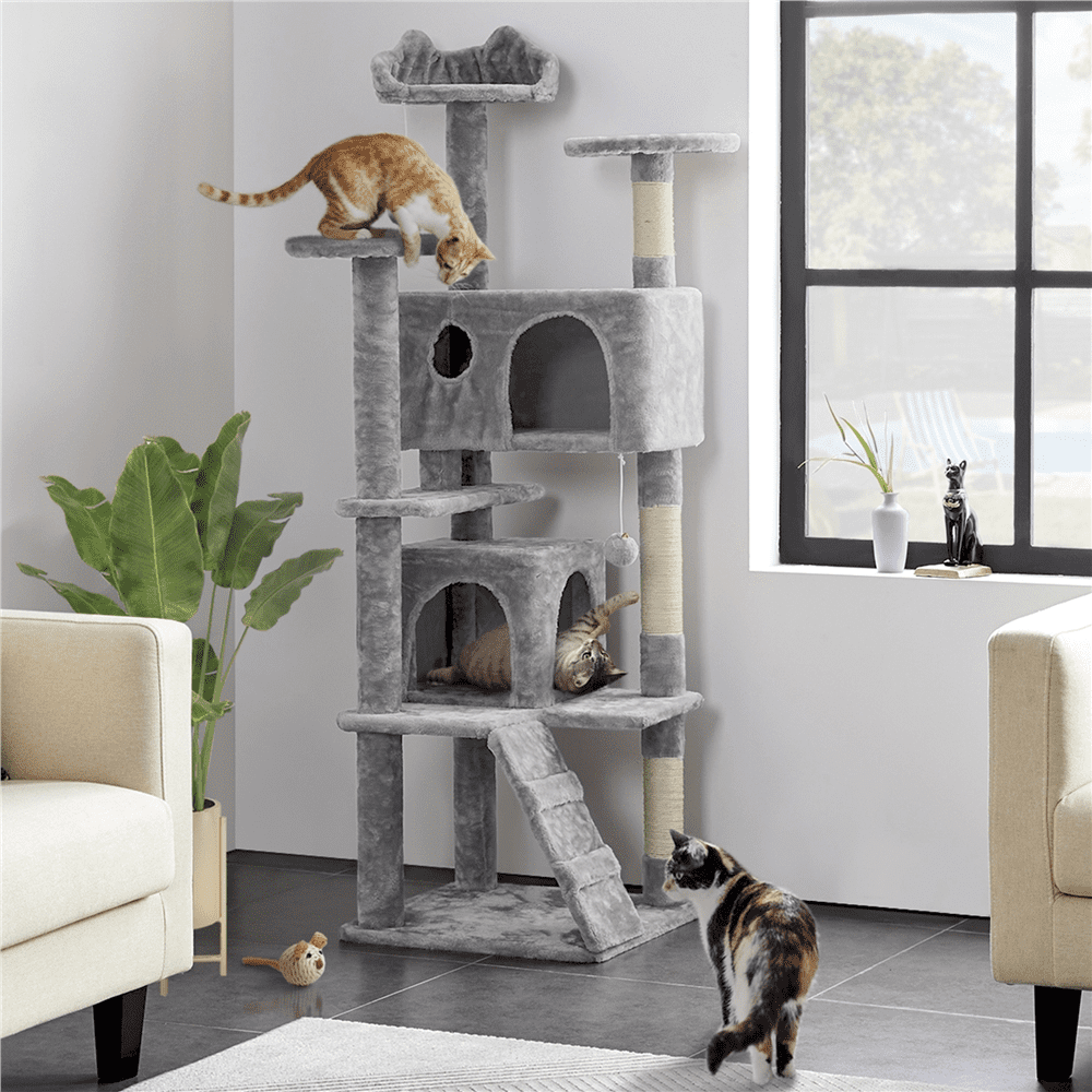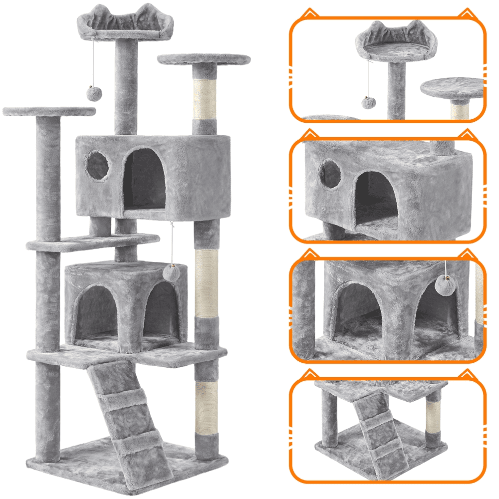 Easyfashion Multi-Level Cat Tree Cat Condo with Top Perch. Light Gray