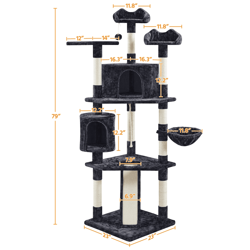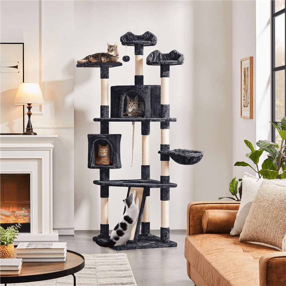 Easyfashion 79″ Multilevel Cat Tree Tower with Scratching Posts. Black