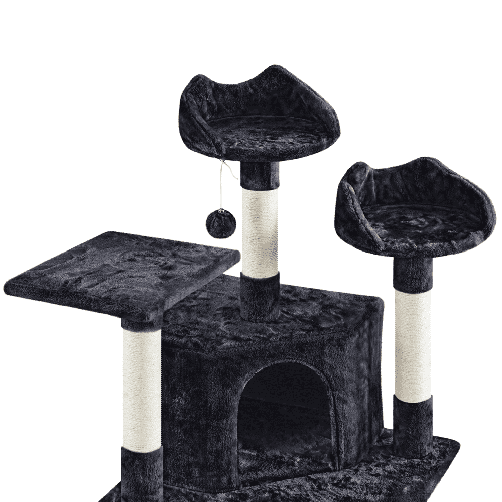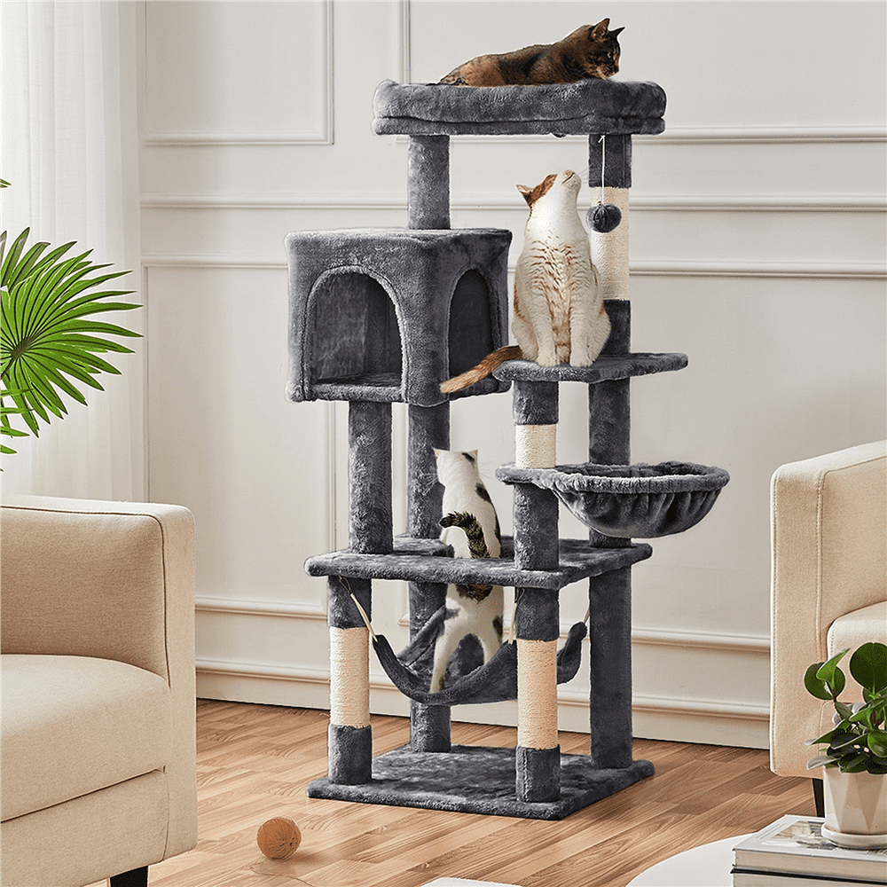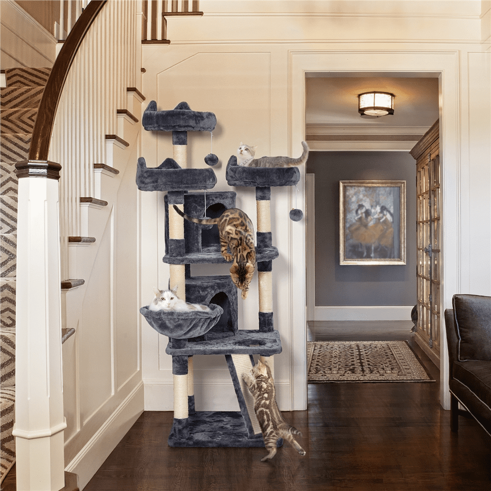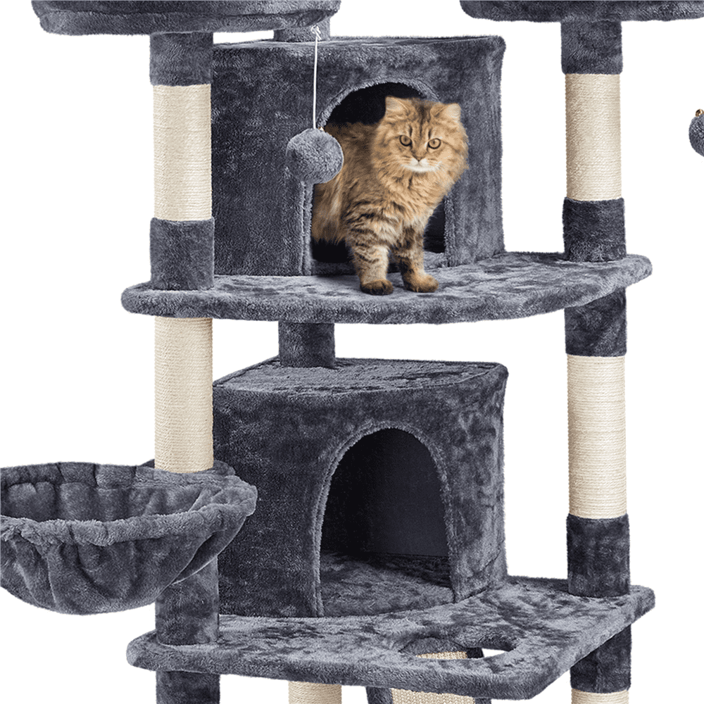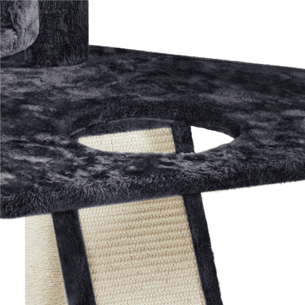 Easyfashion Large Cat Tree Plush Tower with Caves Condos Platforms Scratching Board. Dark Gray