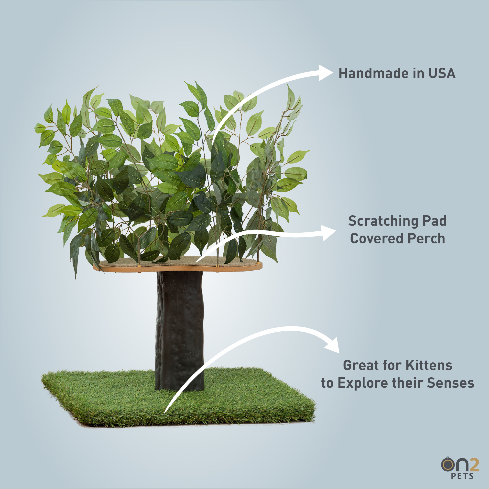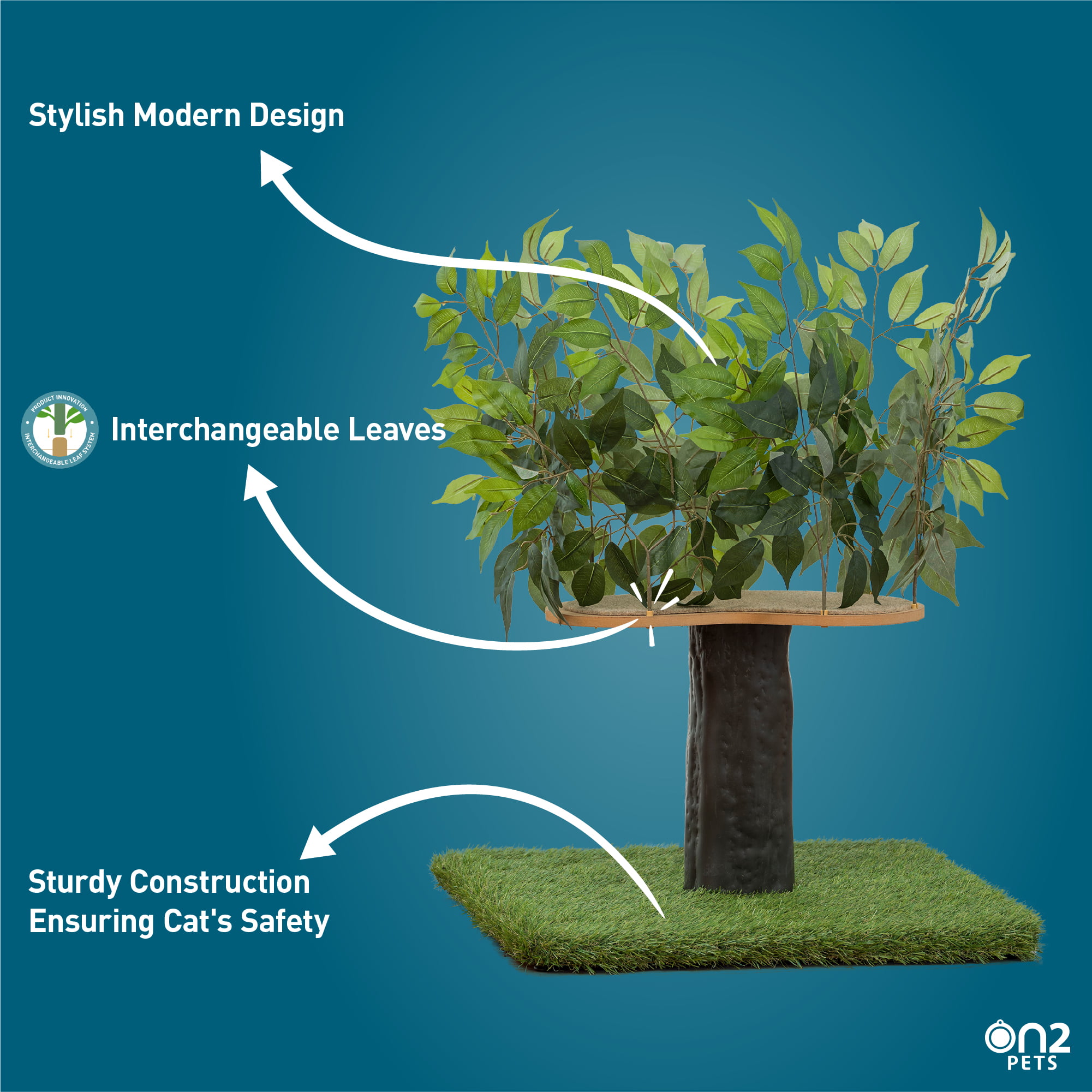 On2Pets 2ft Interchangeable Leaves Cat Activity Tree. Indoor Cat Tower. Comfy Cat Condo with Scratching Pads. Zen Green