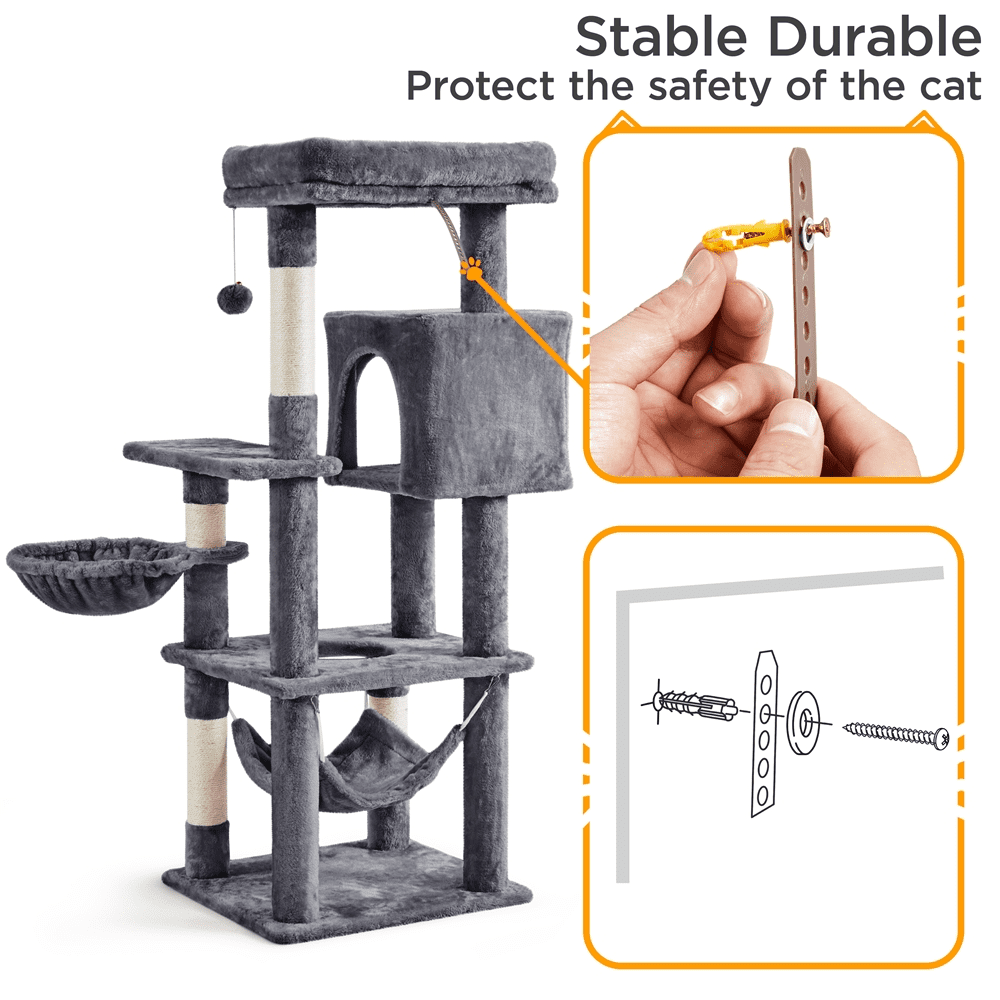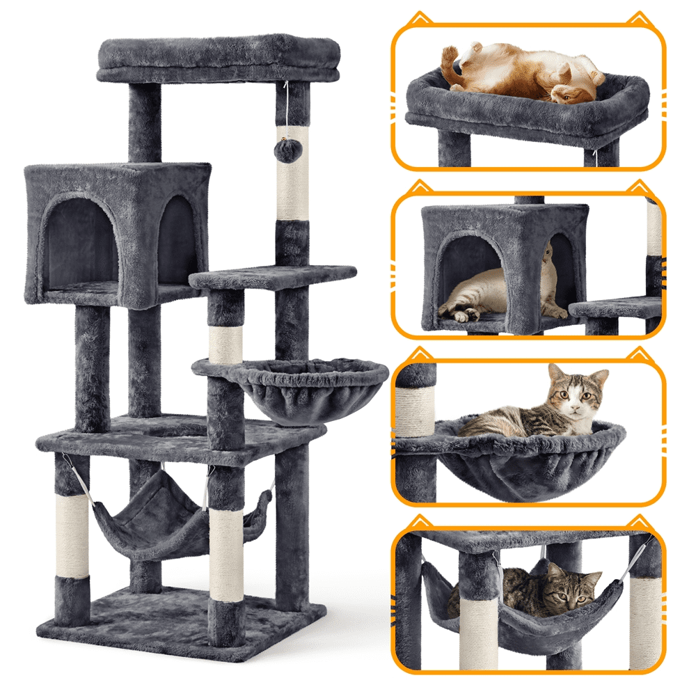SmileMart 52″ Cat Tree with Climbing Hole and Condo. Dark Gray