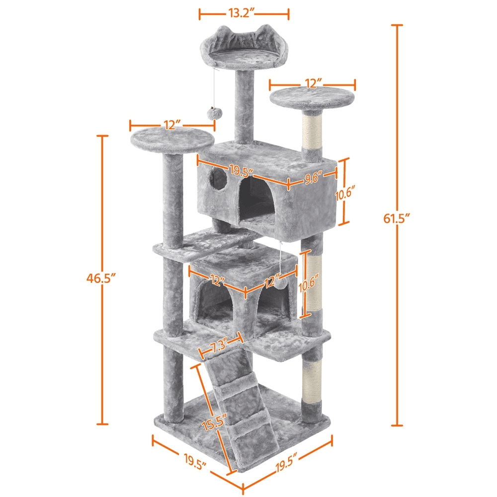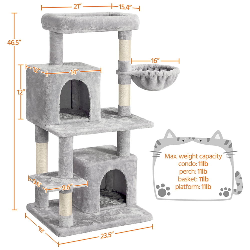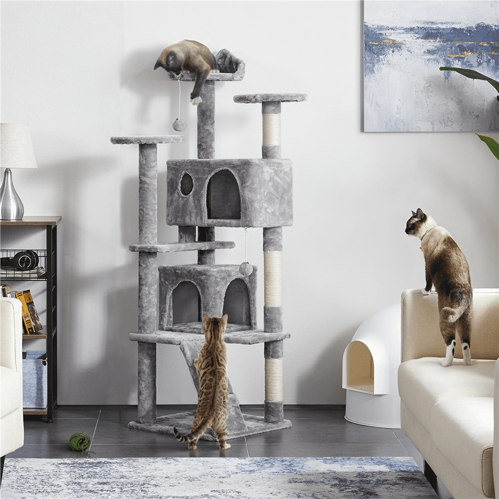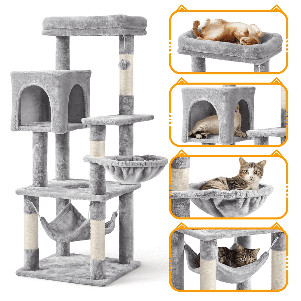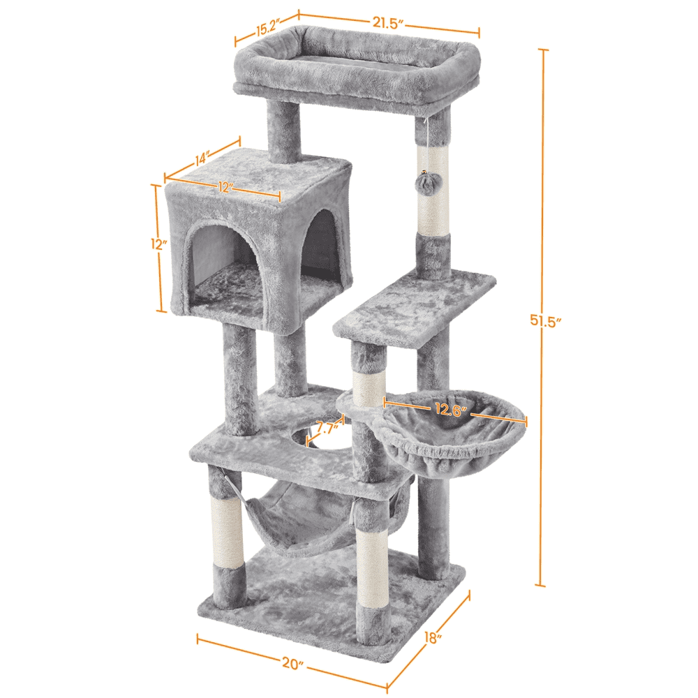 SMILE MART 51.5″ Cat Tree with Climbing Hole and Condo. Light Gray