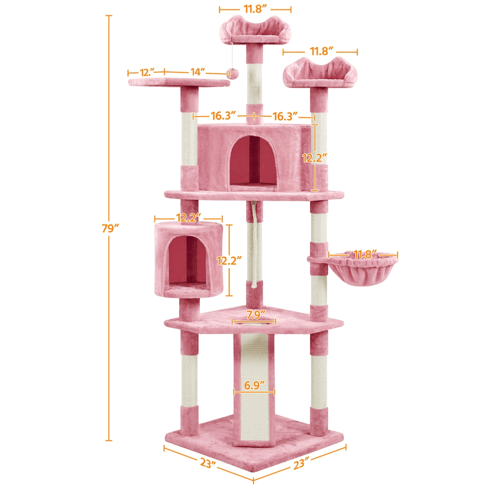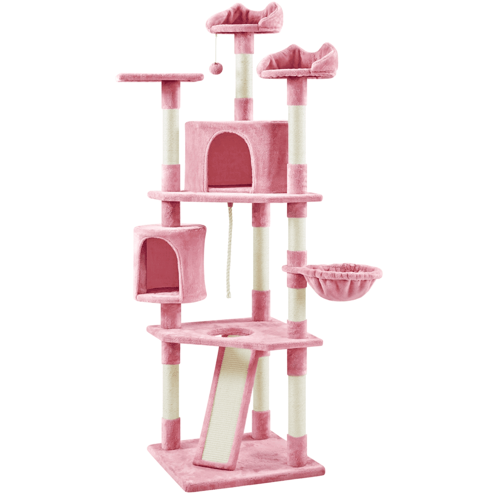 Easyfashion 79″ Multilevel Cat Tree Tower with Scratching Posts. Pink