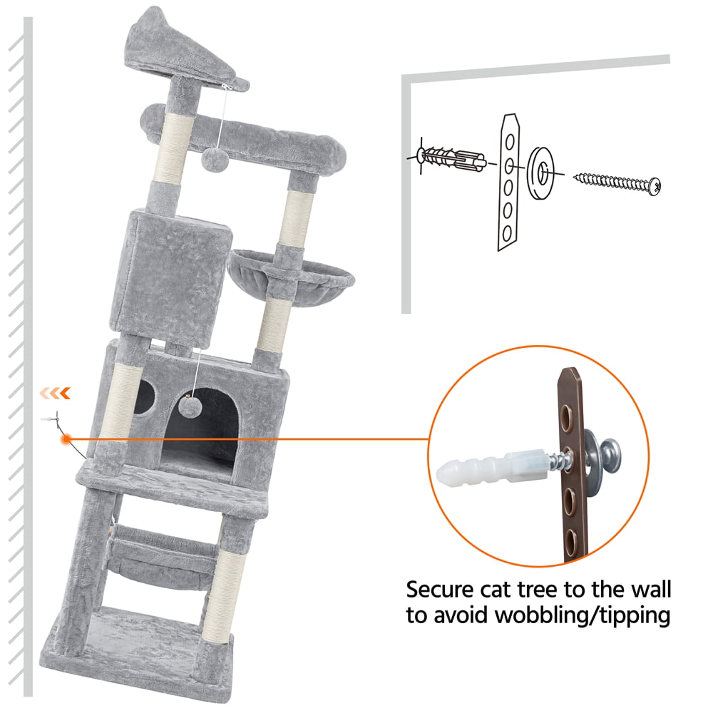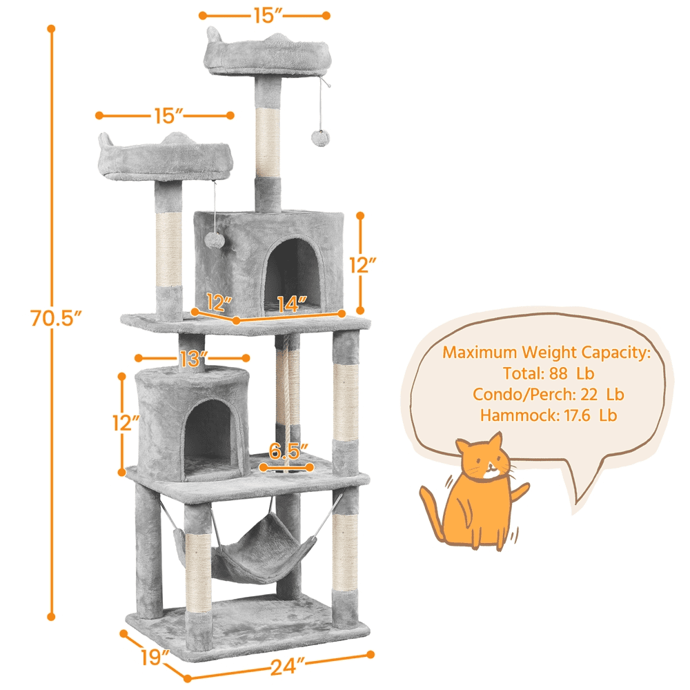 SmileMart 73″H Multi-level Cat Tree Tower with Condos and Perches. Light Gray