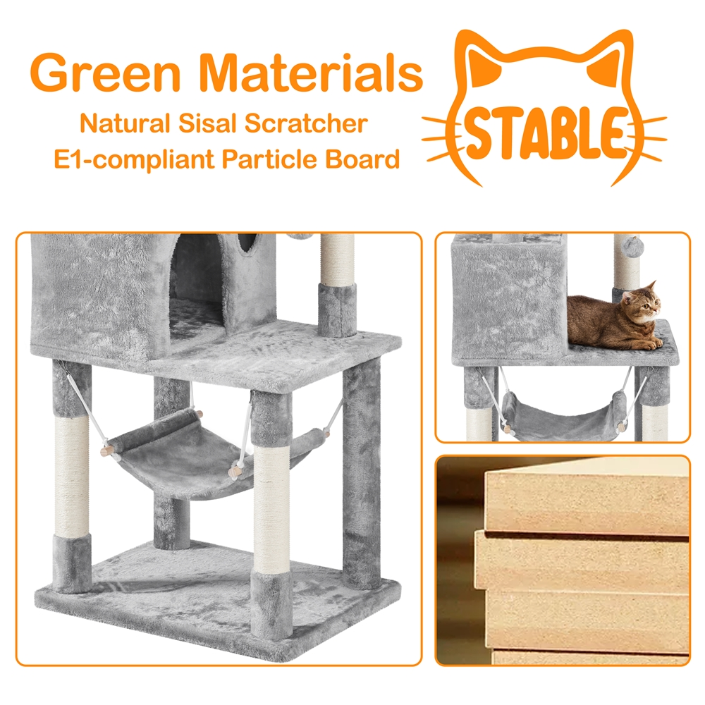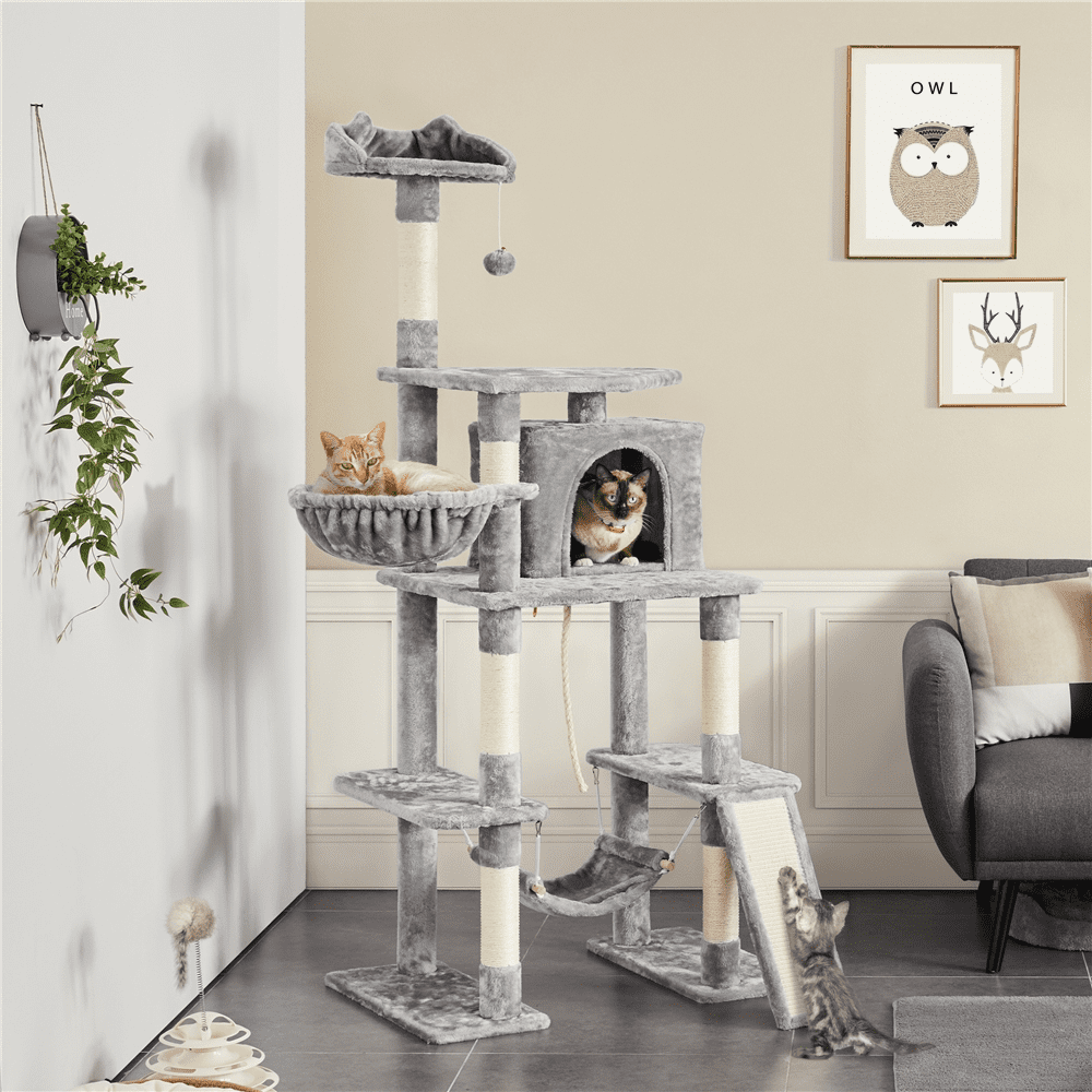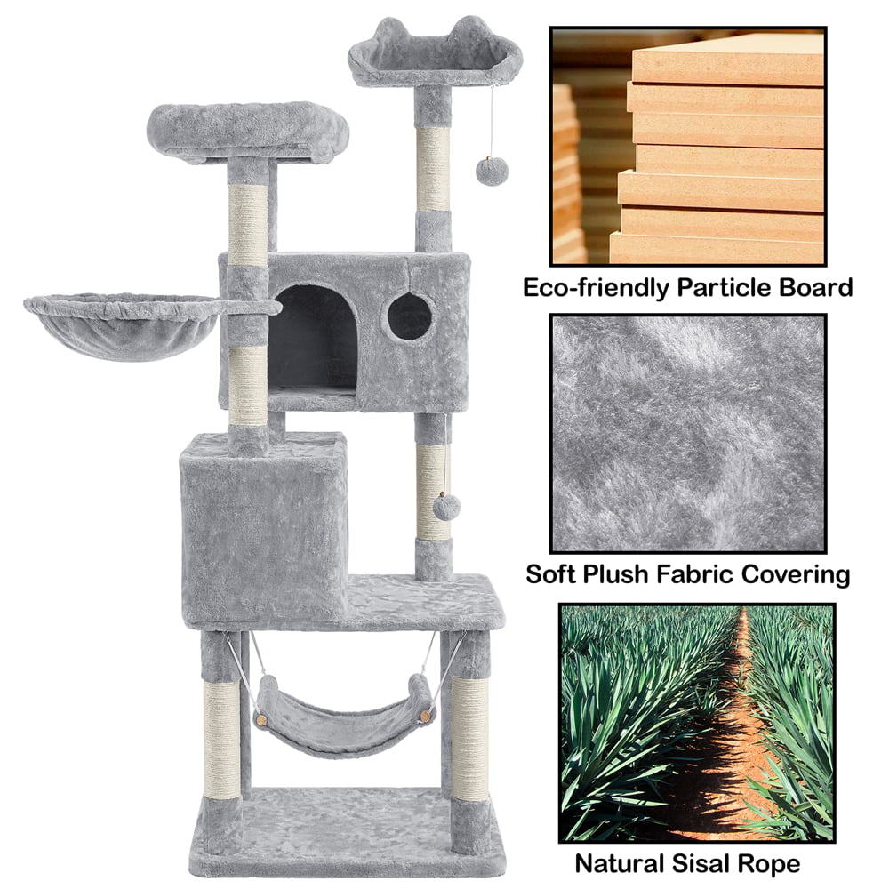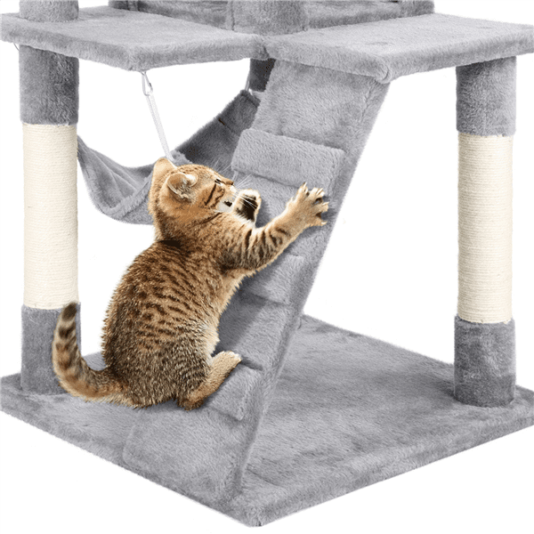 Easyfashion 51″ Multi-level Cat Tree with Condo and Scratching Post. Light Gray