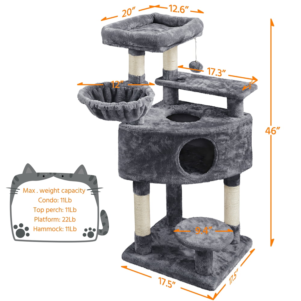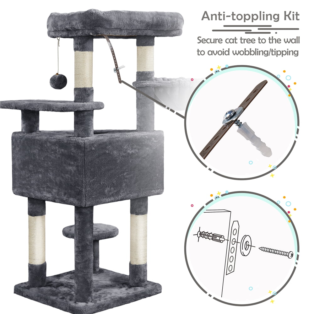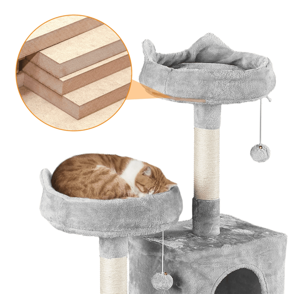 Easyfashion 51″ Multi-level Cat Tree with Condo and Scratching Post. Light Gray