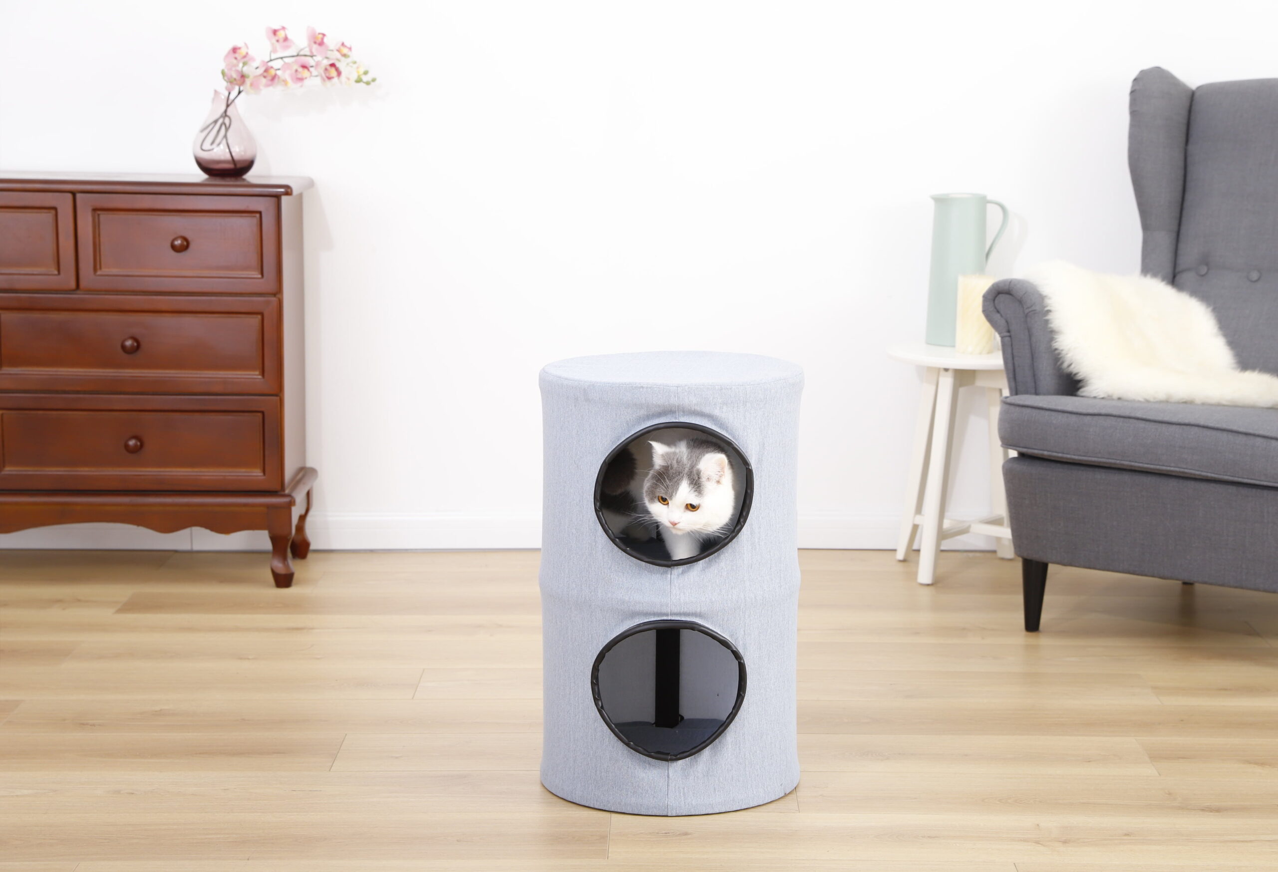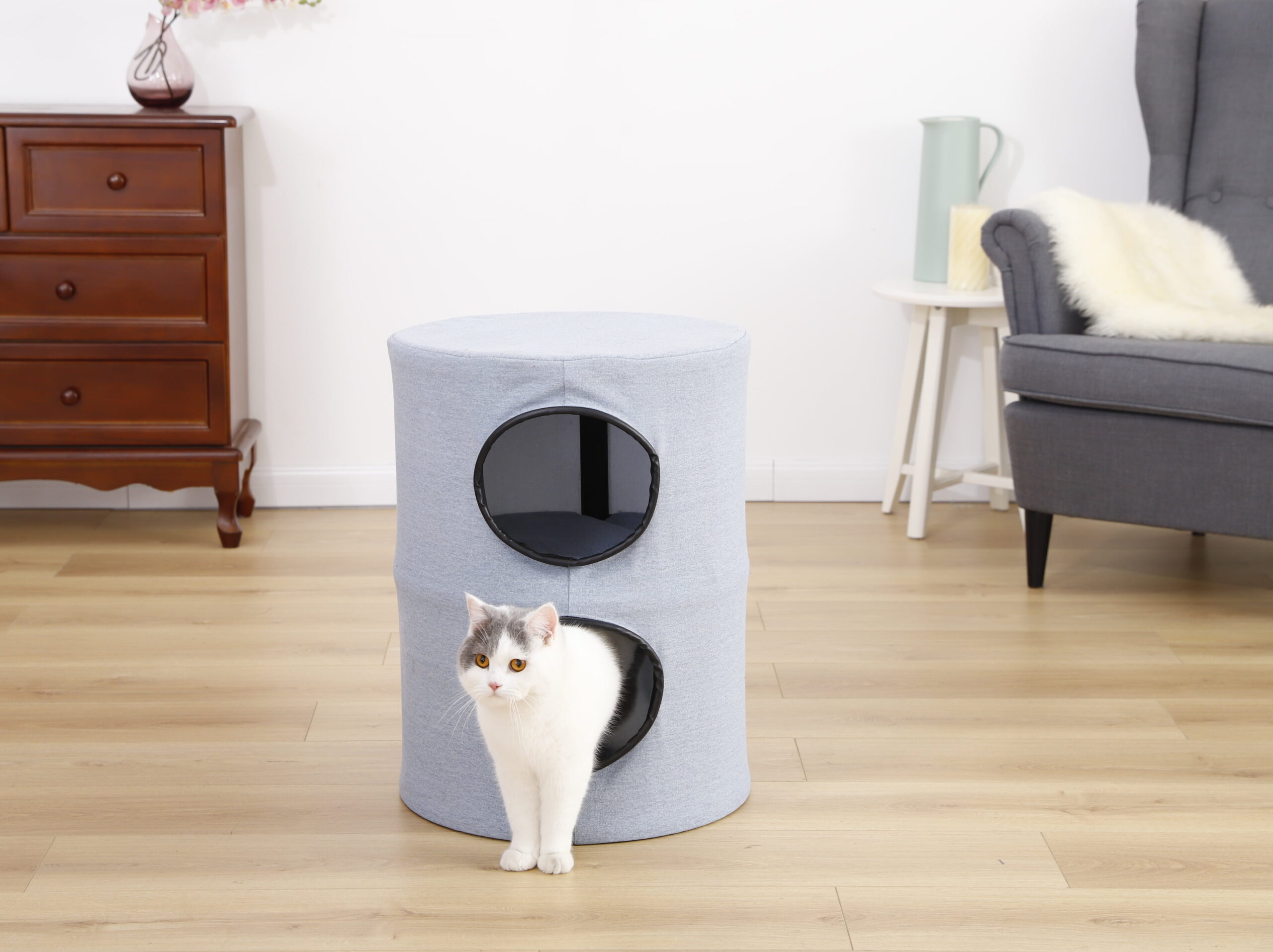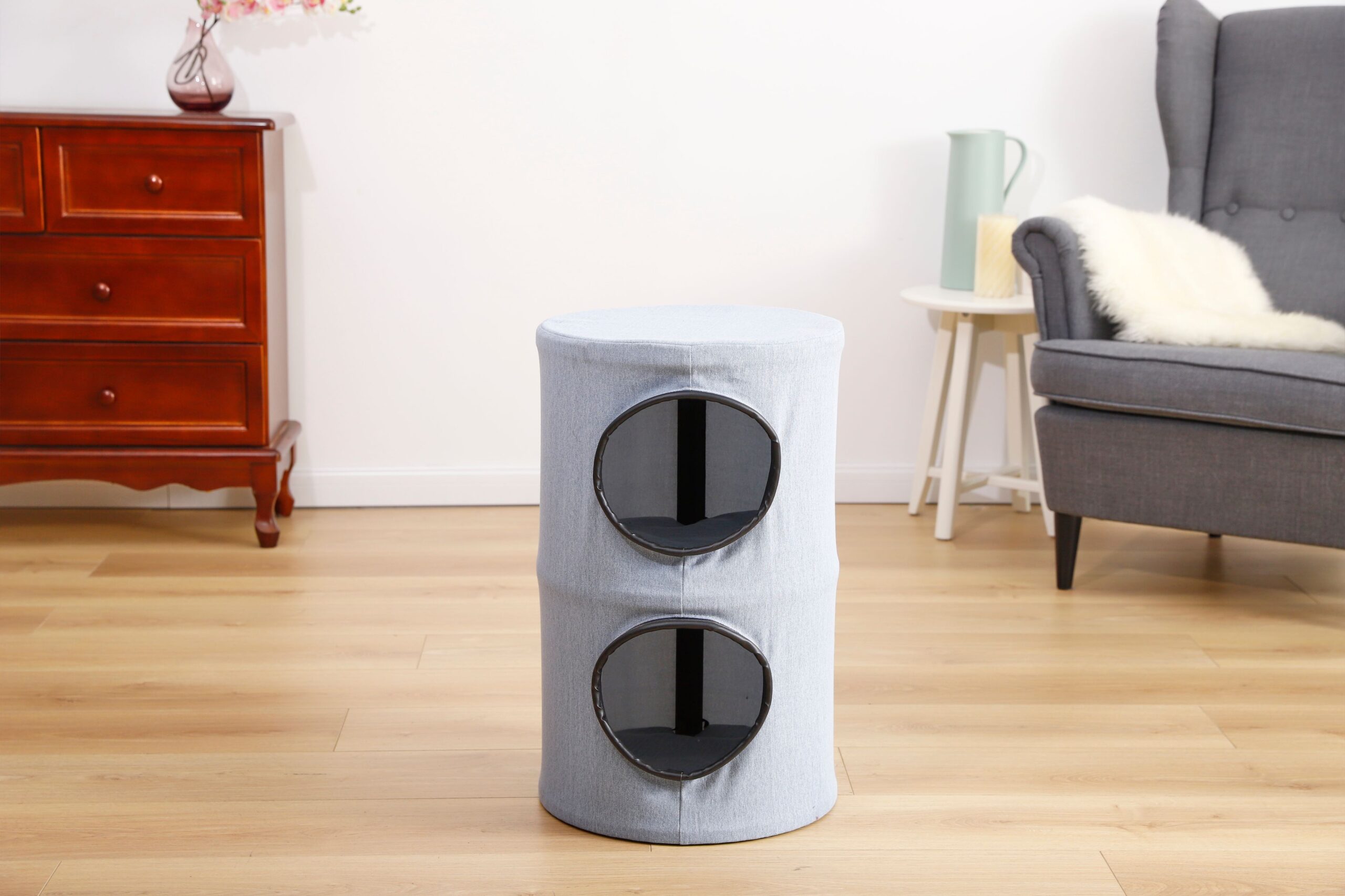 SMILE MART 70.5″H Multi Level Cat Tower Tree with 2 Condos & 2 Foam-Padded Perches for Medium/Large Cats. Light Gray