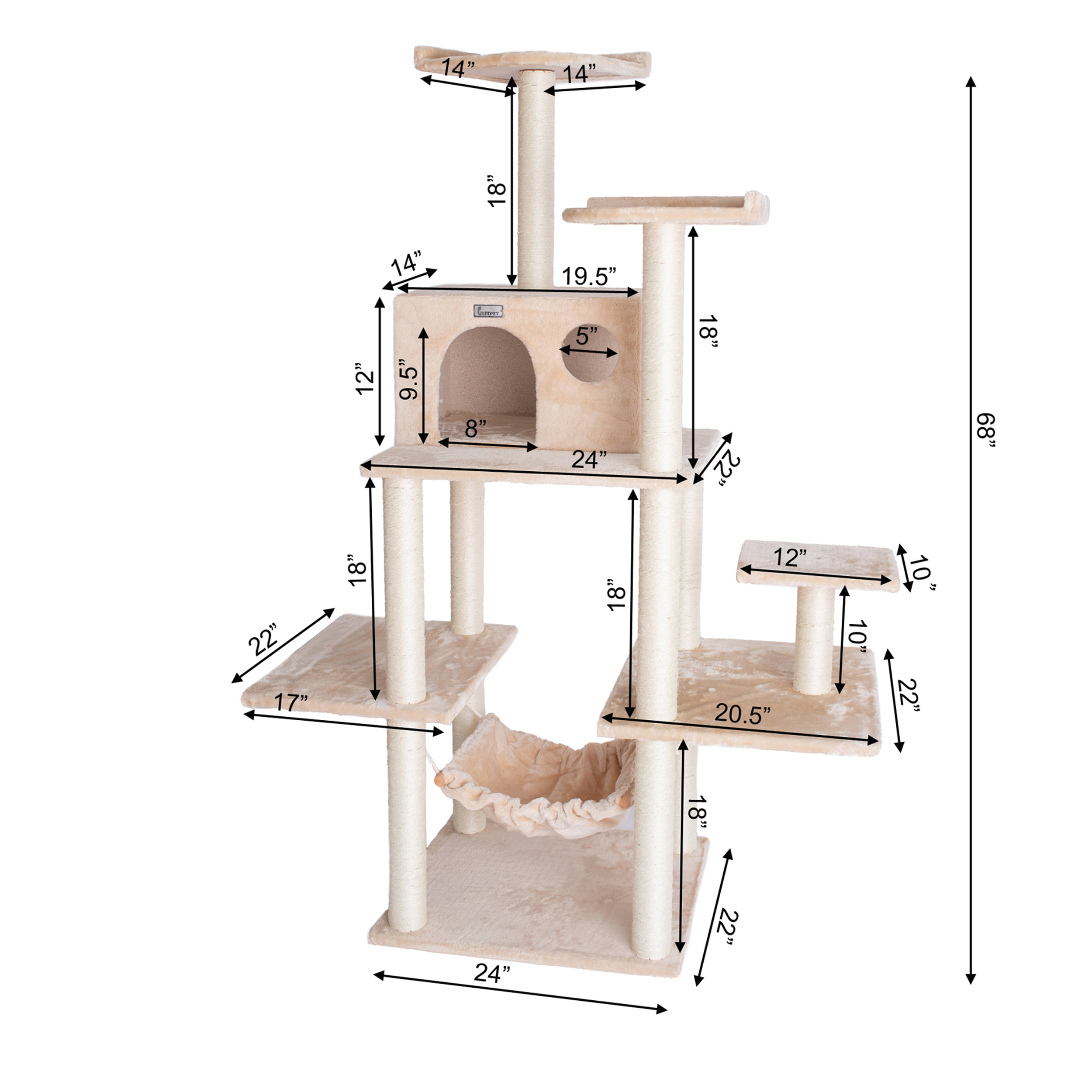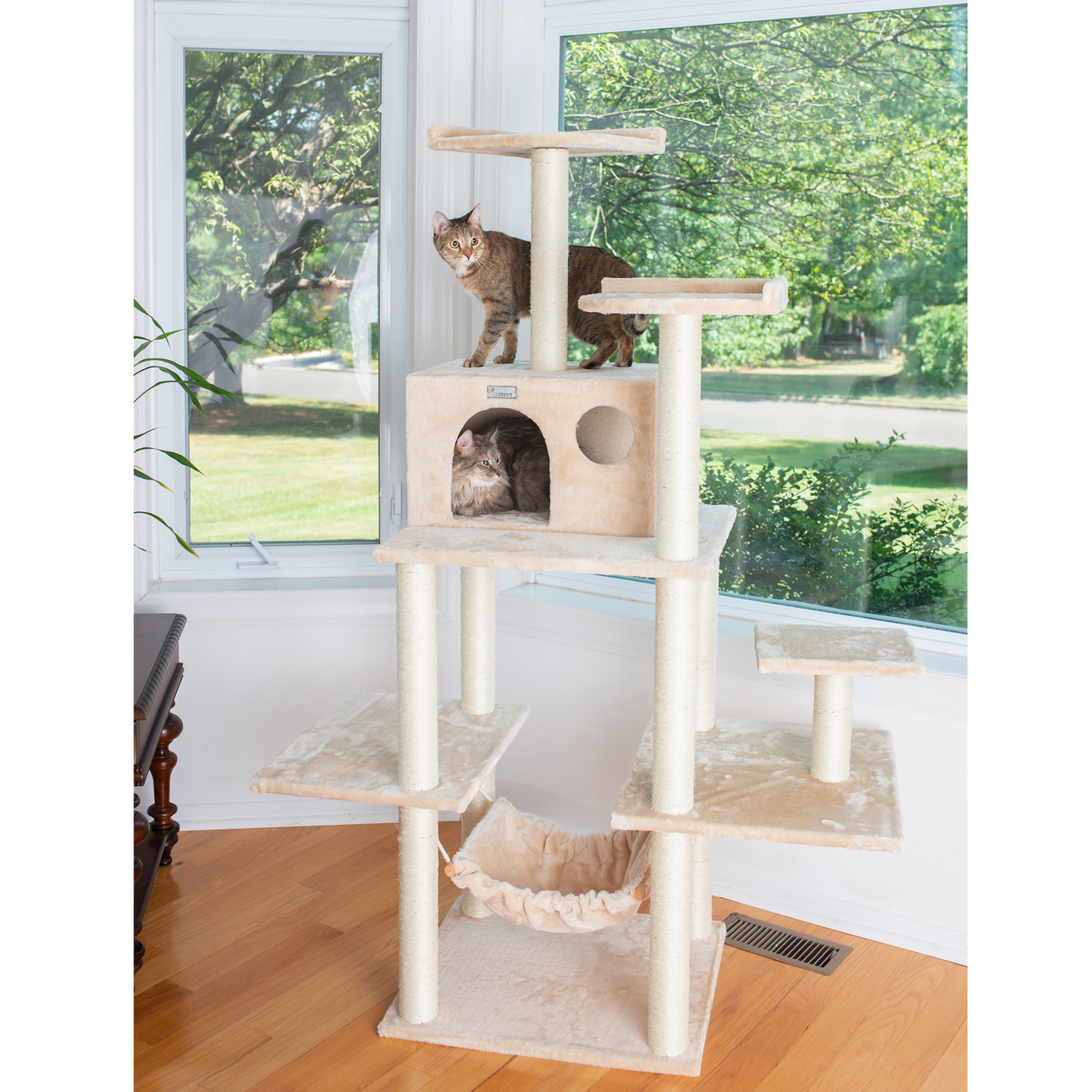 Armarkat 68-in real wood Cat Tree & Condo Scratching Post Tower. Beige