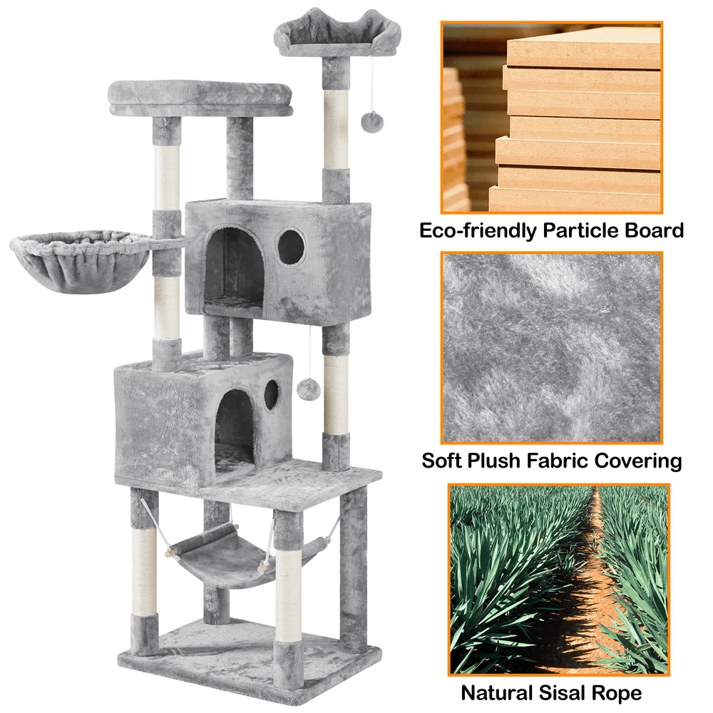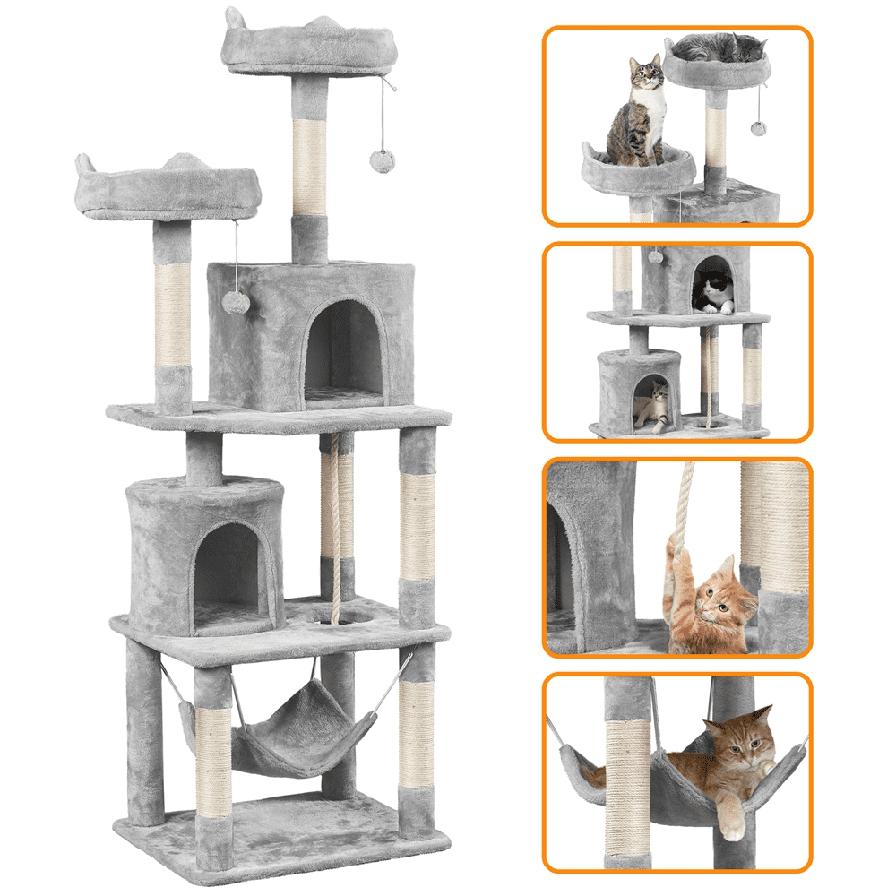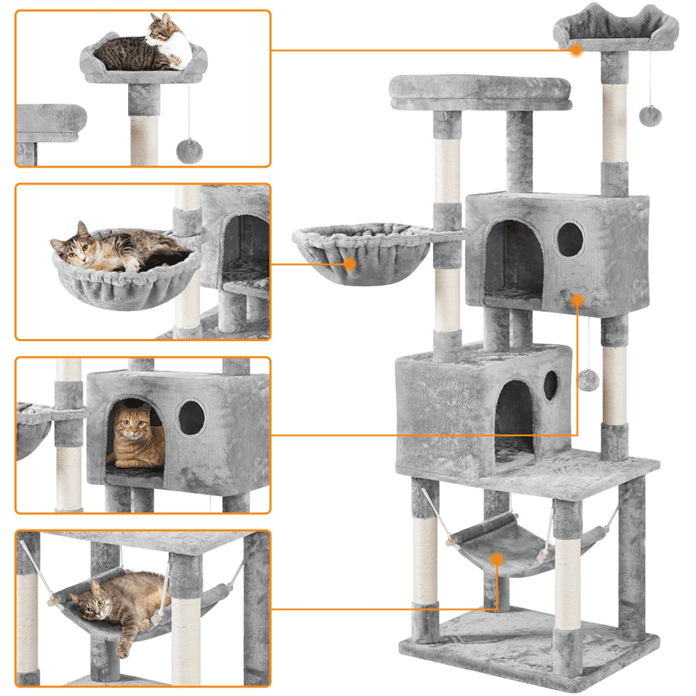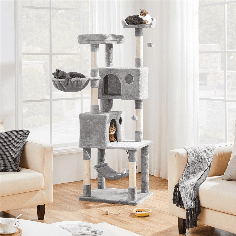 SmileMart 64.5″H Multi-level Cat Tree Tower with Condos and Perches. Light Gray