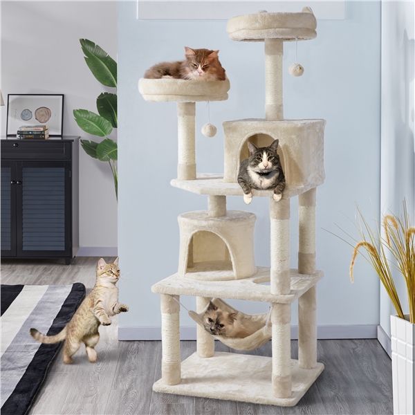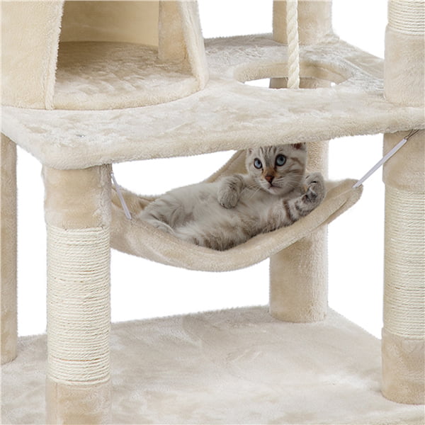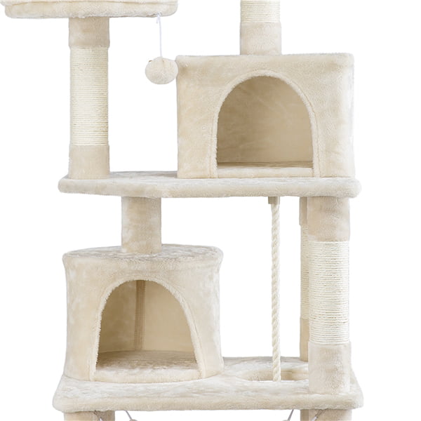 Easyfashion 62.2″ H Multi Level Cat Tree Condo with Scratching Post Beige