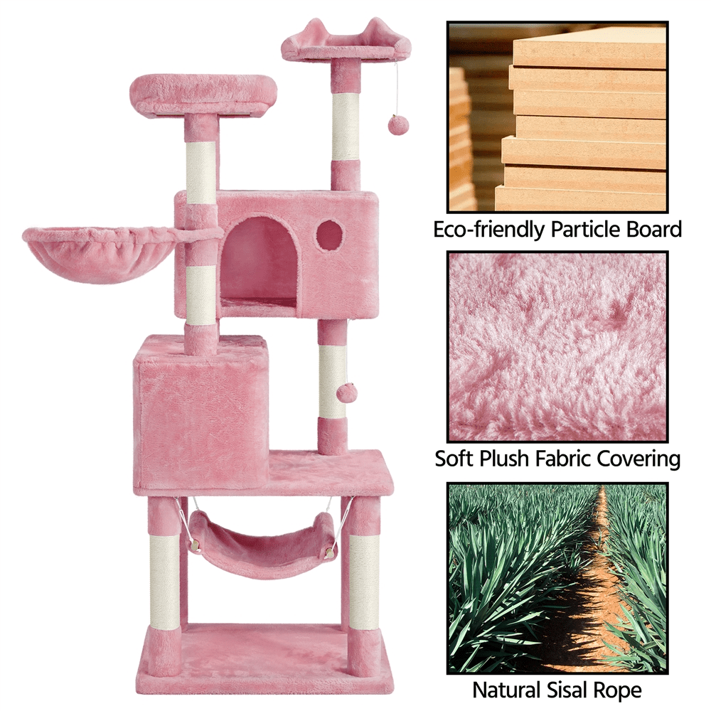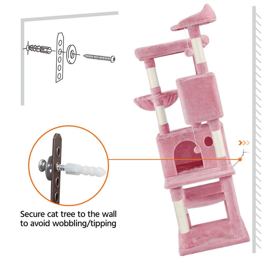 SmileMart 64.5″H Multi-level Cat Tree Tower with Condos and Perches. Pink