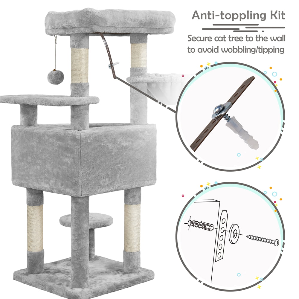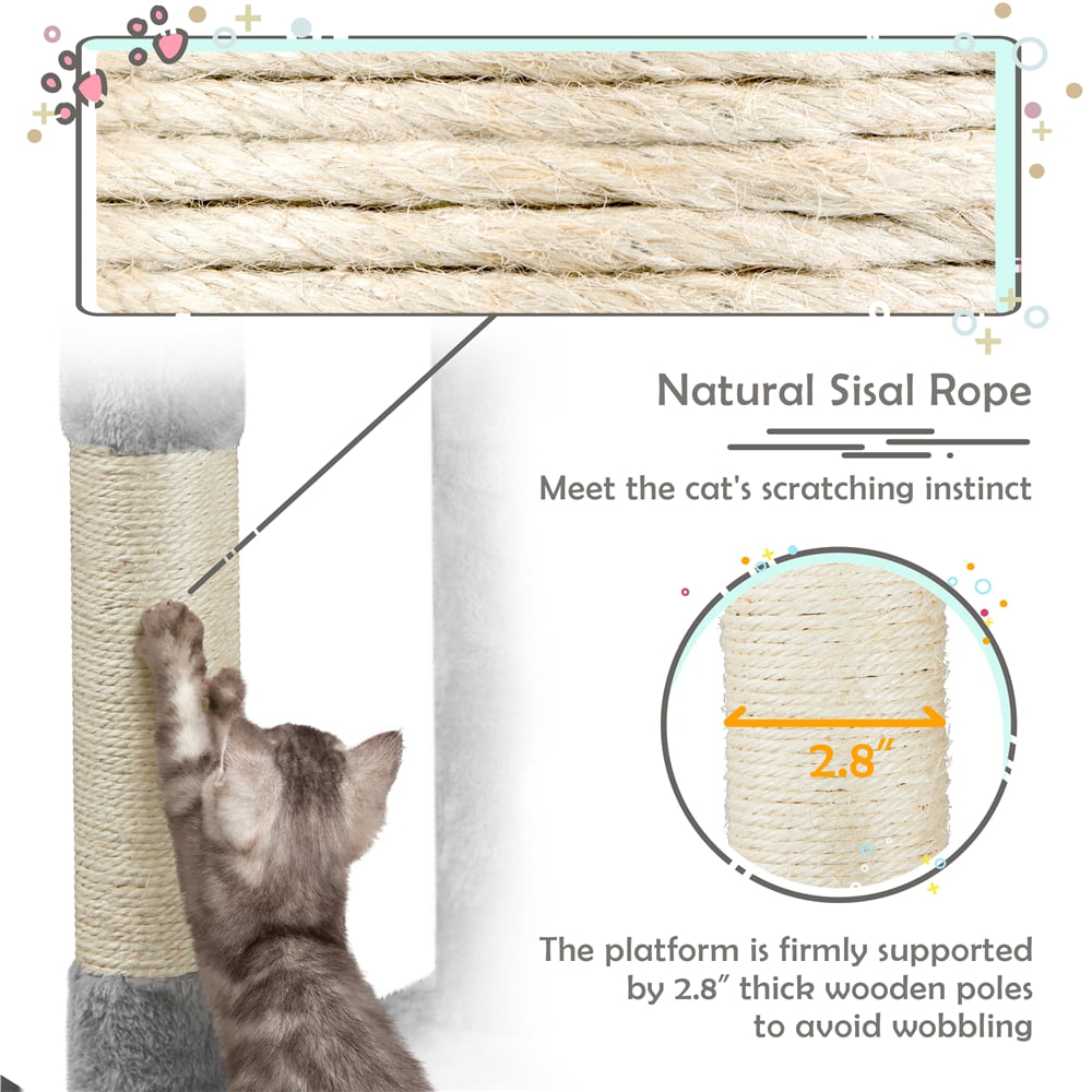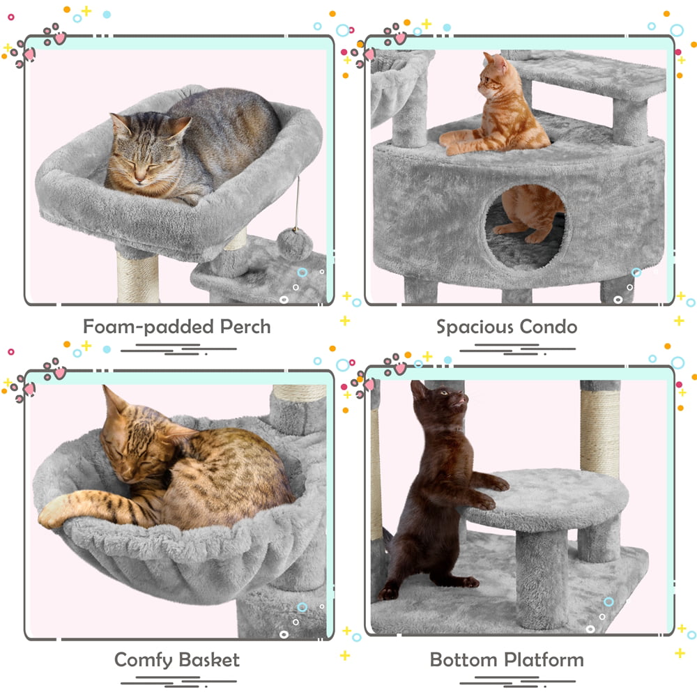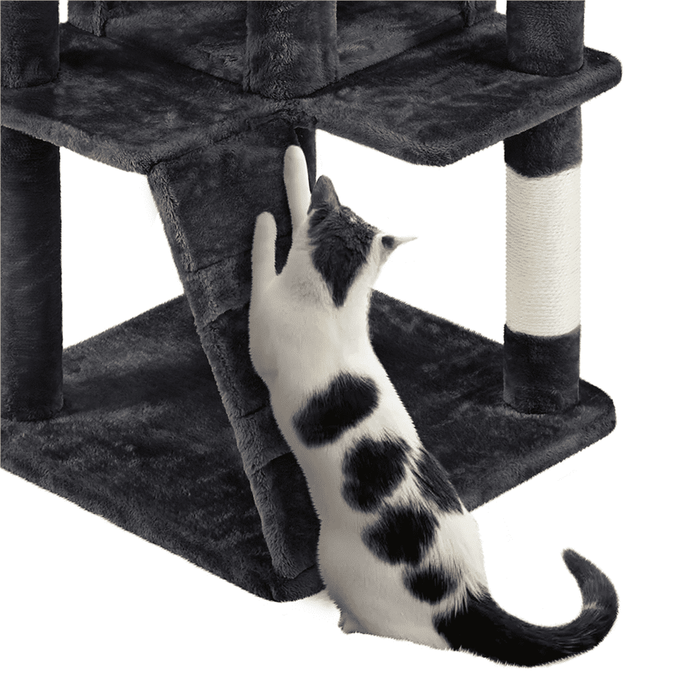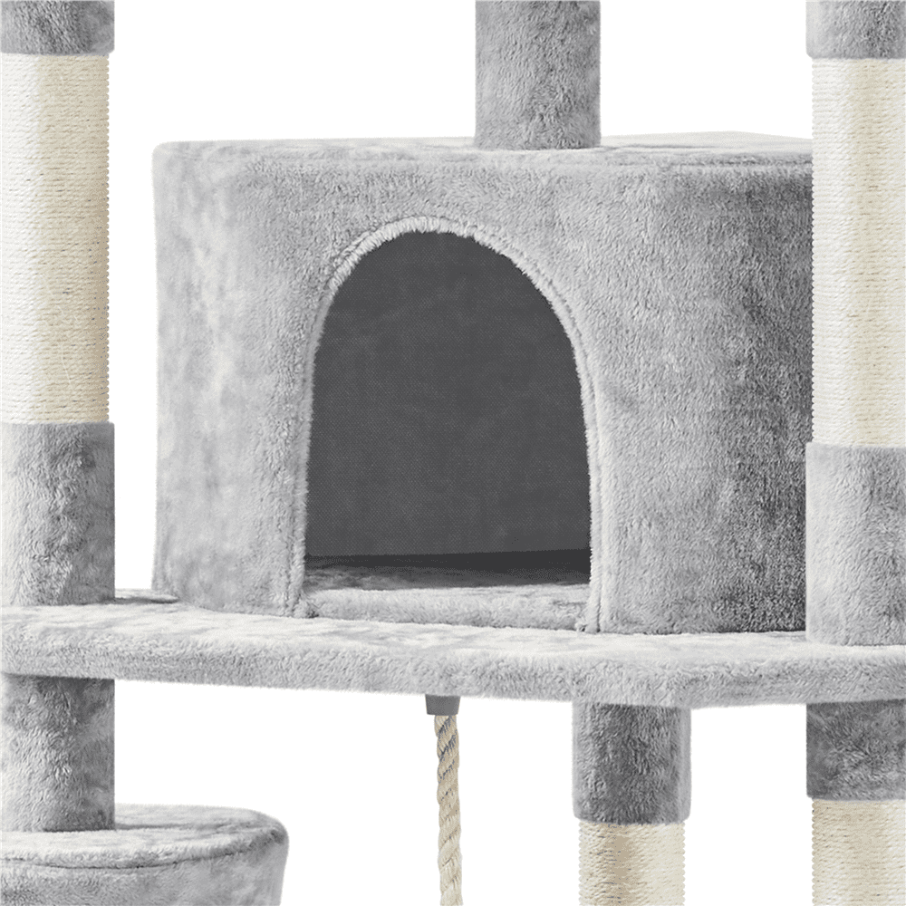 Easyfashion 79in Multilevel Cat Tree Condo with Scratching Posts & Ladders. Light Gray