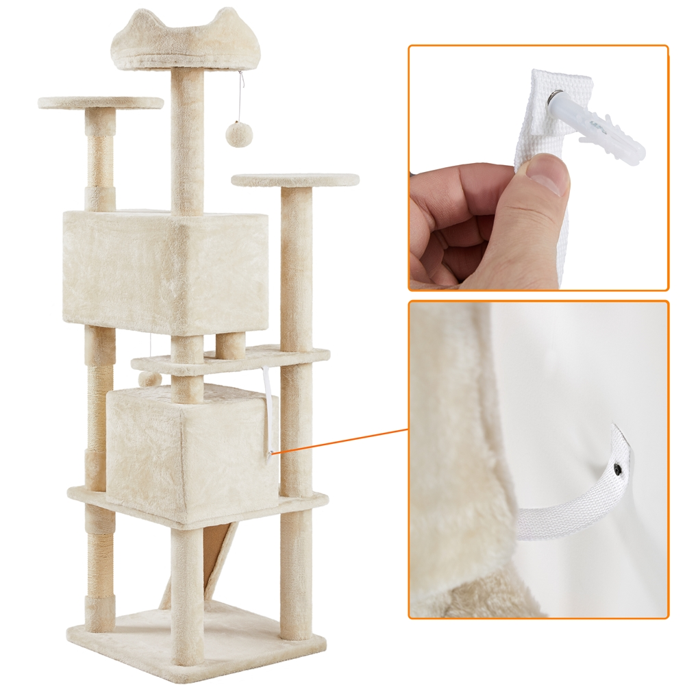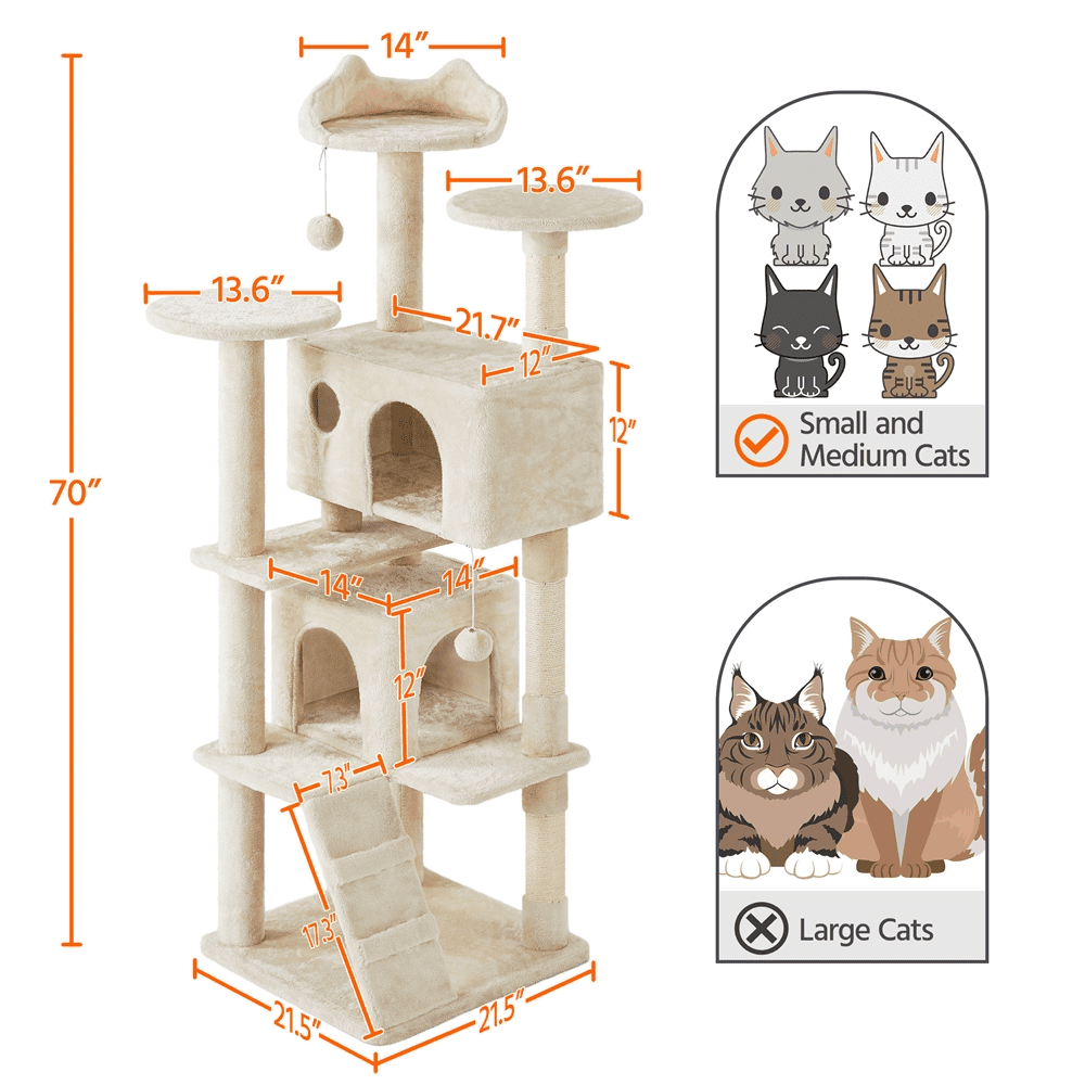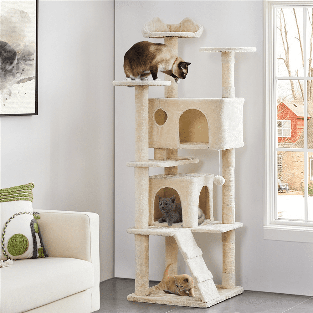 Easyfashion 70″ Cat Tree Condo with 3 Platform & 3 Scratching Posts. Beige