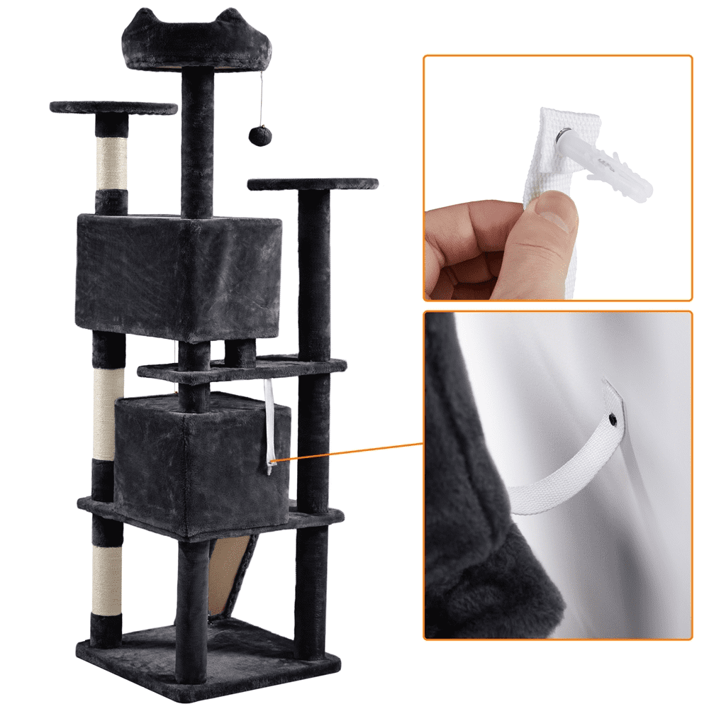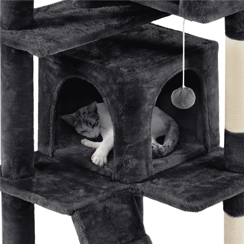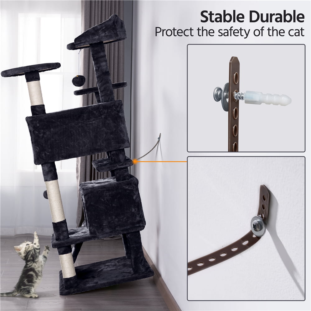 Easyfashion 70″ Cat Tree Condo with 3 Platform & 3 Scratching Posts. Black