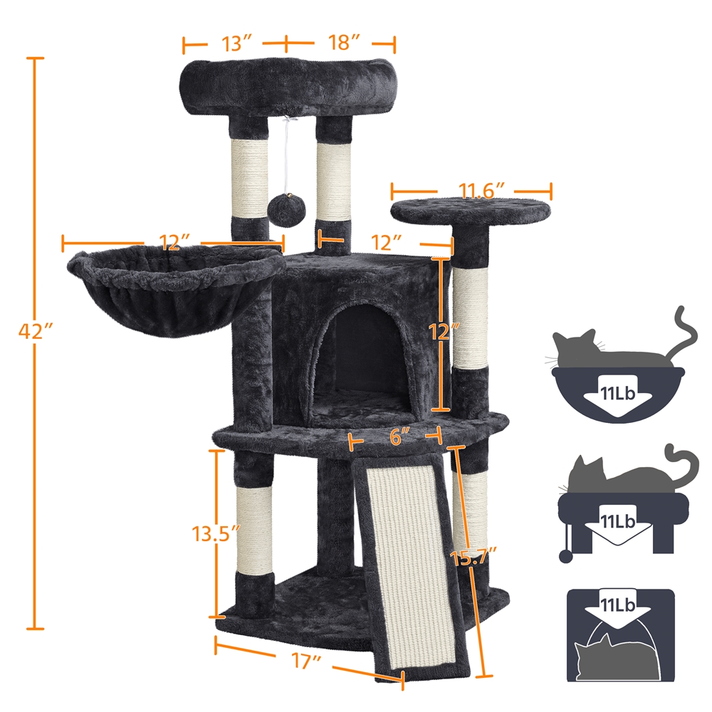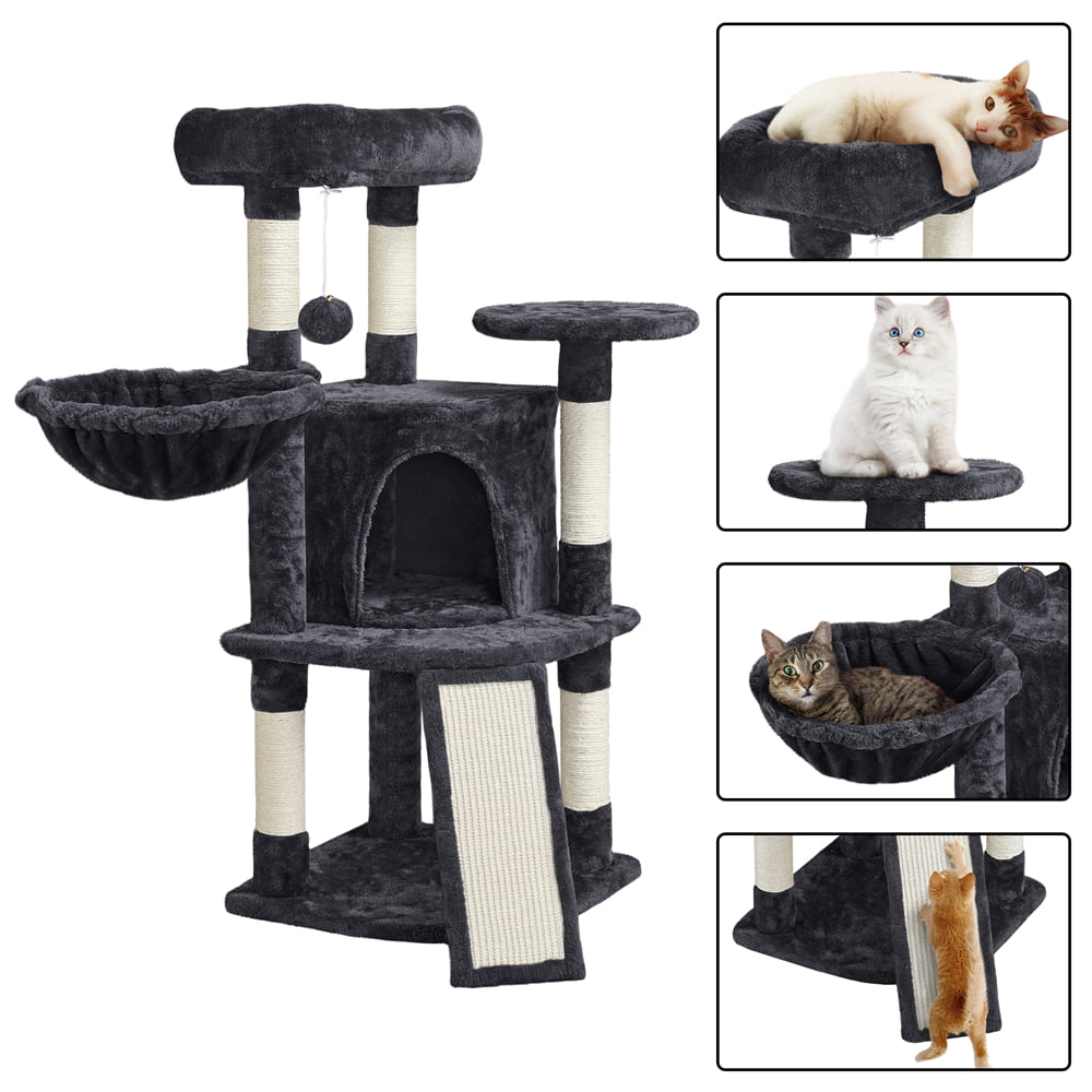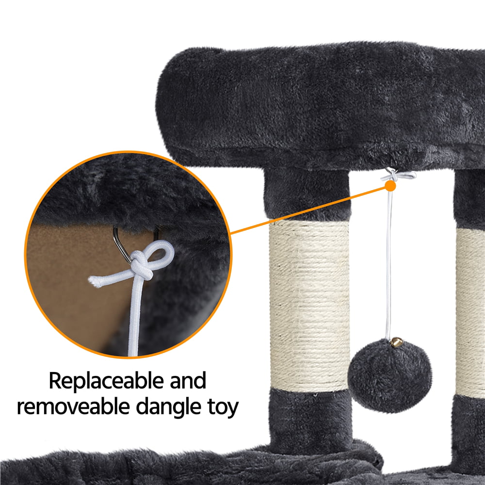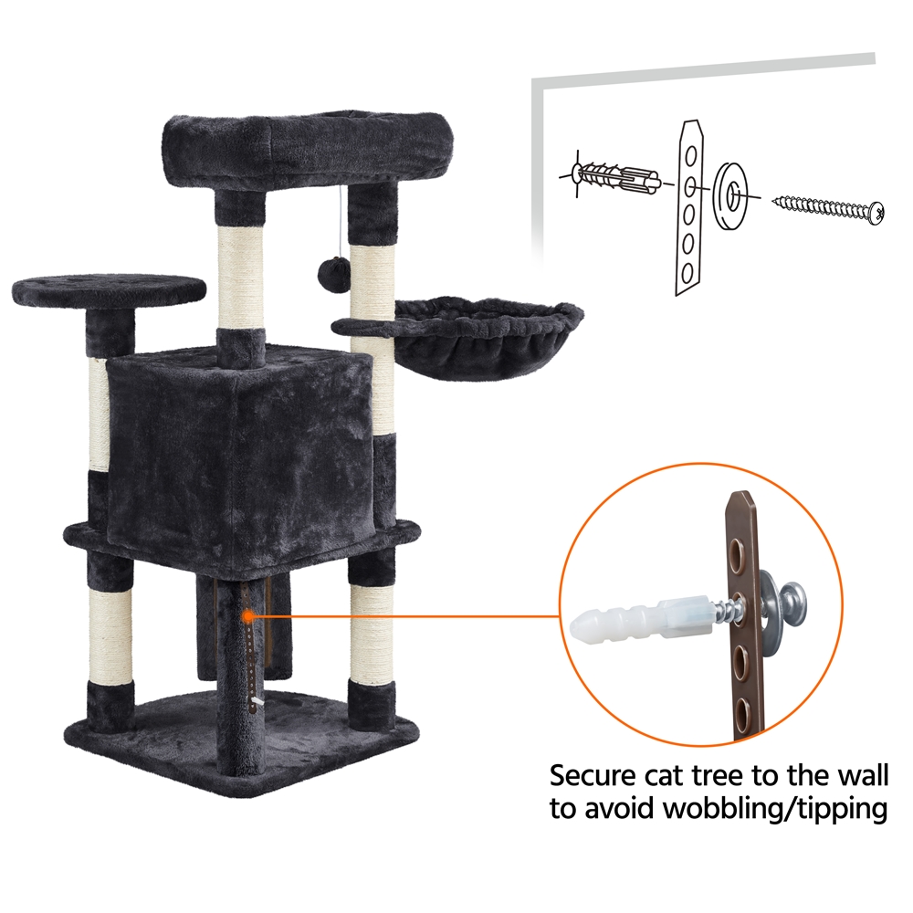 Easyfashion Professional Cat Tree Plush Tower with Basket for Small Kittens. Indoor. Black
