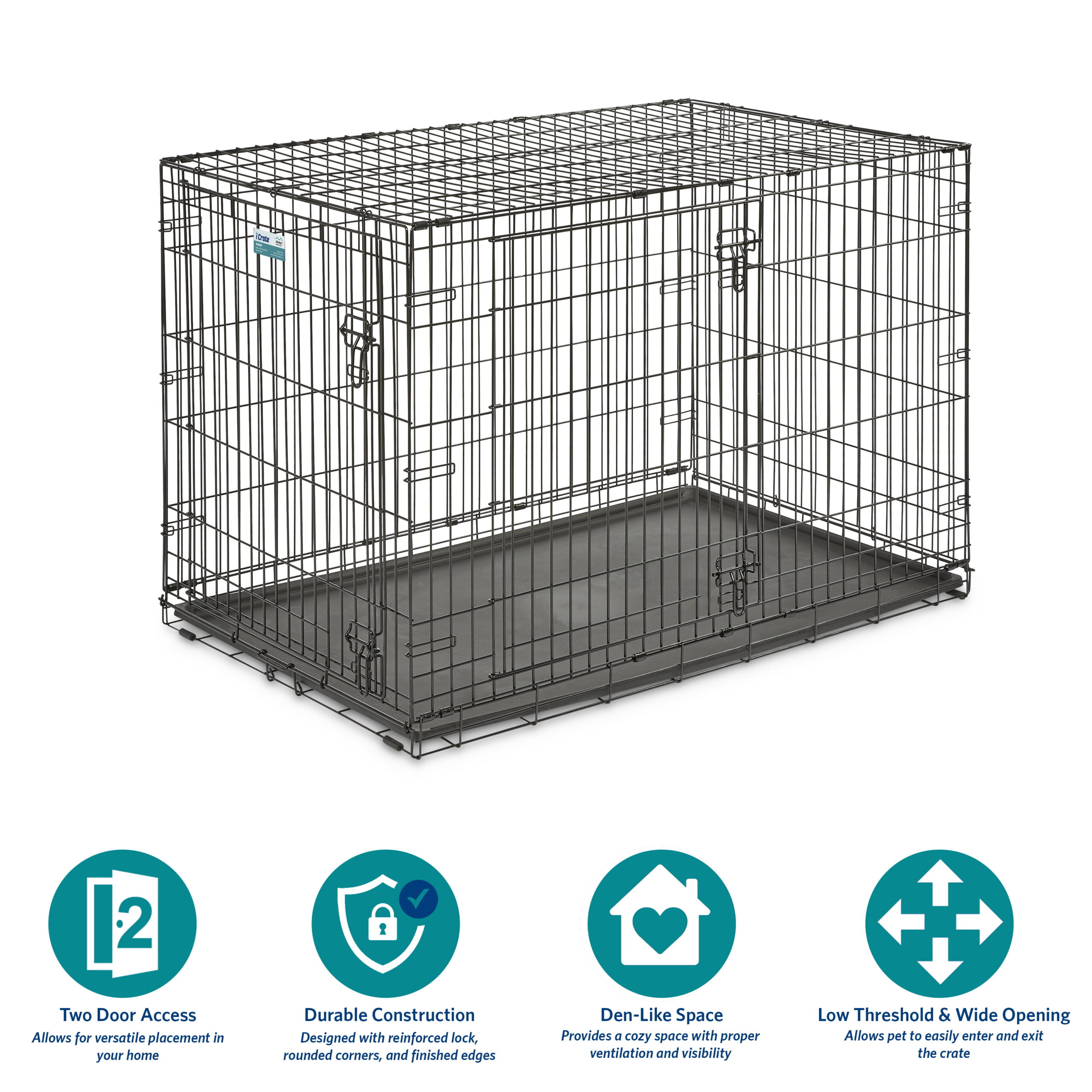 MidWest Homes For Pets Double Door iCrate Metal Dog Crate. 48″