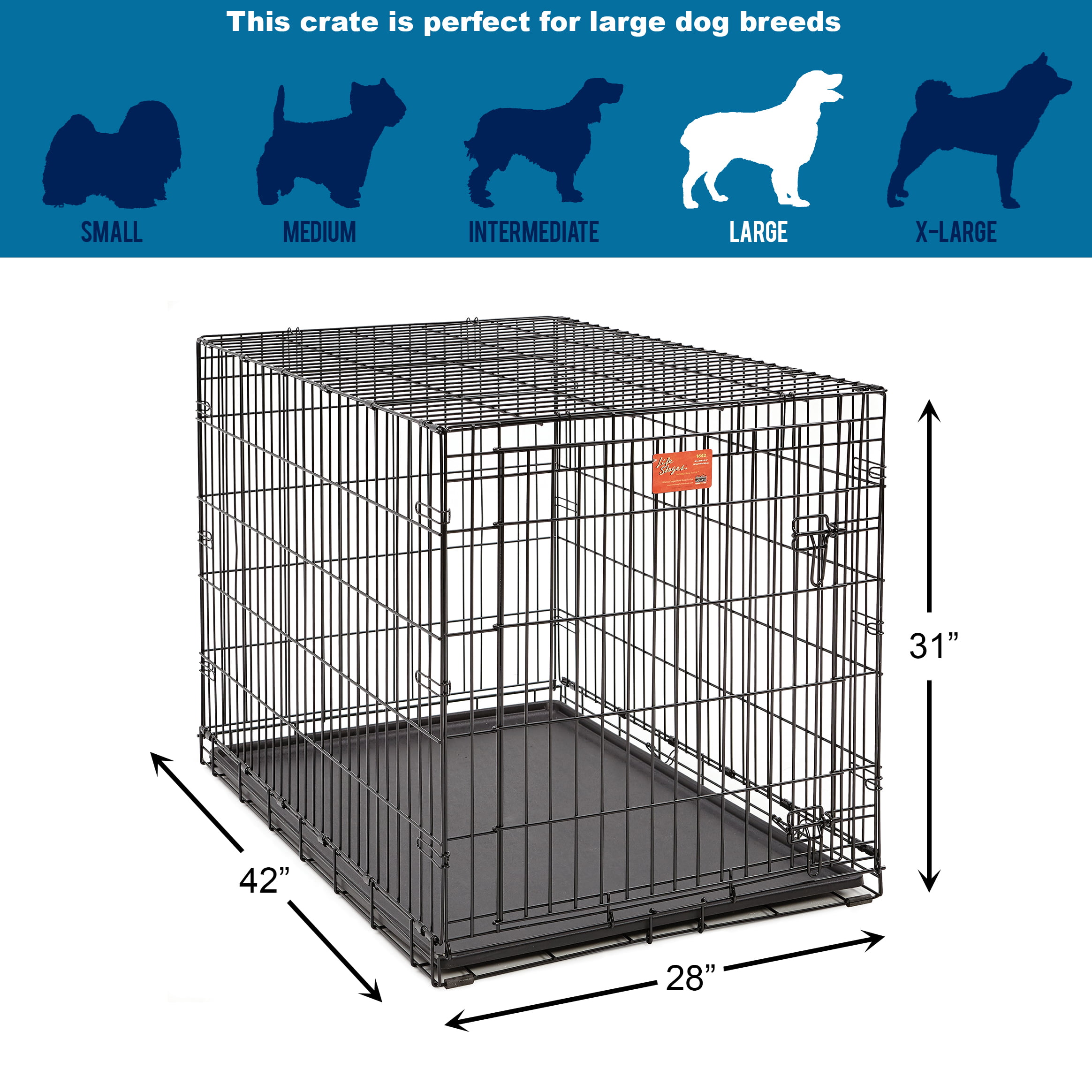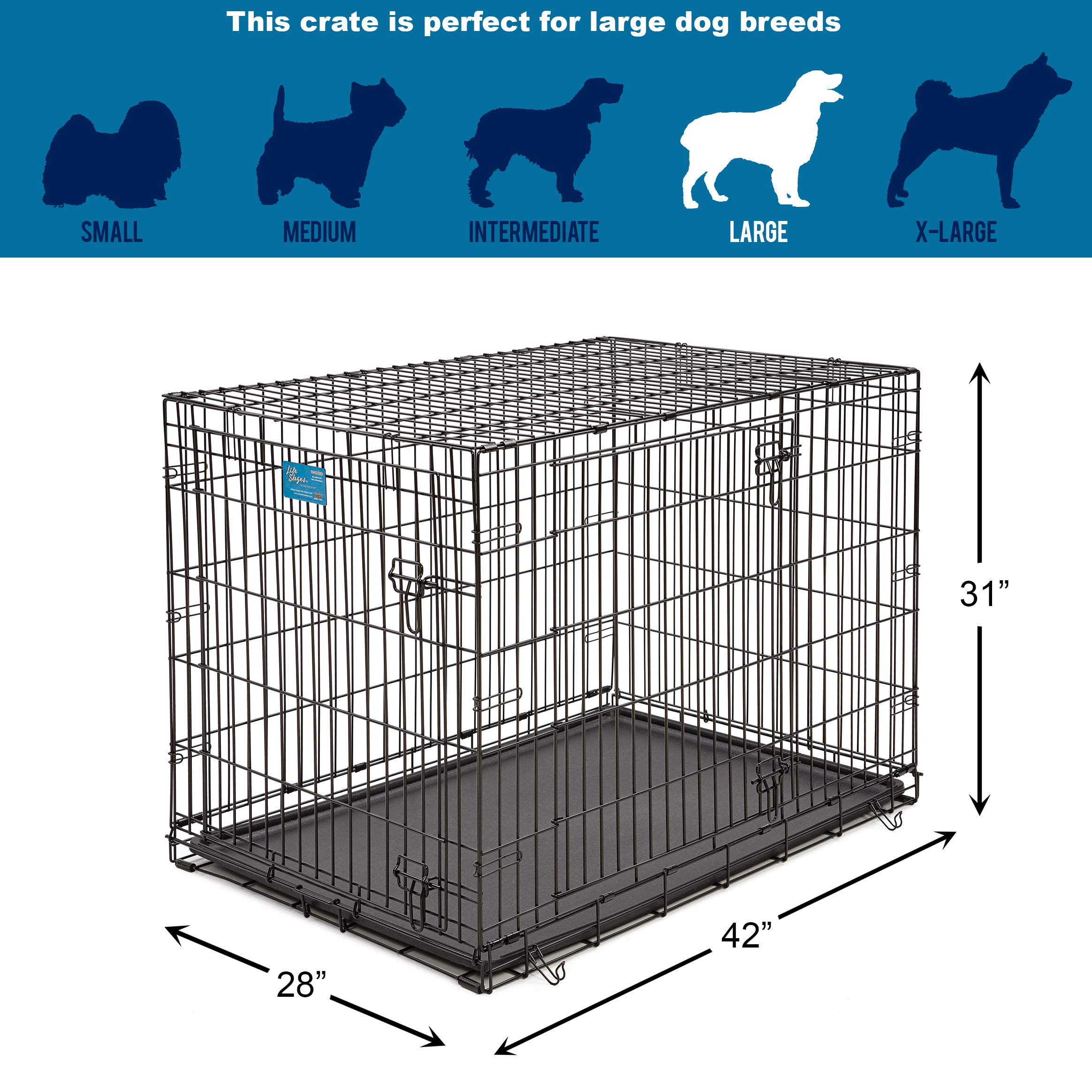MidWest Homes For Pets Life Stages Folding Double Door Metal Dog Crate. 48″