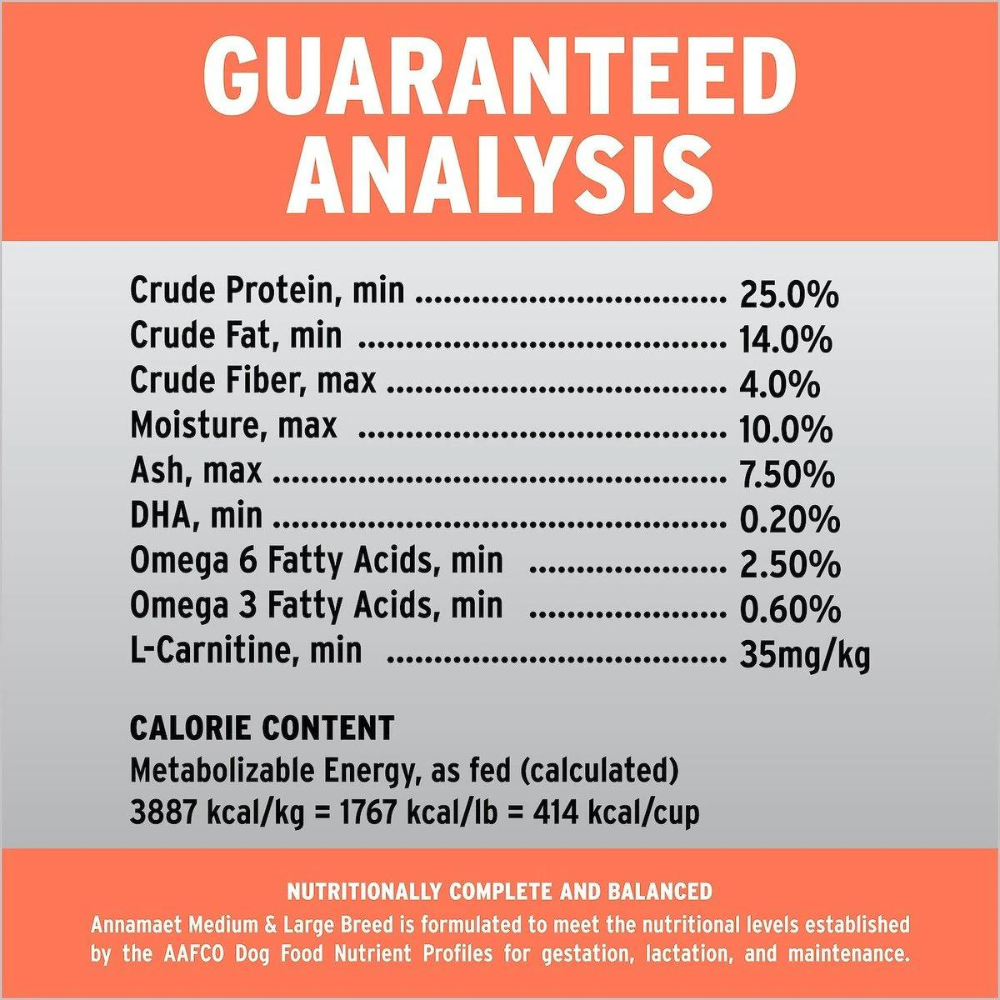 Annamaet 25% Medium & Large Breed Dry Dog Food. 12-lb bag