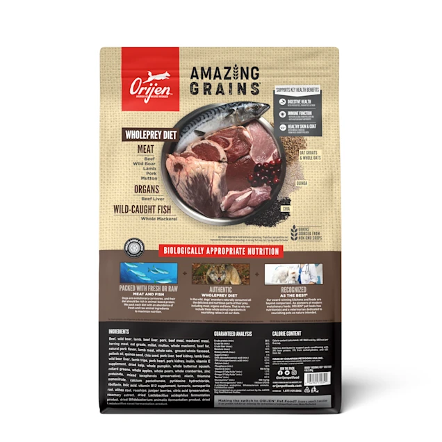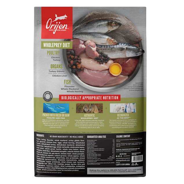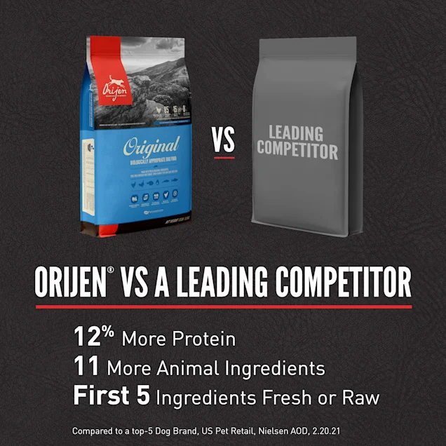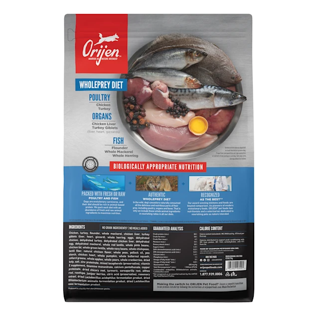 ORIJEN Original Grain Free High Protein Fresh & Raw Animal Ingredients Dry Dog Food. 4.5 lbs – 25 lbs