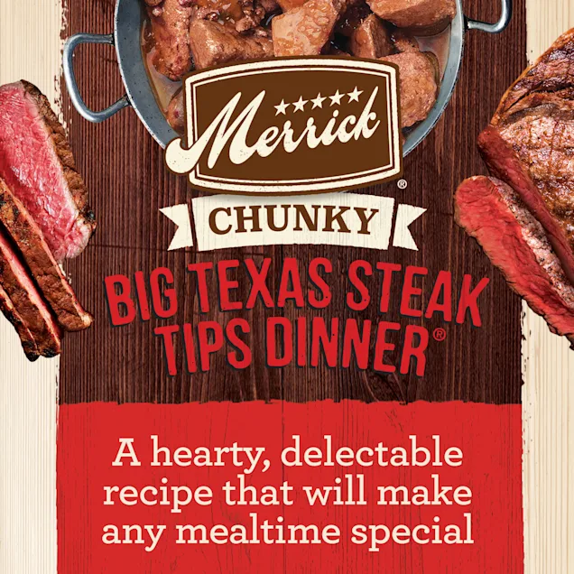 Merrick Grain Free Chunky Big Texas Steak Tips Dinner Canned Dog Food. 12.7 oz.. Case of 12