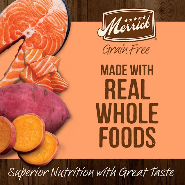 Merrick Grain Free Real Salmon & Sweet Potato Recipe Dry Dog Food. 10 lbs.